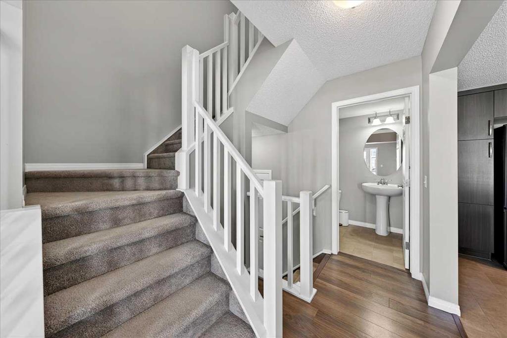 The main level offers a bright, open-concept layout with durable laminate flooring, a spacious living room filled with natural light, and a dining area that leads directly to your private balcony. The kitchen has granite countertops, a breakfast island with storage, tiled backsplash, stainless steel appliances, and rich dark chocolate cabinetry. A convenient 2 piece powder room and main floor laundry complete this level. Upstairs, the primary bedroom includes a walk in closet and private 3 piece ensuite. The second bedroom offers a built in office nook, ideal for working from home or homework time, along with access to the 4 piece main bath and additional linen storage. The lower level welcomes you with a front foyer and versatile flex space that has previously been used as a home hair studio, kids’ gaming area, home gym, office, or creative studio — the possibilities are endless. Outside, enjoy a charming front porch, private balcony, landscaped yard, and concrete driveway. The attached insulated garage is extended in length, providing extra room for your car or full sized truck PLUS an area for storage (freezer, bikes, or workbench space), all while allowing you to park comfortably without worrying about door dings. Located close to walking paths, parks, schools, playgrounds, and shopping...this home offers convenience, space, and freedom from condo fees all in one.