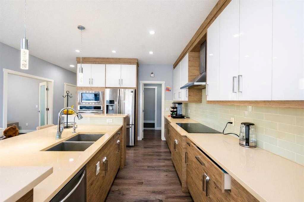 Welcome to this exceptional opportunity in Baysprings—a fully developed 2-storey walk-out home offering space, flexibility, and long-term value. This well-maintained property features approximately 2,517 sq ft above grade, with a total of 6 bedrooms and a fully finished walk-out basement, making it ideal for large families or multi-generational living. The main floor is designed for both comfort and function, featuring 9-foot ceilings, durable LVP and tile flooring, and a bright open-concept layout. The kitchen stands out with quartz countertops, a large custom island, stainless steel appliances, and a convenient walk-through pantry connecting to the mudroom. The family room includes custom built-ins and a fireplace, while a main-floor office/den and full bathroom provide added flexibility. Upstairs offers 4 generously sized bedrooms, a bonus room, and a laundry area. The primary suite includes a walk-in closet and a well-appointed 5-piece ensuite with a glass and tile shower. The fully developed walk-out basement includes 2 additional bedrooms, a full bathroom, separate living space, kitchen area, and private entrance—providing excellent potential for extended family use. Energy efficiency is a key highlight, with solar panels significantly reducing utility costs, including minimal electricity expenses during summer months. Outdoor features include a low-maintenance deck, covered patio, and a spacious backyard. The home is conveniently located near parks, playgrounds, and a nearby school, making it a practical choice for families. Additional features include central air conditioning, a double attached garage, and an oversized driveway. This is a rare opportunity to own a functional, upgraded home in one of Baysprings’ most desirable locations. Schedule your private showing today.