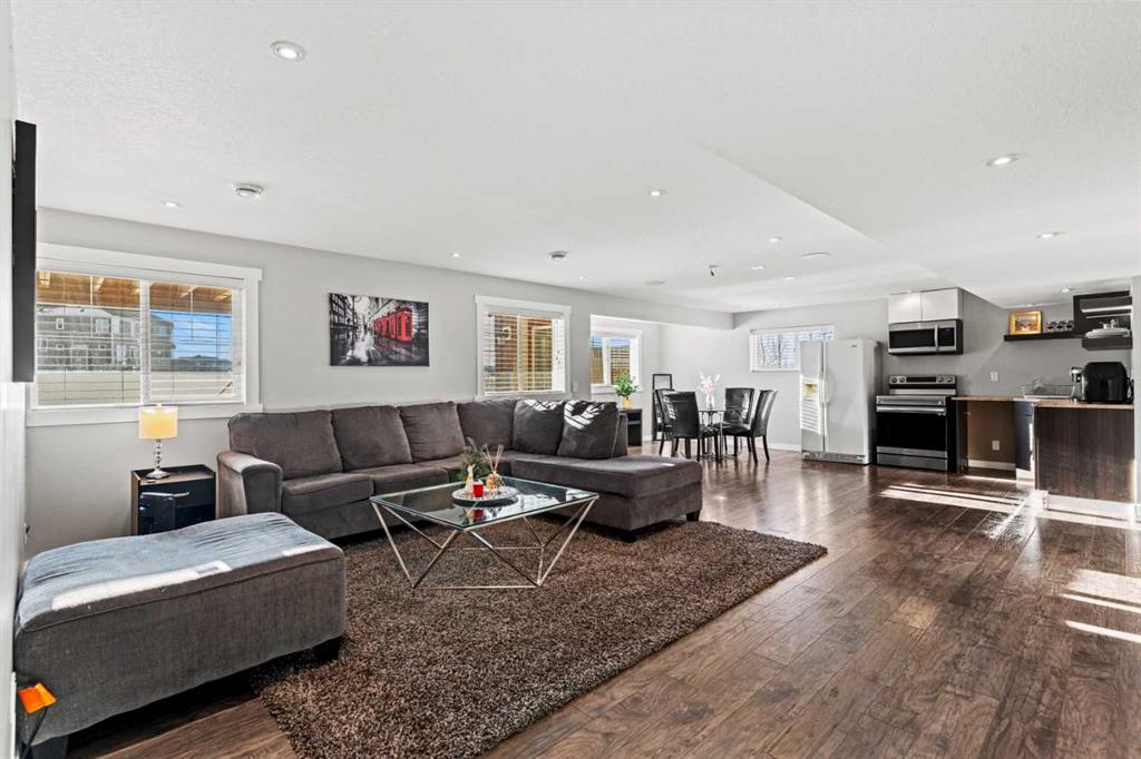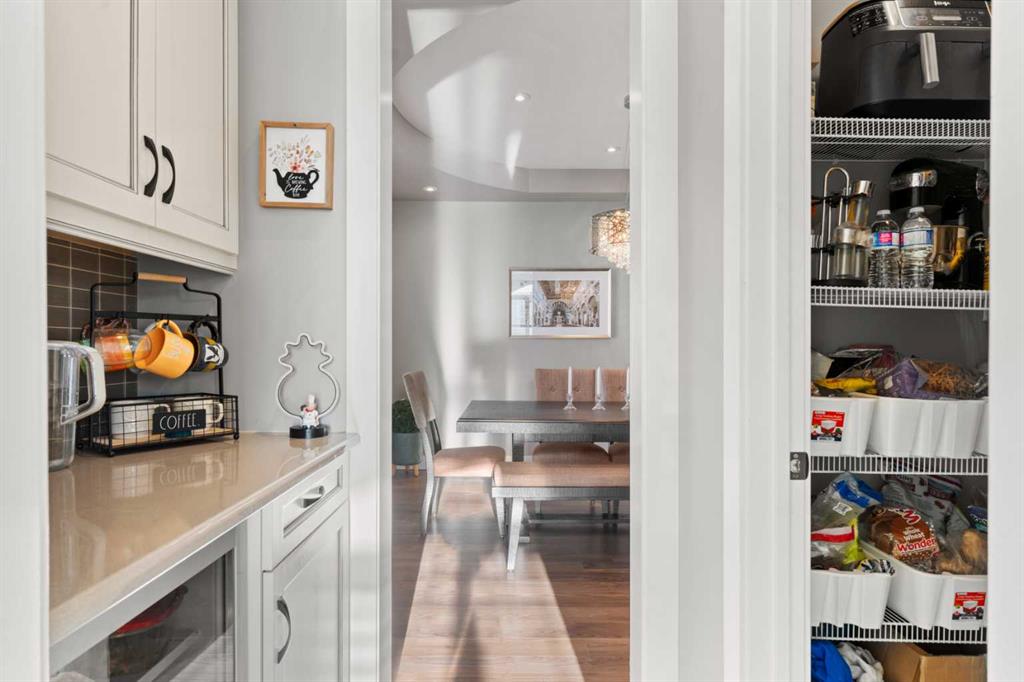 Open House Feb 1, 2–4 PM. Welcome to your dream home, perfectly situated on a massive pie-shaped lot backing onto green space and a scenic pond with breathtaking sunset views. This exceptional two-storey home with a walk-out basement offers over 3,800 sq. ft. of fully developed living space and is filled with high-end upgrades throughout. The main level showcases vaulted ceilings, expansive windows with Hunter Douglas shutters, engineered laminate flooring, knockdown ceilings, upgraded lighting, and elegant spindle-railed staircases. A private den provides the ideal home office, while the impressive formal dining room easily accommodates large gatherings and is highlighted by a striking chandelier. The open-concept kitchen is a chef’s dream, featuring a massive quartz island, built-in stainless steel appliances, pendant lighting, a coffee bar, spacious pantry, and a casual dining area. The inviting living room is anchored by a floor-to-ceiling stone gas fireplace, creating a warm and stylish focal point. Step outside to the oversized deck and enjoy peaceful views of the pond and green space, perfect for relaxing evenings and entertaining. Upstairs, you’ll find a generous bonus room, three spacious bedrooms, and two full bathrooms. The expansive primary retreat includes a walk-in closet and a luxurious ensuite with double vanities, a fully tiled soaker tub, and a glass-enclosed shower. The fully developed walk-out basement is ideal for both entertaining and everyday living, featuring a large recreation area with wet bar, perfect for movie nights, a built-in pet wash station, space for a home gym, an additional bedroom, and a full bathroom. Walk out to the backyard and enjoy cozy nights by the fire while overlooking the tranquil green space and pond. Located close to parks, walking paths, a skate park, and pickleball courts, this home offers the perfect blend of luxury, lifestyle, and location. Book your private showing today—this rare opportunity won’t last long!