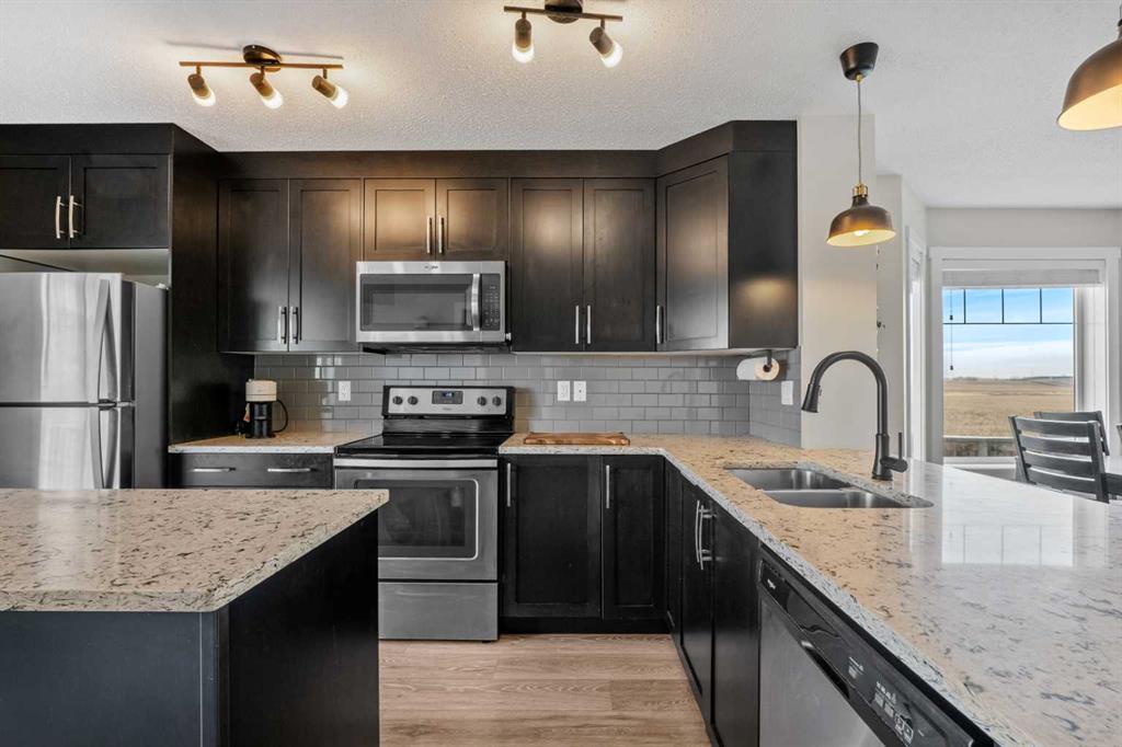 Welcome to a truly rare end-unit in Ravenswood. A property that stands out the moment you arrive and only gets better the more you take it in. Perfectly positioned beside open farmland with NO NEIGHBOURS BESIDE on one side OR BEHIND, this home offers a level of privacy and peace that is almost impossible to find in a townhome complex. From the moment you step inside, you’re greeted by an open, airy layout filled with natural light and a sense of calm that instantly feels like home. The SOUTH-FACING front yard welcomes in beautiful natural light throughout the day, while the expansive prairie views create a stunning and ever-changing backdrop from your main living areas. Imagine slow mornings with coffee as the sun rises over the fields… and evenings where the sky puts on a show you’ll never get tired of. And on those warm summer days? You’ll stay perfectly comfortable with central AIR CONDITIONING, giving you the best of both worlds—bright living without the heat. Beyond the beauty, this home was built with longevity and affordable, efficient living in mind. Featuring durable JAMES HARDIE plank siding, along with an EN furnace and windows, it offers peace of mind and lower long-term costs. The kitchen is designed for both everyday living and entertaining, featuring GRANITE countertops, STAINLESS STEEL appliances, modern cabinetry, and a functional ISLAND that brings everyone together. The spacious dining area flows seamlessly into the living space—perfect for hosting or simply enjoying your own quiet retreat. Upstairs, you’ll find two generously sized primary bedrooms, each complete with their own 4-piece ensuite, offering flexibility for guests, roommates, or a growing family. And then there’s the FULLY DEVELOPED BASEMENT, professionally completed with permits, adding even more living space with a third bedroom, a beautiful 3-piece bathroom with glass walk-in shower, and a cozy rec space perfect for movie nights, guests, or a private retreat. Step outside to your FULLY FENCED BACKYARD, ideal for your four-legged family members or little ones to play safely, all while enjoying the rare benefit of no rear neighbours. As an added bonus, residents of the complex enjoy access to a private ON-SITE PET WASH—making cleanup after walks and outdoor adventures easy and convenient. Located just minutes from Kingsview Market, you’ll have easy access to shops, dining, services, and everyday essentials—making this home as convenient as it is peaceful. If you’ve been waiting for something that feels different from everything else on the market… this is it.