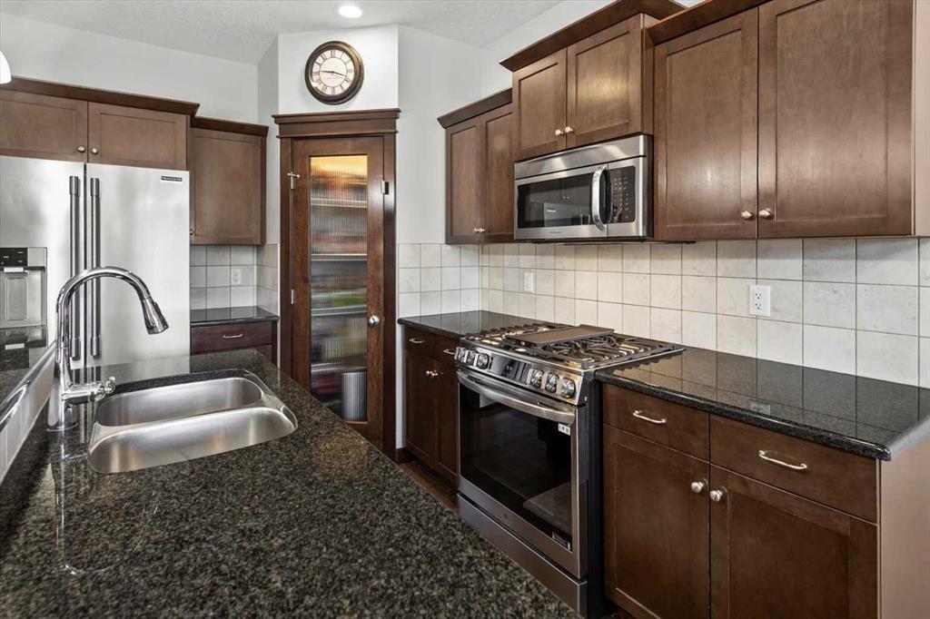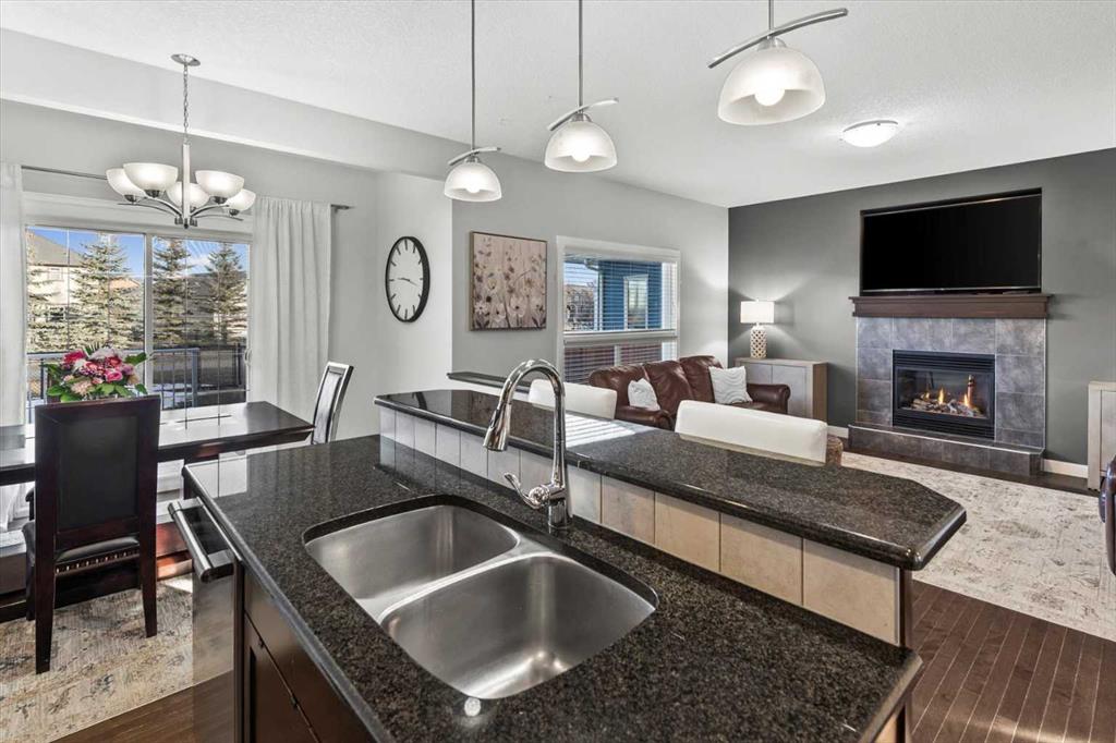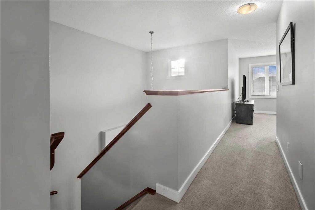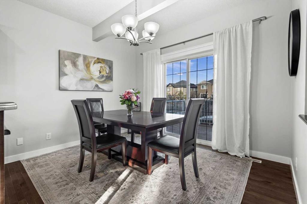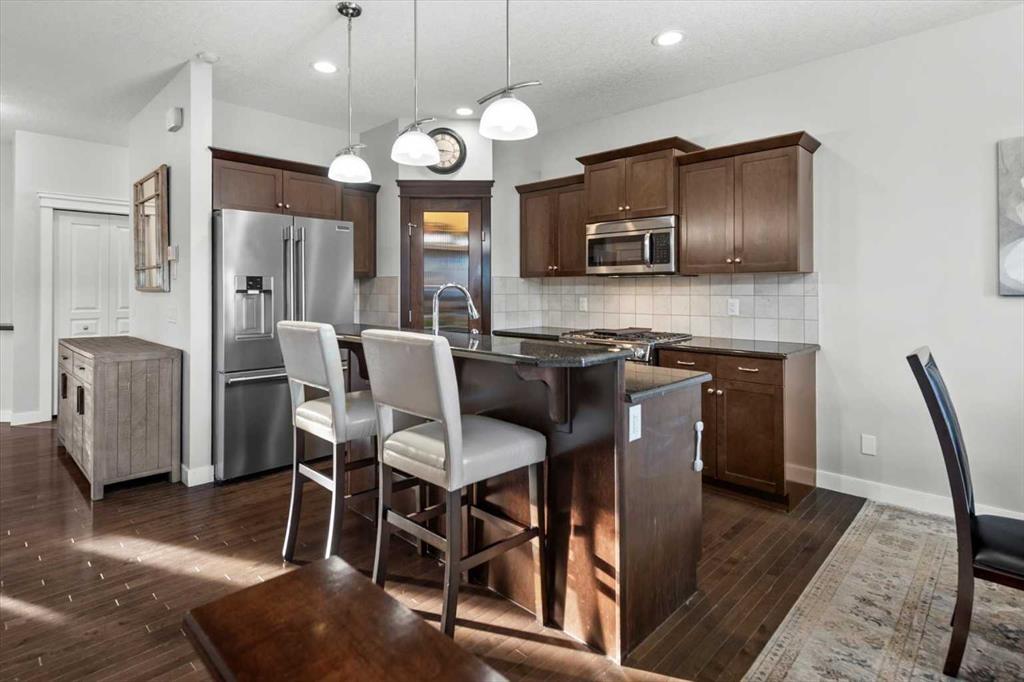 Meticulous, designer-inspired two-story home in the Airdrie community of Ravenswood. The welcoming foyer leads into a bright, open-concept main living area. The kitchen is beautifully appointed with a central island and breakfast bar, new stainless-steel appliances (including an exceptional gas range), and a walk-in pantry. Open to the kitchen, the family room features a cozy gas fireplace and outdoor views of the adjoining green space with its convenient walkway. Step outside to a private, fully fenced backyard with a fire pit—perfect for summer evenings with friends. Upstairs discover a bright, spacious bonus room, three bedrooms, and a 4-piece main bath. The primary retreat offers a customized walk-in closet and a 4-piece ensuite complete with a soaker tub and skylight. The unfinished lower level awaits a finishing design to suit your lifestyle. Ideally located close to Heloise Lorimer School and École des Haute-Plaines (K–12), with easy access to Highway 2 for easy commuting north and south, including YYC airport and downtown Calgary.