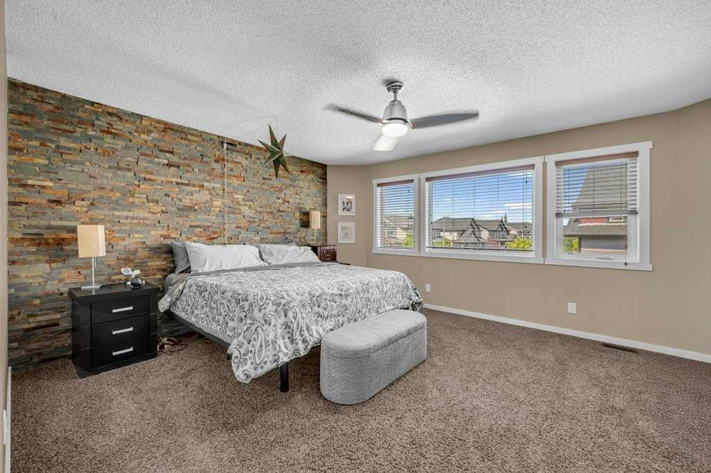 ** Open House - Saturday, November 15th from 2 PM to 4 PM ** Welcome to Kings Heights, one of Airdrie’s most desirable communities! This beautiful home sits on an expansive corner lot, offering over 2,500 sq. ft. of developed living space. From the moment you enter, you’ll notice the spacious foyer with soaring ceilings, abundant natural light, and beautiful tile flooring throughout the main level. The main floor features a 2-piece bathroom, a large front closet, and a massive mudroom with access to the oversized heated double attached garage. A walk-through pantry connects the mudroom to the gourmet kitchen, which boasts rich cabinetry, granite countertops, a stylish new backsplash, gas stove, stainless steel appliances, and a large island with a double sink and seating—perfect for cooking and entertaining. The bright dining area easily accommodates an 8-person table and leads out to a low-maintenance composite deck with an automatic awning, ideal for summer gatherings. The living room offers soaring knockdown ceilings, a cozy gas fireplace, pot lights, and a beautiful chandelier. Upstairs, you’ll find plush carpet throughout, a generous master retreat with a stone accent wall, a spa-like 5-piece ensuite (double vanity, soaker tub, walk-in shower, and private water closet), plus a large walk-in closet. Two additional spacious bedrooms, a 4-piece bathroom, a large laundry room with linen storage, and a bright bonus room complete the upper level. The fully finished basement provides even more living space, with a large bedroom and closet, a family room with wet bar (perfect for movie nights), a 4-piece bathroom with in-floor heating, and ample storage. Located just minutes from shopping, schools, and quick access to Deerfoot Trail—this home combines elegance, comfort, and convenience in one of Airdrie’s best neighborhoods. Recent updates include: new hot water tank (2025), brand-new microwave, and all new fixtures.