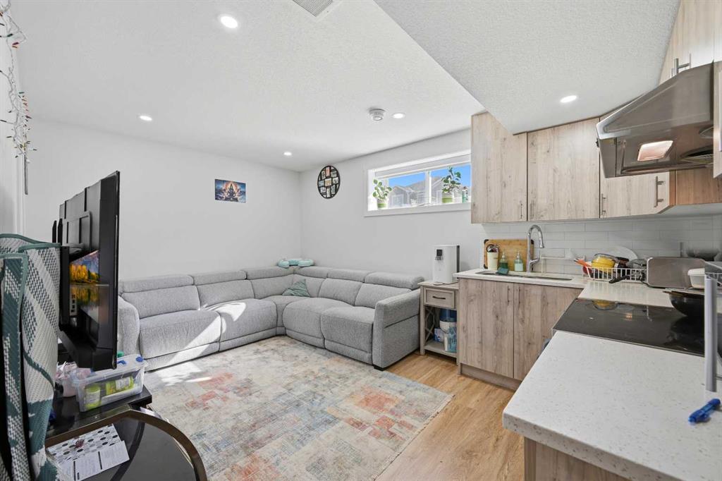 Welcome to 1448 Bayview Point SW — A Stunning 2023 Genesis-Built Home in the Heart of Bayview, Airdrie! Nestled on a desirable corner lot in the beautiful community of Bayview, this home offers over 2,000 sq ft of thoughtfully designed above grade area, loaded with upgrades throughout. With 3 bedrooms + bonus room, 2.5 bathrooms upstairs, and a 2-bed and full bath finished basement, this property is the perfect blend of style, comfort, and functionality. Step inside to a bright and welcoming main floor boasting 9' ceilings, neutral tones, and stunning luxury vinyl plank flooring flowing throughout. The heart of the home is the upgraded gourmet kitchen, complete with quartz countertops, a massive island, and premium finishes — a dream for any home chef. The generous dining area opens through patio doors to the backyard, seamlessly blending indoor and outdoor living. Relax and unwind in the spacious living room, where large windows flood the space with natural light and a cozy fireplace sets the perfect ambiance for entertaining family and friends. Upstairs, the primary bedroom is a true retreat, featuring a luxurious 5-piece ensuite with quartz countertops, a freestanding soaker tub, a separate shower, and a walk-in closet. Two additional generously sized bedrooms — each with their own walk-in closets — a full bathroom with quartz countertops, a convenient upper-floor laundry room, and a large bonus room complete the second floor. The fully finished basement with a separate side entrance features 2 bedrooms, a full kitchen, a full bathroom, and separate laundry to complete the home. Outside, enjoy the corner lot with added space and privacy, and take advantage of the playground directly behind the property — perfect for families with young children right at your doorstep. Located in the sought-after community of Bayview, this home combines modern finishes, smart layout, and an unbeatable location. Homes like this don't last — book your private showing today!