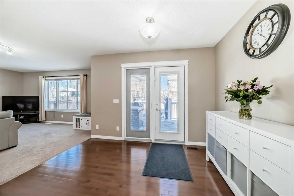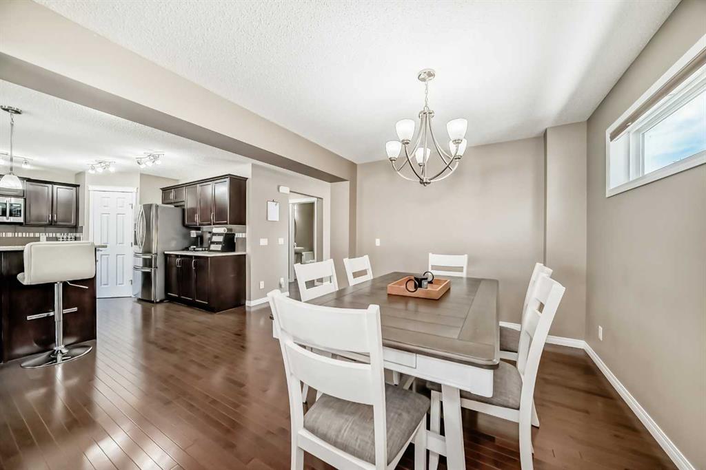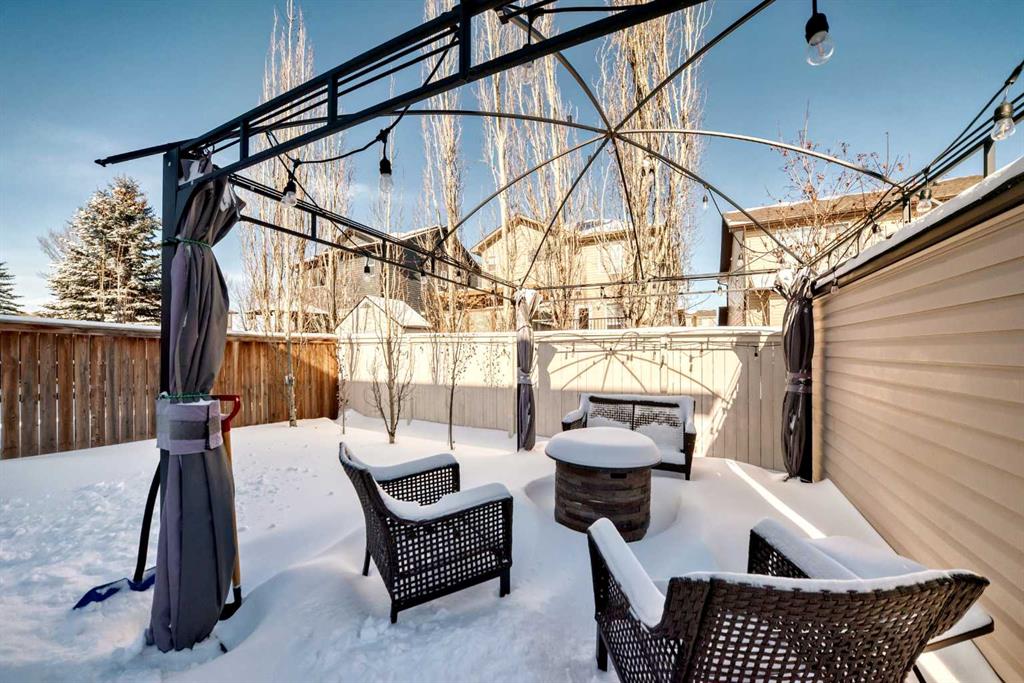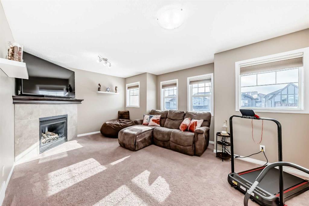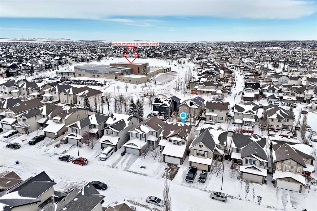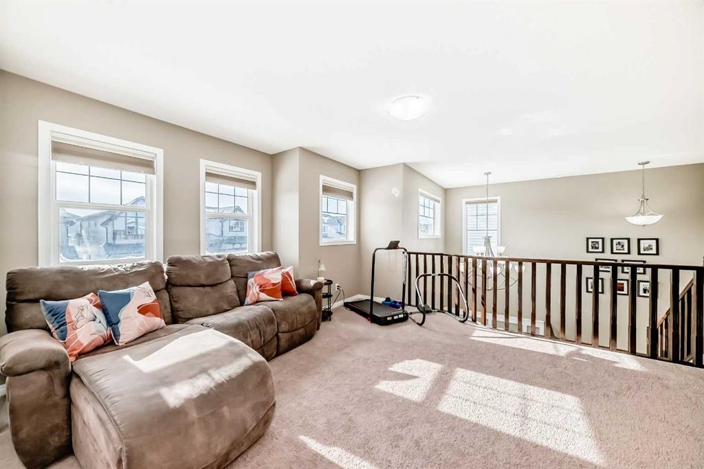 Welcome to this exceptional 4-bedroom, 3.5-bathroom family home in the vibrant community of Morningside in Airdrie—offering over 3,200 sq. ft. of thoughtfully developed living space designed for modern family life. From the moment you arrive, you’ll notice the pride of ownership. New Gemstone eaves lighting and fresh sod create stunning curb appeal and a warm, inviting first impression. Step inside to a grand foyer with soaring ceilings where expansive windows flood the home with natural light and set the tone for the open, airy layout. At the heart of the home, the spacious kitchen is both stylish and functional—featuring rich espresso maple cabinetry, granite countertops, stainless steel appliances, a raised breakfast bar, abundant prep and storage space, gleaming hardwood floors and walk-through pantry. Whether hosting friends or enjoying casual family meals, this kitchen delivers. The open-concept design flows effortlessly into the bright breakfast nook and welcoming living room, highlighted by an eye-catching feature fireplace. A separate formal dining room provides the perfect setting for larger gatherings - or offers flexibility as a home office or multi-purpose space. A convenient main-floor laundry room with utility sink and a practical mudroom off the heated double garage complete this level. Upstairs, a loft-style bonus room with a second fireplace creates a cozy retreat for movie nights or quiet evenings in. The primary suite is a true sanctuary—generously sized and complemented by a luxurious 5-piece ensuite featuring tile flooring, dual sink granite top vanity, a soaker tub, walk-in shower, and a spacious walk-in closet with custom built-ins. Two additional large bedrooms and a beautifully finished full bathroom complete the upper level. Custom blinds are installed throughout, including remote-controlled blinds in the grand entry for added convenience. The professionally finished basement (completed by the builder) expands your living space with impressive 9’ ceilings, a large recreation room, fourth bedroom, full 4-piece bathroom, and ample storage - ideal for guests, teens, or extended family. Step outside to your fully landscaped backyard oasis. Enjoy summer evenings on the upper deck with a natural gas BBQ line or relax under the pergola on the lower patio, and take advantage of the spacious storage shed with roller door for all your outdoor essentials. The attached double garage is heated and insulated, and central air conditioning ensures year-round comfort. Perfectly located within walking distance to schools, parks, shopping, and scenic pathways - with quick access to Deerfoot via the new overpass - this home offers the ideal blend of style, space, and convenience. Move-in ready and meticulously maintained, this is the complete family package in one of Airdrie’s most desirable locations. Don’t miss out on this Morningside home and book your showing today!