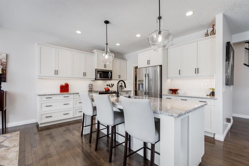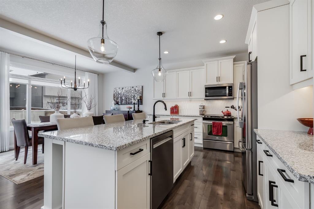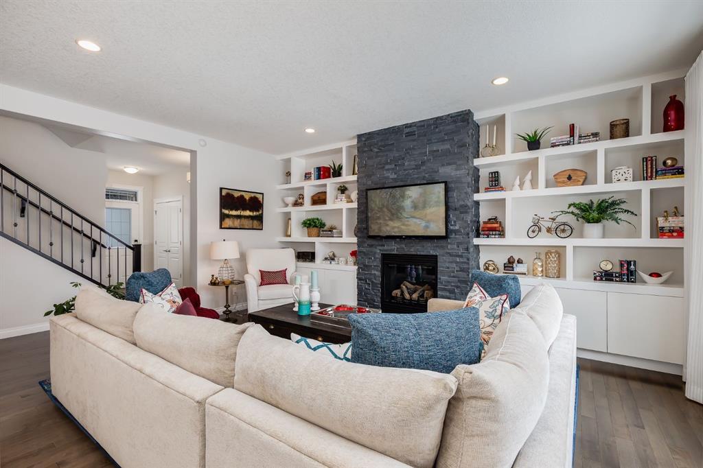 OPEN HOUSE SUN MAR 15th 12:00 - 2:00 pm ** This Stunning Executive Style Home has over $50,000 of Recent Updates that elevate the Decor and Functionality making it Unique and Gorgeous. This Home exudes PRIDE OF OWNERSHIP as it is so well cared for. When you arrive, you are welcomed into the spacious foyer with a large seating bench and the Hardwood Flooring that leads to the Spectacular Living Room that features a Custom Built Wall Unit that surrounds a beautiful Fireplace with Stone Wall. The Wall Unit has amazing Shelves for you to showcase your items and books plus extra cabinetry for storage. The Dream Kitchen has Ivory Coloured Cabinetry with Undermount Lighting, Lots of Pot and Pan Drawers, Upgraded Appliances, Upgraded Lighting, Granite Countertops and an Upgraded Island. The Pantry walks through to the Mudroom that has additional storage and lots of hooks for backpacks and coats. The Dining area can host a larger table and opens to the Large Deck. The Staircase with upgraded metal railing leads to the Bonus Room and Upper Laundry Room. The Primary Bedroom can host a King Suite and has a Ensuite with Dual Vanities, Soaker Tub and Shower Stall. There is New Carpets on the Upper Level. The Lower Level has been Renovated with a Fantastic Wall Unit in the Recreation Room with tons of Cabinetry for Storage, a Beautiful Electric Fireplace, and an incredible Wet Bar with Wine Fridge, Undermount Lighting, Desk area, and more storage. The 4th Bedroom has a Custom Built in Closet and Modern 3 pc Bathroom with Shower Stall complete the Lower Level. This Home also has a Water Softener, Freezer, and Upgraded Window Coverings. The rear of the home has a Large Yard for the kids to play and an oversized deck perfect for you to enjoy all summer long. Located close to Nose Creek Elementary School, pathways and easy access to transportation and amenities. This Stunning Home is ready for your family to make it yours. Ensure to watch the video tour on Realtor.ca or MLS Listing