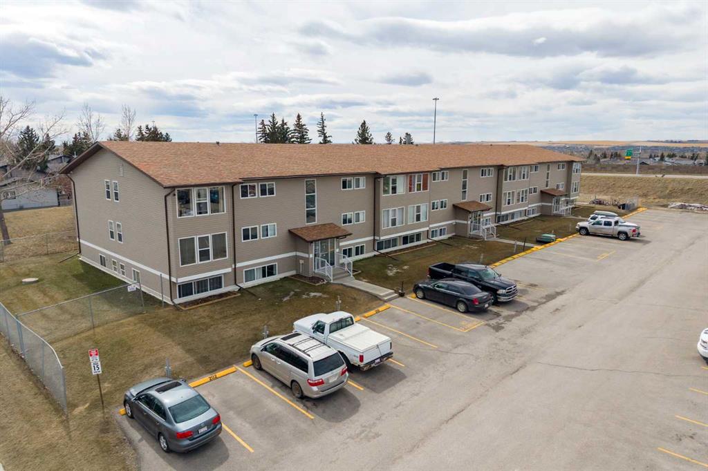 This updated 1-bedroom plus den, 1-bathroom apartment at 101 Big Hill Way offers a move-in-ready opportunity for homeowners or investors. The unit was refreshed in 2023 with new laminate flooring, lighting, fresh paint, and updated kitchen countertops and backsplash. The functional layout features a dedicated dining area, a flex/office/storage space at the entry, and a spacious primary bedroom that easily accommodates king-sized furniture. Enjoy natural cooling year-round thanks to the north-facing position. This pet-friendly home includes a parking stall directly outside the main door and ample visitor parking. Located in Big Springs, you are steps from walking paths and green spaces, and within 5 minutes of Genesis Place recreation centre, No Frills, local cafes, and the West Airdrie overpass. Schools, including Bert Church High and R.J. Hawkey Elementary, are within easy walking distance.