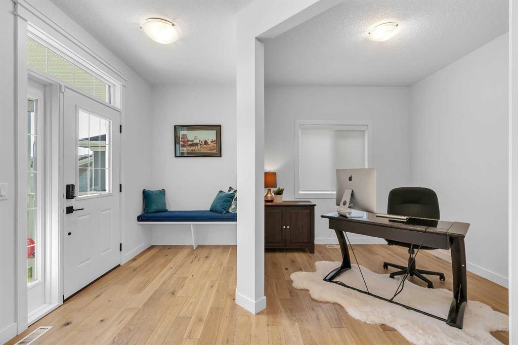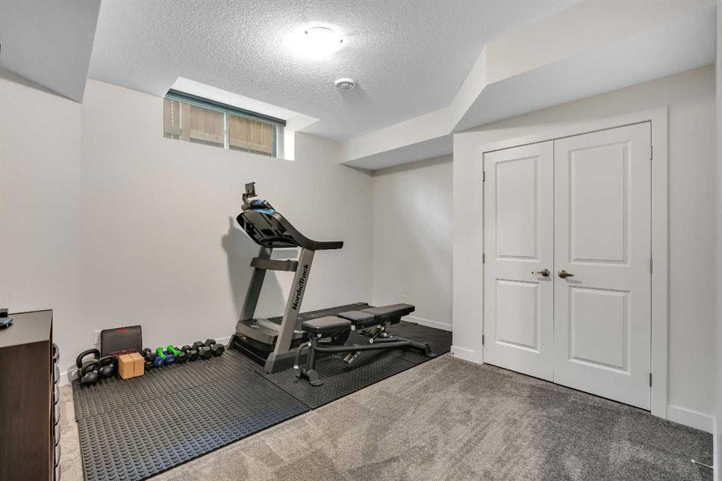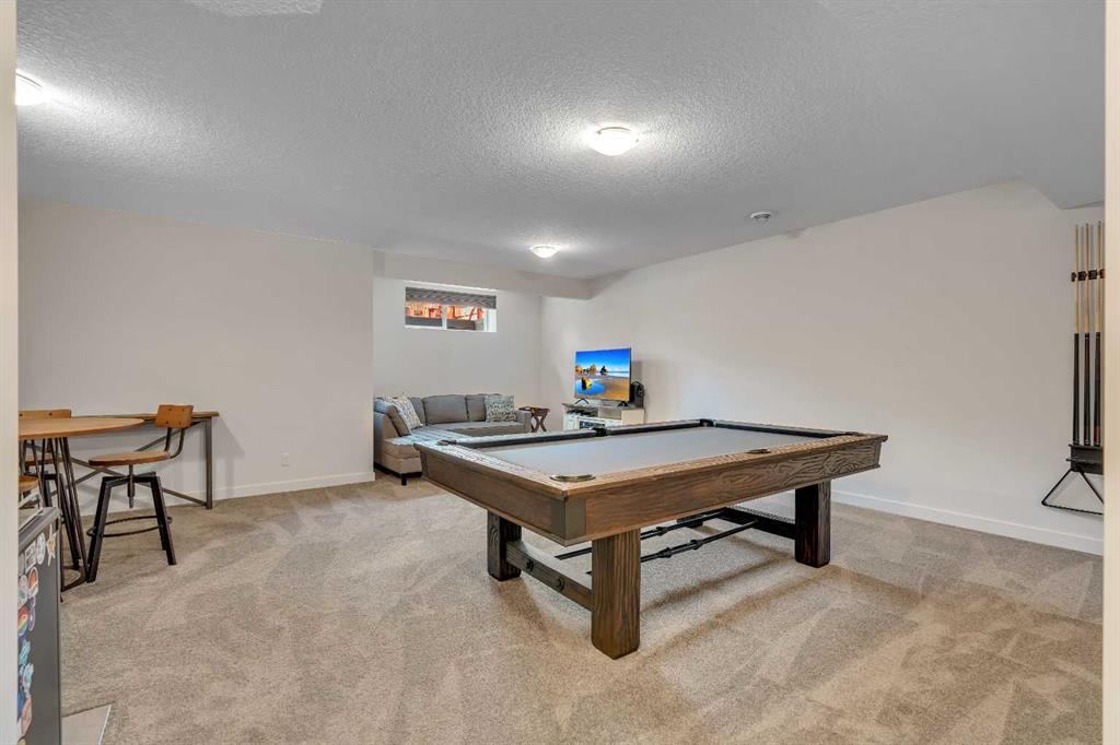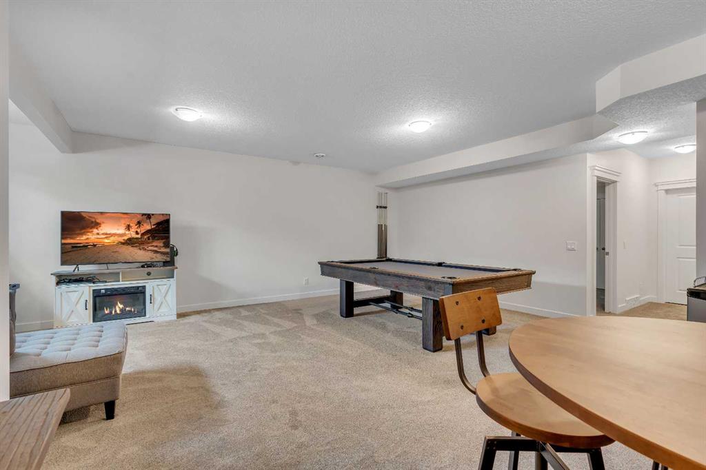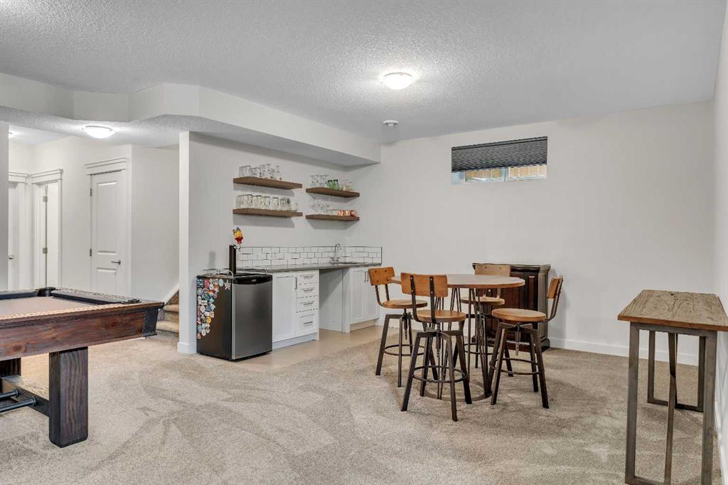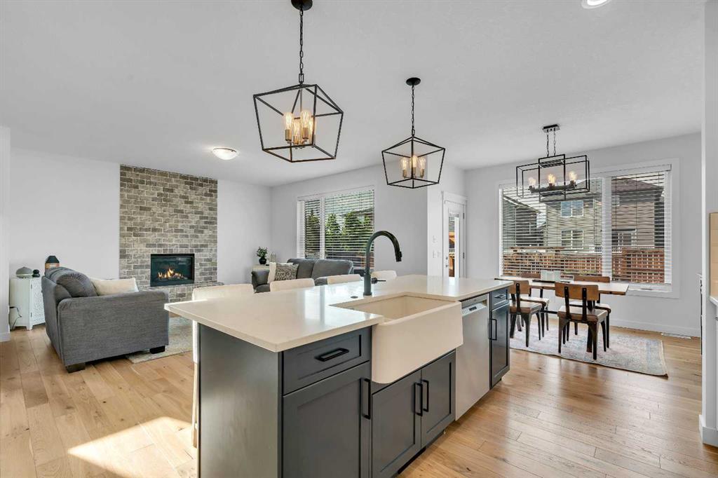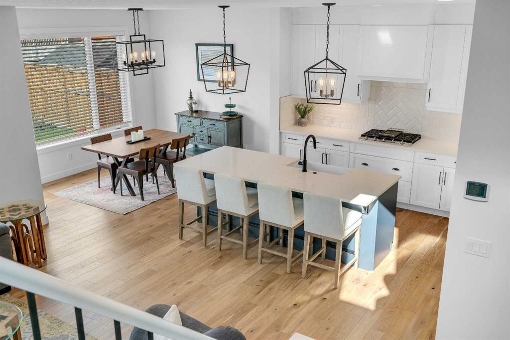 Step into this beautifully maintained home in Ravenswood, Airdrie, where functionality and comfort come together in over 3,400 sq ft of usable space! From the moment you arrive, the front-facing double attached garage and covered porch set a warm and functional tone. Step inside to a spacious entryway with high ceilings and a warm welcome to the home. Just off the front hall, a private office sits in a quiet alcove—ideal for working from home or managing daily life. Moving further in, the open-concept main floor is bright and inviting, with engineered hardwood flooring running throughout. The living room features a central fireplace with decorative brickwork, offering both warmth and visual appeal, while large windows flood the dining space with natural light and offer clear views of the landscaped backyard. The kitchen is a true highlight, with granite countertops, a large island with seating for entertaining, under-cabinet lighting, updated appliances, and custom ShelfGenie pull-out drawers in every cabinet for effortless organization. A walk-in pantry sits just steps away, keeping everything within easy reach. Upstairs, you’ll find a spacious primary retreat complete with a luxurious ensuite featuring a deep soaker tub, tiled walk-in shower, double vanities, and a generous walk-in closet. A large bonus room provides versatile space for relaxing, entertaining, or play. Two additional bedrooms share a stylish 5-piece bathroom with dual sinks and a tub/shower combo—perfect for family or guests. The fully finished basement extends your living space even further with plush carpeting, a wide-open rec area, a built-in bar, an additional room that can serve as a fourth bedroom, gym, or hobby space, and a full bathroom for added convenience. Step outside to a backyard built for enjoyment, with thoughtful landscaping, a pergola providing a designated outdoor lounge area, an included hot tub, and direct access to the paved alley. Artificial turf in the front and back yard provides convenience and easy maintenance in every season! And yes - central air conditioning keeps the home comfortable year-round. Situated in Ravenswood, this home benefits from a strong sense of community, access to excellent schools, nearby parks and green spaces, and an easy commute to Calgary. Whether you're raising a family or simply looking for a well-connected neighbourhood with modern amenities, Ravenswood offers the perfect place to call home.