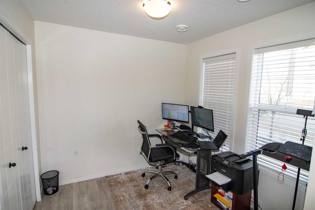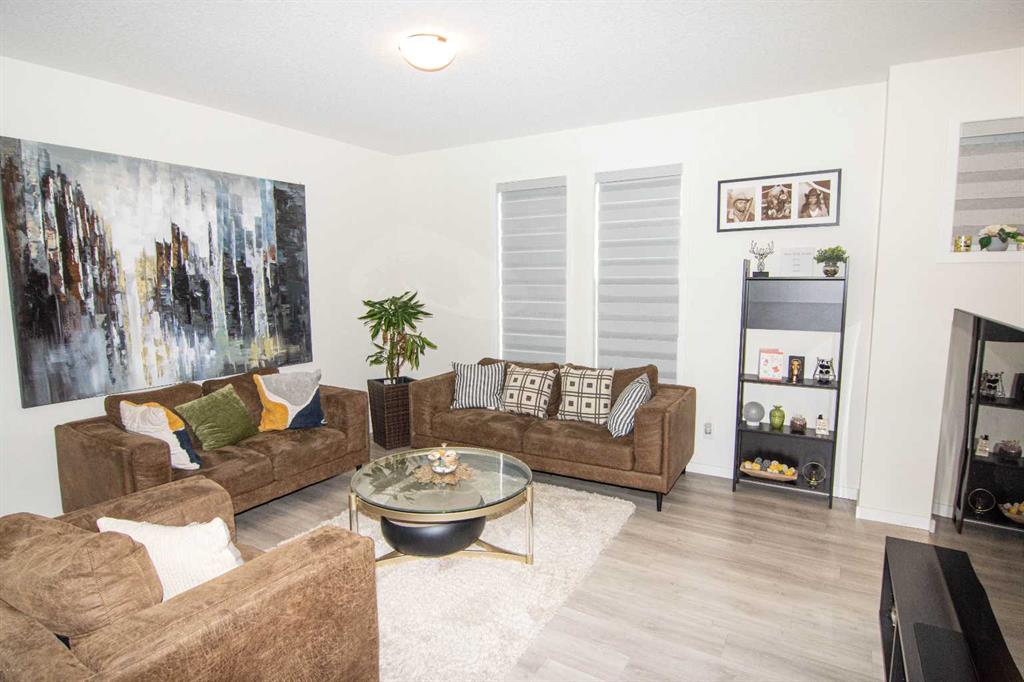 Welcome to this impeccably maintained townhouse in the highly sought-after SouthPoint Park community of SW Airdrie. Offering 3 bedrooms, 2.5 bathrooms, and a versatile lower-level flex space, this residence seamlessly blends modern style, thoughtful design, and everyday comfort. Step inside to a bright, open-concept layout designed for both functionality and elegance. The lower level features a spacious flex area—ideal for a home office, fitness studio, media room, or play space—providing flexibility to suit your lifestyle needs. The main level showcases beautiful vinyl plank flooring throughout and an effortless flow between living spaces. At the heart of the home is a stunning white kitchen accented with striking black finishes. Designed with both form and function in mind, it features a generous centre island, sleek stainless steel appliances, quartz countertops, and a dramatic full-height tile backsplash. Ample cabinetry and counter space make this kitchen perfect for everyday living and hosting gatherings alike. Across from the kitchen is a spacious dining area with direct access to a private balcony—an inviting extension of your living space. Adjacent, the comfortable and well-proportioned living room offers the perfect setting to relax or entertain. A convenient powder room completes this level. On the upper level, the primary suite provides a private retreat, complete with a 3-piece ensuite. Two additional well-sized bedrooms, a full bathroom, and the convenience of upper-level laundry complete the upper floor. The attached double garage offers both practicality and additional storage, while the spacious balcony creates an ideal outdoor escape for morning coffee or evening relaxation. Ideally located just steps from schools, playgrounds, and everyday amenities, this home presents an exceptional opportunity for families and modern buyers alike. With its strategic location, thoughtful layout, and outstanding value, this turnkey residence delivers comfort, convenience, and lifestyle in one exceptional package. Don’t miss your chance to make this property your own — schedule a private showing or connect for early access today!???