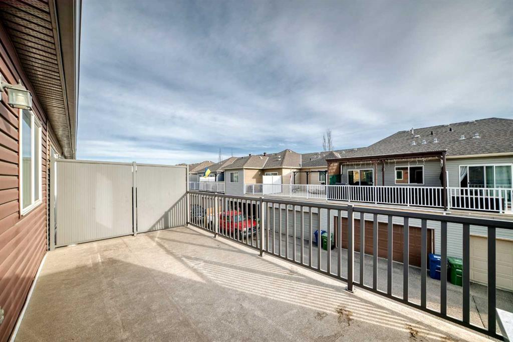 Open House, Nov 15, 12-2 pm. Welcome to the heart of southwest Airdrie — where convenience meets comfort! Located just off the new 40th Avenue interchange, this beautifully maintained 2012 row townhouse offers quick and easy access to everything Airdrie and Calgary have to offer. You’ll love being just minutes from Windsong School, Coopers Crossing Shopping Centre, CrossIron Mills Mall, and the Calgary Airport — the perfect location for busy families and commuters alike. This NO CONDO FEE home is individually titled and features a double attached garage and low-maintenance yard. Inside, you’re greeted with elegant hardwood floors and an open-concept main level that flows seamlessly between the kitchen, dining, and living areas — perfect for entertaining or relaxing at home. Upstairs, enjoy a spacious bonus room with access to your private balcony above the garage, ideal for morning coffee or evening sunsets. The primary bedroom includes a private ensuite, while two additional bedrooms and a 4-piece bath complete the upper level. The unfinished basement with a rough-in for a future bathroom provides the perfect opportunity to expand your living space as your family grows. Come experience this vibrant and accessible area of Airdrie — your new home awaits!