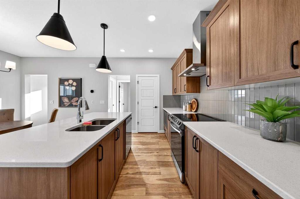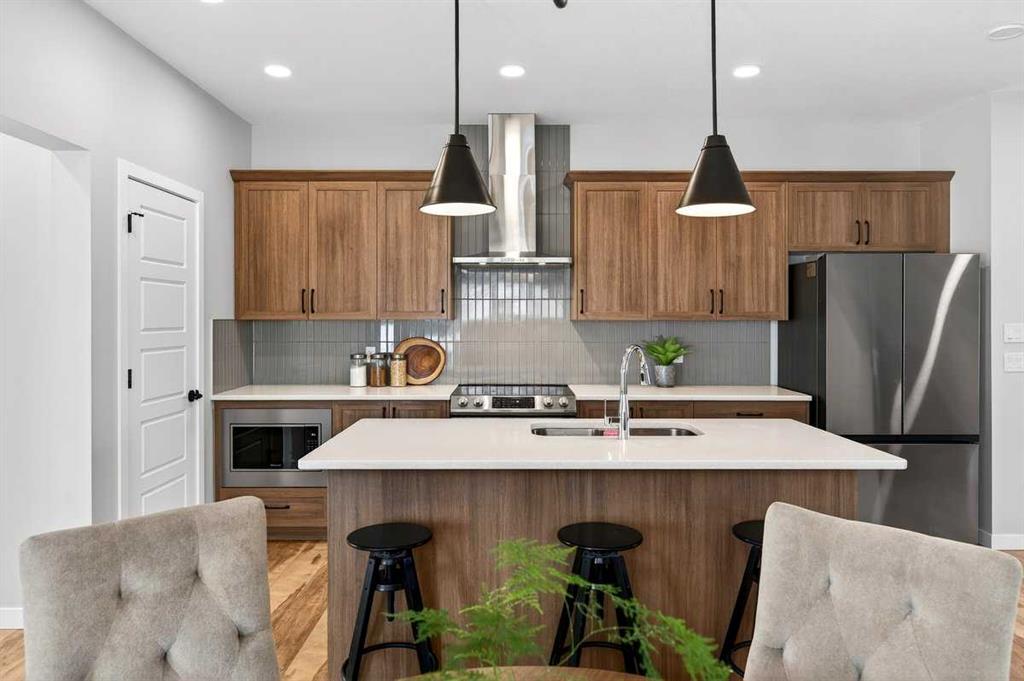 Welcome to this beautifully appointed, McKee-built 3 bedroom, 2.5 bathroom home with a double detached garage, fully completed fencing and landscaping, ideally located on a quiet street in a sought-after neighborhood close to all amenities—truly better than new with no extra work or expense required. Just move right in! The main floor features an open and inviting layout accented by gorgeous vinyl plank flooring and stylish finishes throughout. The modern kitchen is the heart of the home, showcasing quartz countertops, a large kitchen island, a pantry, and beautiful stainless steel appliances, including a sleek built-in microwave. A dedicated den/office on the main floor adds flexibility and is perfect for working from home or creating a quiet study space. Upstairs, you’ll find three generously sized bedrooms and well-appointed bathrooms designed for both comfort and functionality. The unfinished basement offers a blank canvas for future development to suit your lifestyle needs. Outside, the professionally finished yard enhances both curb appeal and outdoor living, while the double detached garage provides excellent parking and storage.