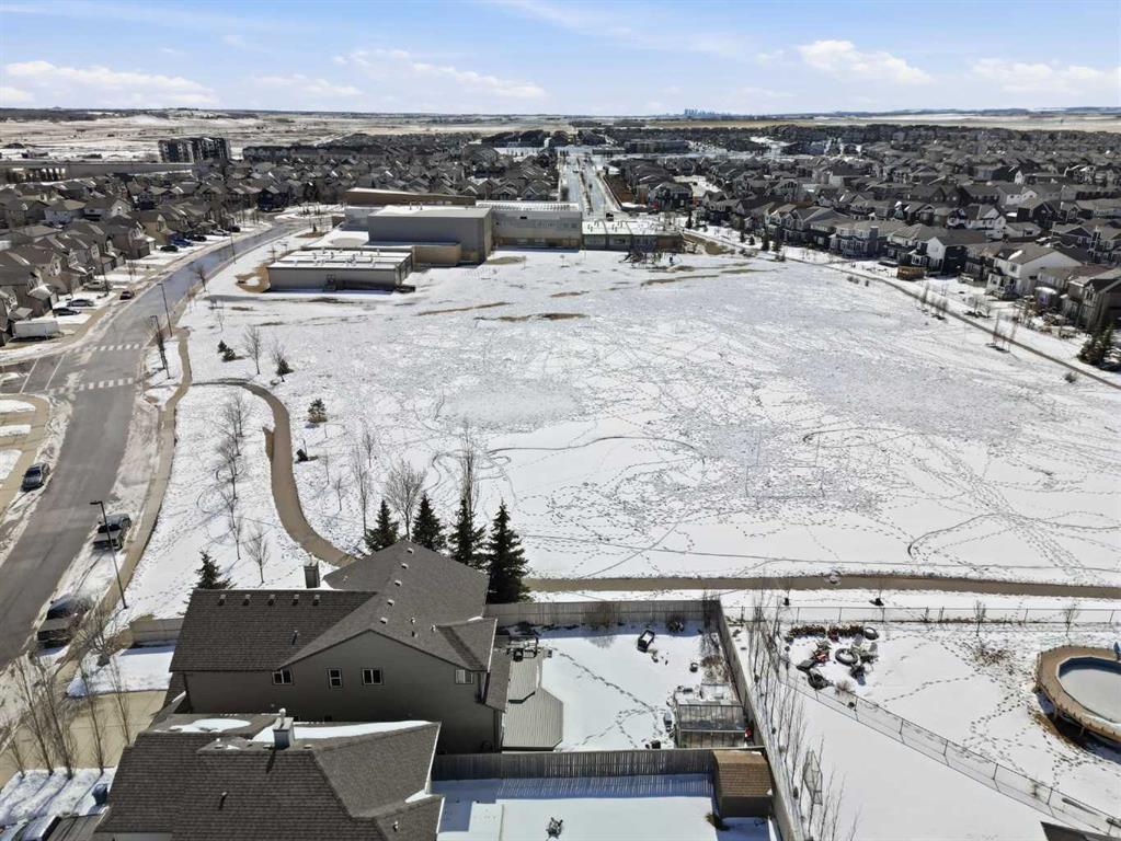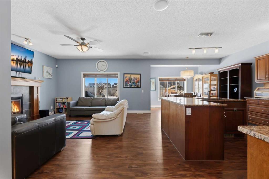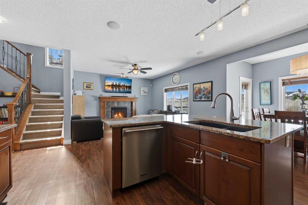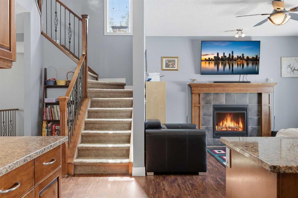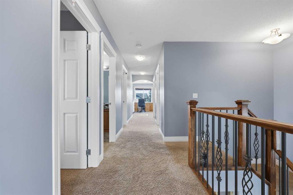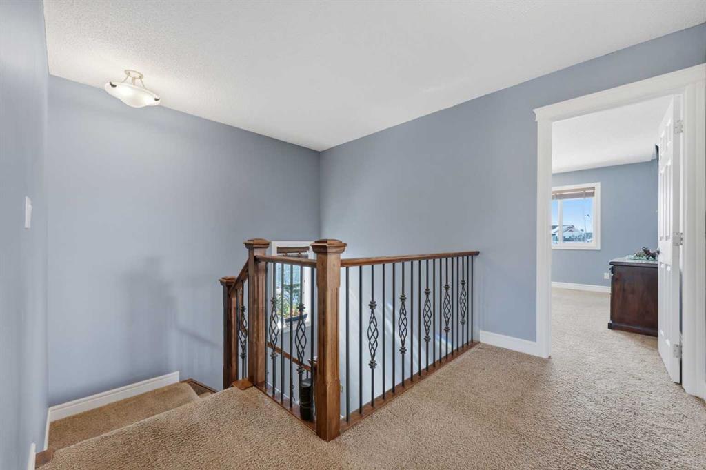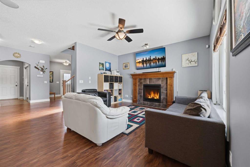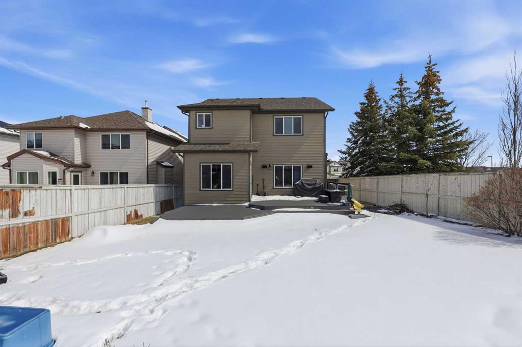 With a west-facing backyard and siding onto green space, 399 Coopers Drive SW delivers over 3,200 sq. ft. of developed living space with a layout that actually works for a busy household. The exterior is finished in durable Hardie board siding, and the backyard is fully fenced with a newer composite deck—perfect for taking advantage of the afternoon and evening sun. Stepping inside the front door, you’re greeted by a spacious front entry with a massive walk-in closet (a rare and genuinely useful feature), plus a dedicated main floor office. The kitchen is functional, featuring stone countertops, a large pantry, and new high-end appliances, all tied together with laminate flooring across the entire level. This home leans into entertaining, with a built-in speaker system that flows from the interior to the backyard deck. Upstairs, you’ll find FOUR generously sized bedrooms, including a primary retreat with a walk-in closet and a five-piece ensuite as well as a BONUS area and a 5-piece bath. The fully developed basement adds real flexibility—complete with a FIFTH bedroom, full bathroom, and a comfortable rec space with a wet bar and second fireplace. Central A/C, two hot water tanks, and a DOUBLE ATTACHED, HEATED garage are already in place. Located close to schools, shopping, playgrounds and pathways, with the added bonus of green space right next door, this is a solid, move-in-ready option in one of Airdrie’s most family-friendly communities.