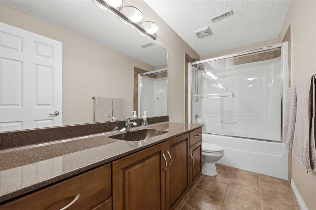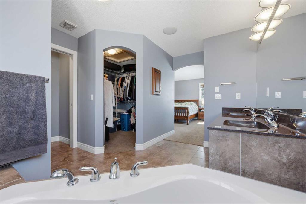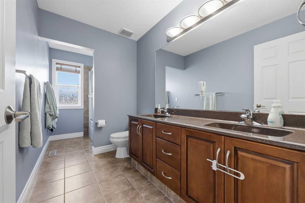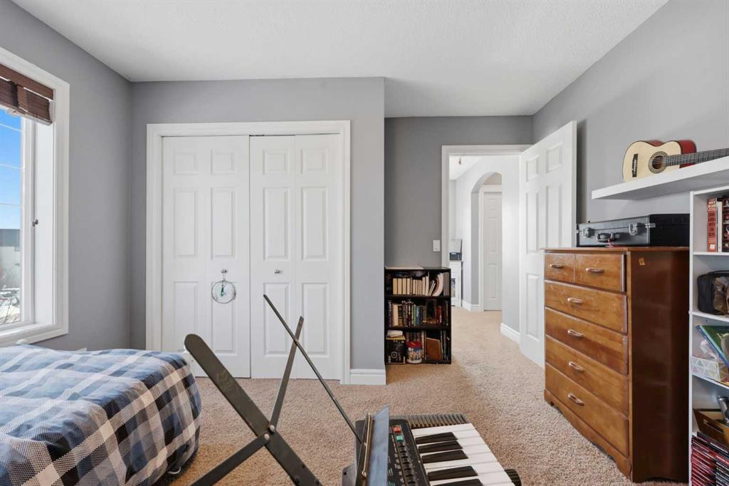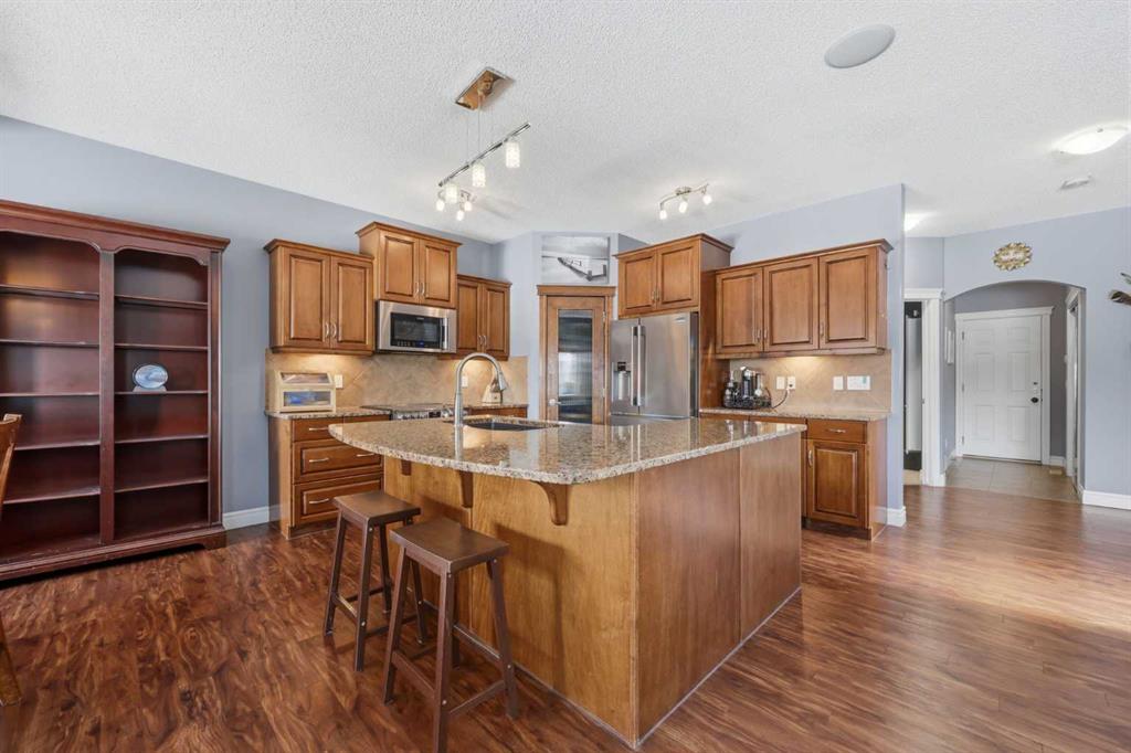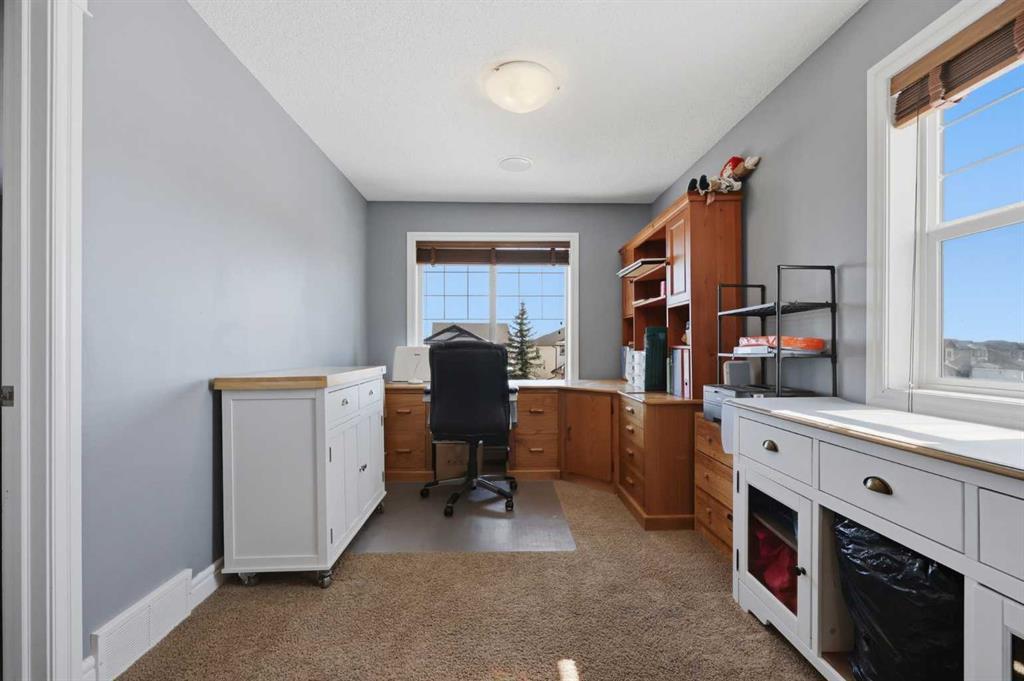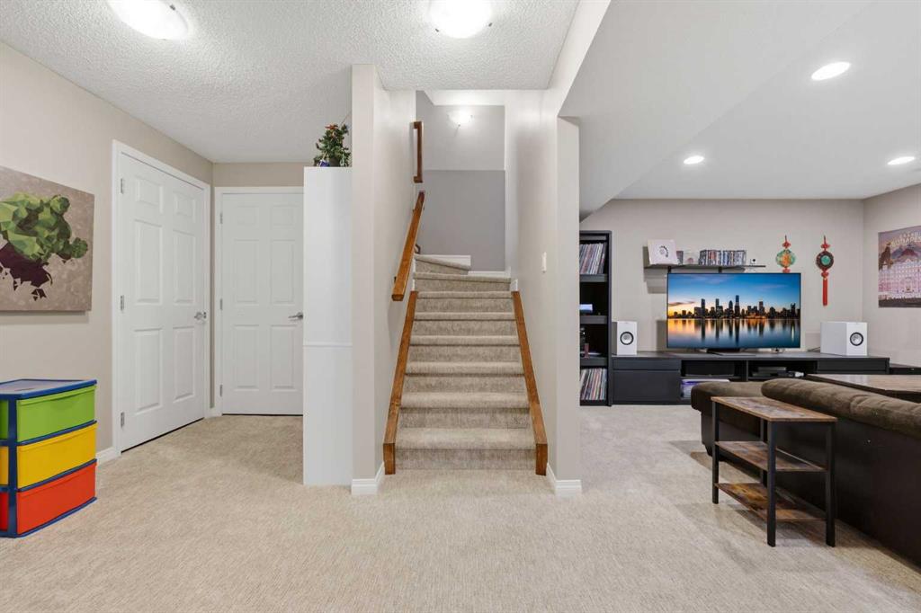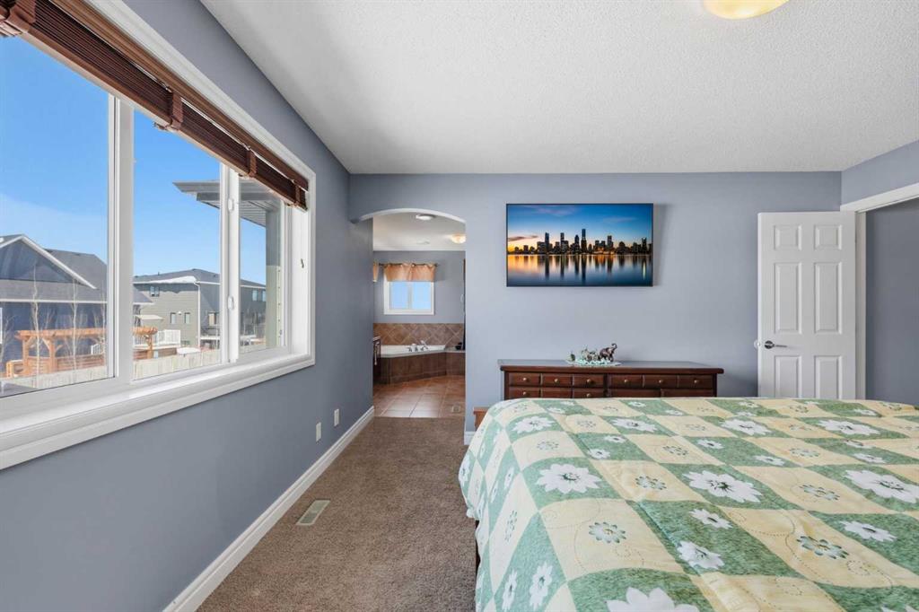 With a west-facing backyard and siding onto green space, 399 Coopers Drive SW delivers over 3,200 sq. ft. of developed living space with a layout that actually works for a busy household. The exterior is finished in durable Hardie board siding, and the backyard is fully fenced with a newer composite deck—perfect for taking advantage of the afternoon and evening sun. Stepping inside the front door, you’re greeted by a spacious front entry with a massive walk-in closet (a rare and genuinely useful feature), plus a dedicated main floor office. The kitchen is functional, featuring stone countertops, a large pantry, and new high-end appliances, all tied together with laminate flooring across the entire level. This home leans into entertaining, with a built-in speaker system that flows from the interior to the backyard deck. Upstairs, you’ll find FOUR generously sized bedrooms, including a primary retreat with a walk-in closet and a five-piece ensuite as well as a BONUS area and a 5-piece bath. The fully developed basement adds real flexibility—complete with a FIFTH bedroom, full bathroom, and a comfortable rec space with a wet bar and second fireplace. Central A/C, two hot water tanks, and a DOUBLE ATTACHED, HEATED garage are already in place. Located close to schools, shopping, playgrounds and pathways, with the added bonus of green space right next door, this is a solid, move-in-ready option in one of Airdrie’s most family-friendly communities.