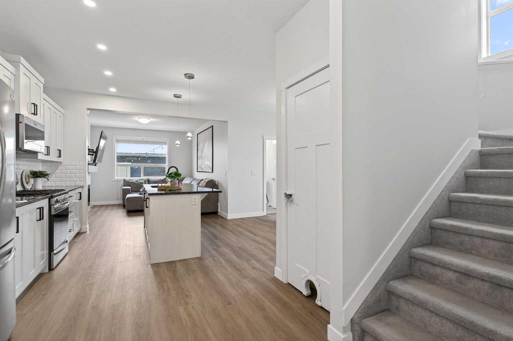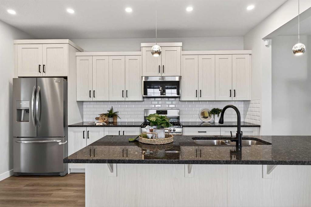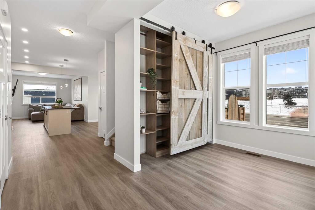 *** Open house Sun 1-3pm*** Welcome to the "Big Blue House" in South Point—Over 3,338 sq ft of developed space. A standout corner-lot property that perfectly balances unique architecture with functional, living. This iconic home offers a rare 3rd-floor loft and a fully finished basement, providing a versatile layout that adapts to your lifestyle. The main floor features 9ft ceilings, and an open-concept design anchored by a gourmet kitchen with granite countertops, a gas range, and a central island. Brand new vinyl plank floors. A dedicated den with stylish barn doors and custom California Closets shelving makes for an ideal home office or organized library. The home is designed to maximize natural light, with three of the bedrooms featuring windows on two sides. Two bedrooms include charming built-in reading benches. The whole home has been freshly painted The true showstopper is the rare 3rd-floor loft—a private retreat featuring a massive bedroom, a full bathroom, and a bright bonus room. Downstairs, the fully developed basement offers a flexible area perfect for a gym, media room, or hobby space. Stay comfortable year-round with full Air Conditioning and a cozy gas fireplace in the living room. Outside, the sunny south-facing rear yard is a low-maintenance oasis with artificial turf, a deck, and a firepit—all enclosed by a beautiful fence. Situated on a prominent corner lot across from the quiet side of the Northcott Prairie School (K-8) yard, you are just steps from tennis courts, basketball courts, an off-leash dog park, and easy access to Highway 2. With a double garage and an abundance of street parking, this is the complete package. Don't miss your chance to own one of South Airdrie's most unique homes!