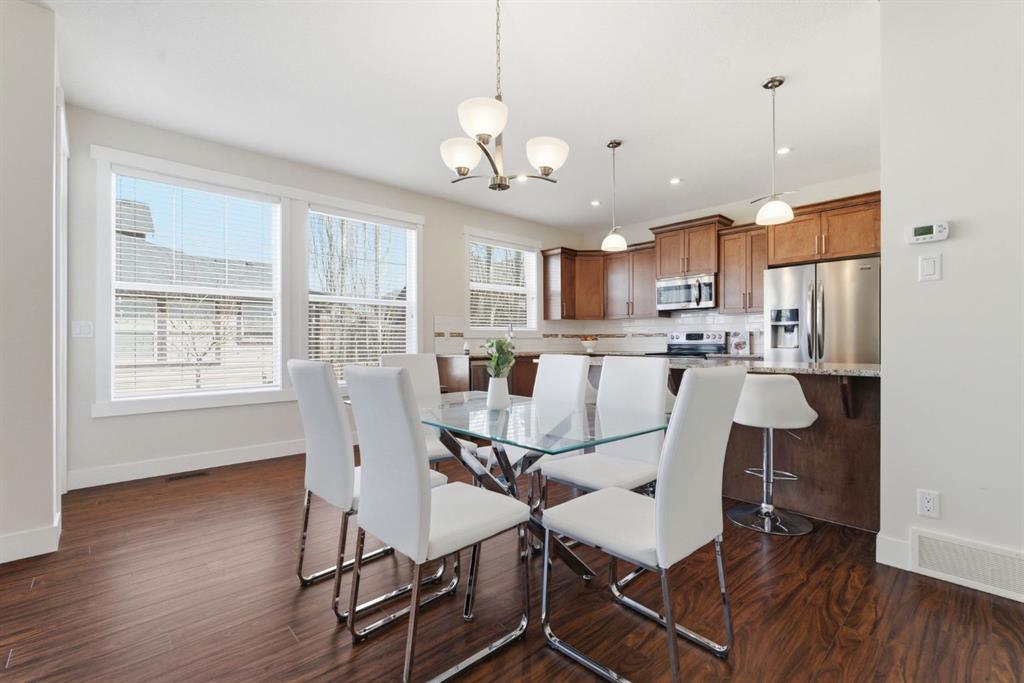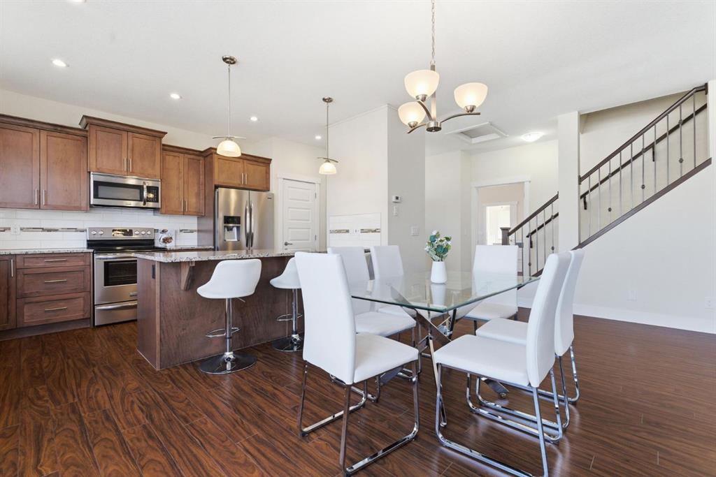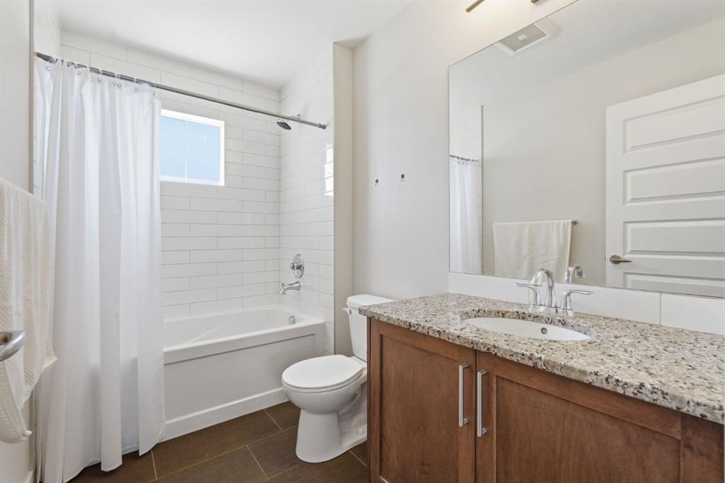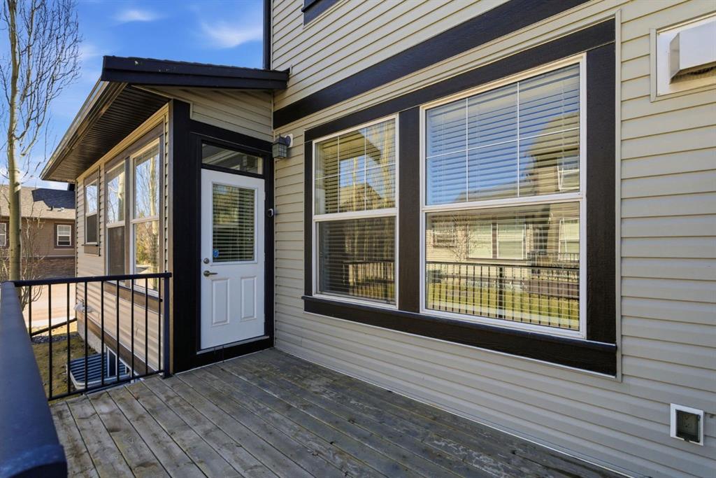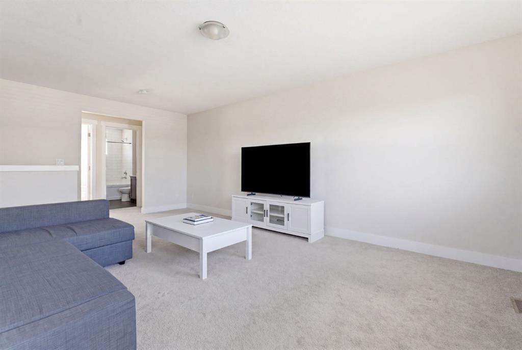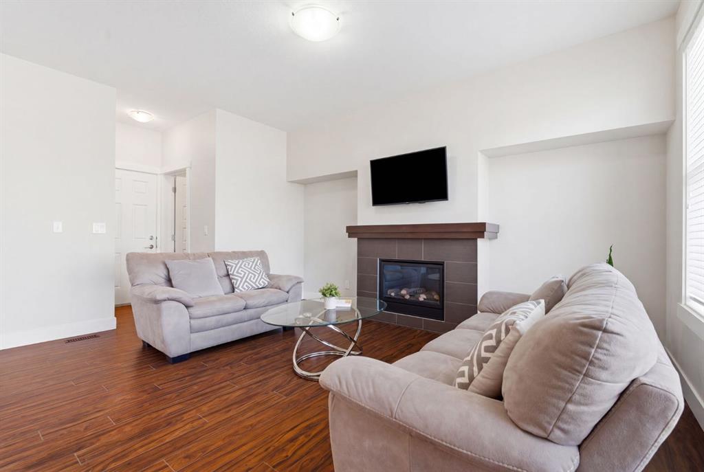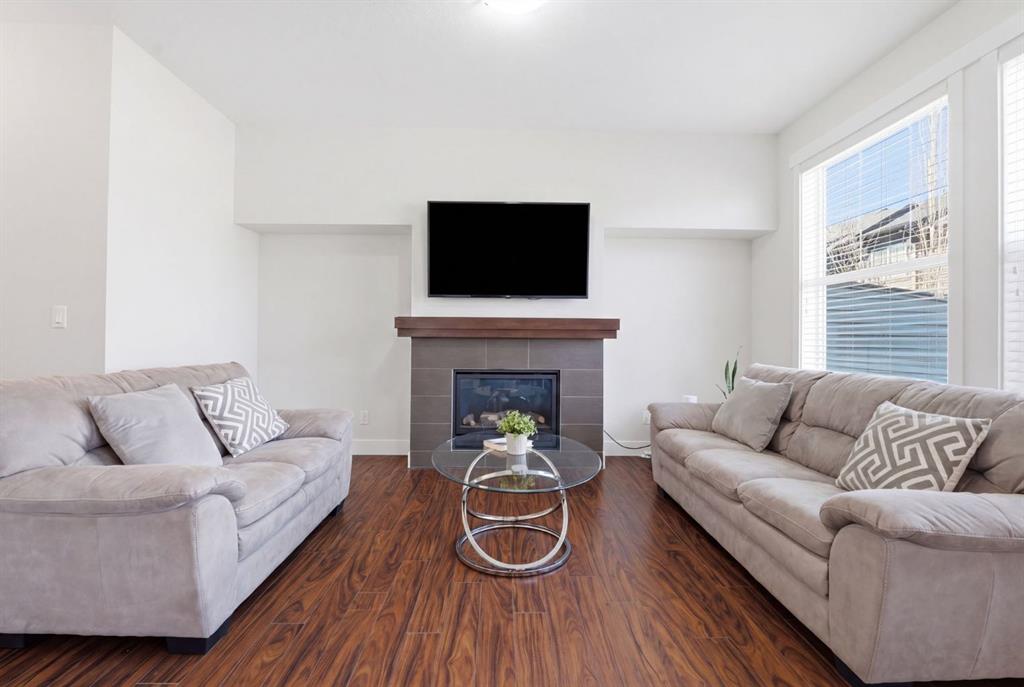 Welcome to this beautifully maintained two-storey townhome in the award-winning community of Coopers Crossing, where style, space, and convenience come together in one exceptional property. Offering over 1,700 sq ft above grade plus an additional 1,000 sq ft in the unfinished basement, this home provides an excellent balance of comfortable living today with room to grow tomorrow. Ideally located close to schools, parks, pathways, shopping, and everyday amenities, this is a property that truly delivers on lifestyle. Step inside to a bright and inviting main floor featuring an open-concept design perfect for both everyday living and entertaining. The spacious kitchen is the heart of the home, complete with granite countertops, stainless steel appliances, abundant cabinetry, and a large sit-up breakfast bar island that offers plenty of prep space and casual seating. The adjoining dining area flows seamlessly into the welcoming living room, where a cozy fireplace creates the perfect setting for relaxing evenings at home. The main floor primary suite is a standout feature, offering a generous retreat complete with a walk-in closet and a luxurious 5-piece ensuite with dual sinks and a soaker tub. This sought-after main floor bedroom layout adds comfort and convenience for a variety of lifestyles. Upstairs, you’ll find a spacious and versatile bonus room ideal for family movie nights, a second living area, playroom, or home office. This level also includes a second good sized bedroom, an additional full bathroom, and a family room area that offers excellent flexibility for guests, children, or multi-purpose living. The unfinished basement adds approximately 1,000 sq ft of future potential, ready for your personal vision whether you choose to create more living space, a gym, hobby area, or simply enjoy the abundance of storage. Step outside to the large deck, perfect for summer BBQs or quiet evenings outdoors. Completing the home is the rare convenience of a double attached garage, providing secure parking and extra storage year-round. Lovingly cared for and thoughtfully designed, this Coopers Crossing gem offers the open-concept main floor, spacious kitchen, main floor primary retreat, upper bonus space, attached garage, and incredible future basement potential all in one of Airdrie’s most sought-after communities.