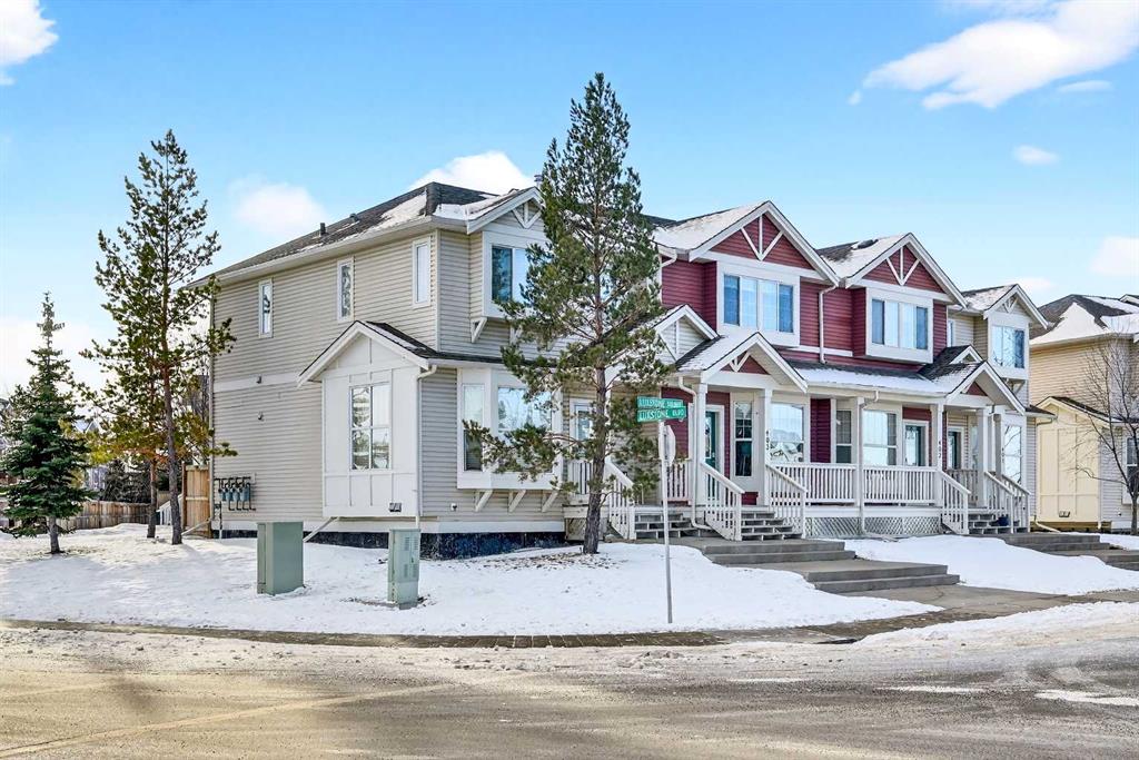 Step into stylish comfort in this beautifully maintained 3-bedroom, 2.5-bath 2-storey townhome located in the heart of family-friendly Luxstone. Boasting over 1,700 sqft of total thoughtfully designed living space with a fully finished basement, this home is the perfect fit for first-time buyers, growing families, downsizers, or savvy investors. The bright and inviting main floor features soaring 9’ ceilings, a large bay window that fills the living room with natural light, modern ceiling fans in both the living and dining areas, and rich laminate floors. The dining space opens to a sun-filled south-facing backyard with your very own private deck backing onto green space and pergola—perfect for summer barbecues or peaceful morning coffees. The refreshed kitchen is a true showstopper with striking navy blue cabinets accented by gold hardware, a sleek white tile backsplash, under-cabinet lighting, and designer granite countertops. A corner pantry, stainless steel appliances, USB-integrated outlets, and a flush eat-up island with added storage make this a modern kitchen ready for everyday function or entertaining. Upstairs, discover three generously sized bedrooms (each equipped with their own ceiling fan), the serene primary suite offers a large walk-in closet and a convenient cheater 4-pc ensuite. The finished basement provides a massive rec room, a full bathroom, separate storage room, and laundry tucked out of the way—ideal for play space, movie nights, or a home gym. Enjoy the two assigned parking stalls, with bonus street parking right in front of the townhome, and a fantastic location just steps from schools, parks, playgrounds, pathways, and everyday amenities. Peace of mind with a BRAND NEW WATER HEATER December 2025! This is your chance to own a move-in ready Airdrie townhome with charm, updates, and unbeatable value!