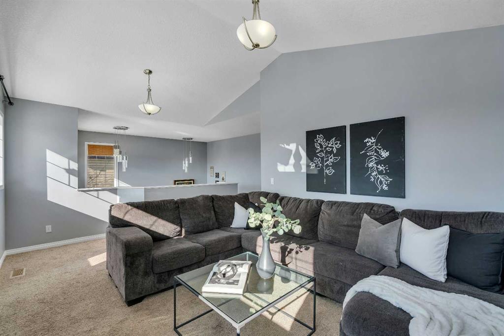 Freshly painted and fully finished, this 5 bedroom home offers over 3,300 sq ft of finished living space designed for large and growing families. Quiet cul-de-sac placement and an extra deep backyard add privacy and room to play, while recent upgrades including a brand new furnace, new hot water tank and central air conditioning ensure year-round comfort and peace of mind. A soaring open-to-above foyer creates a memorable first impression, anchored by hardwood flooring and a bright open layout. Culinary adventures are inspired in the kitchen with stainless steel appliances, abundant cabinetry, a corner pantry for extra storage and a huge island with raised breakfast bar seating, ideal for casual gatherings. The adjacent dining area opens directly to the rear deck for easy indoor/outdoor living. A welcoming living room invites relaxation in front of the gas fireplace flanked by built-ins, while French doors lead to a private den that makes an excellent office or study zone. A tucked-away powder room completes the main level. Cascading lighting guides you upstairs to a vaulted bonus room, an airy retreat perfect for movie nights or quiet family time. The primary suite delivers a true owner’s refuge with a walk-in closet and a 5-piece ensuite featuring dual sinks, a deep soaker tub and a separate shower. 2 additional bright bedrooms, one with a walk-in closet, share a well-appointed 4-piece bathroom. The finished basement expands your possibilities with a massive rec room for games and media and a flex space for hobbies or play. Also on this level are 2 more bedrooms and a stylish 5-piece bathroom with dual sinks, ideal for shared use. Outside, the extra deep backyard offers endless room for children, pets and gardening alongside a spacious deck for barbecuing and unwinding. A double attached garage adds convenience and storage. Walk to St Veronica School and the nearby pathways and playgrounds, with Coopers Crossing Town Promenade only 3 minutes away for groceries, dining, coffee and daily essentials. A rare blend of space, comfort, mechanical upgrades and an ideal family-friendly location!