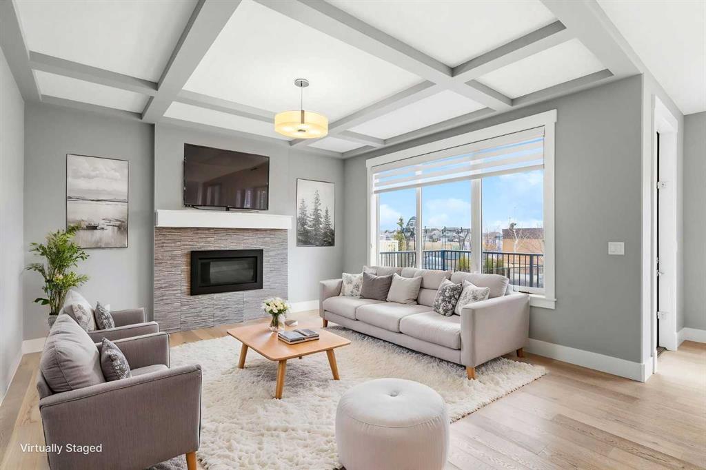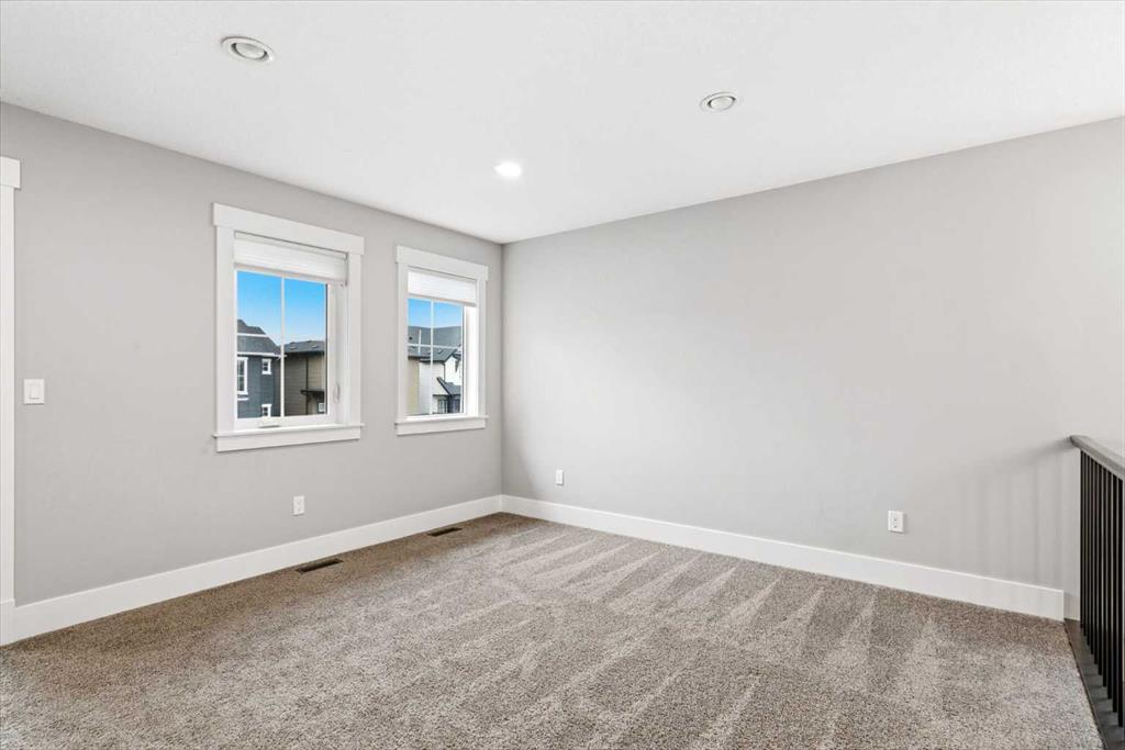 *OPEN HOUSE SUNDAY APRIL 26 AT 2:00PM - 4:00PM* Welcome to a home that feels elevated from the very first step inside. Custom built by Harder Homes, this beautifully crafted two storey in Coopers Crossing offers over 3000 square feet of thoughtfully developed living space. With its distinctive exterior, sloped roof lines, and MASSIVE GARAGE, the curb appeal makes a strong first impression. Inside, the sense of space and intention continues. The main floor unfolds with a grand foyer that opens into a warm and welcoming great room, anchored by coffered ceilings and a GAS FIREPLACE that invites slow evenings and enjoyable gatherings. ENGINEERED HARDWOOD floors carry throughout, paired with 9' CEILINGS and 8' DOORS that add both height and presence. The kitchen is truly the heart of the home. Beautifully finished with ceiling height cabinetry, stainless steel appliances, and a generous center island, it offers exceptional storage and space to cook, host, & connect. The dining area sits just off the kitchen, filled with natural light and perfectly positioned for everyday meals or weekend entertaining. A dedicated MAIN FLOOR OFFICE creates a quiet place to work or study, tucked away yet still connected to the rhythm of the home. The mudroom leading to the garage is complete with built-ins and a charming barn door, keeping busy days organized. Every detail feels considered, right down to the Nest thermostat and the added AIR CONDITIONING (2022) for year round comfort. Upstairs, the layout is as functional as it is spacious. The primary suite feels like a true retreat, with room to unwind, a large WALK-IN CLOSET with custom built-ins, and a luxurious 5 piece ensuite featuring dual sinks, a deep soaker tub, & a spacious shower. Two additional bedrooms are generously sized and share a well appointed 5 piece bath with double sinks, ideal for growing families. The BONUS ROOM offers flexibility for movie nights or play space, complete with a rough in for speakers to elevate your home entertainment experience. An upgraded railing adds a refined architectural touch as you move between levels. The fully developed basement extends the living space even further, with a massive recreation and media area that easily adapts to your needs. A 4th bedroom, separate den and full 4 piece bathroom make it perfect for guests, teens, or multi generational living. Backing directly onto a school, the backyard setting offers both privacy and convenience, with no rear neighbours and quick access to green space and community pathways. Living in Coopers Crossing means being part of one of Airdrie’s most sought after neighbourhoods, known for parks, schools, and a strong sense of community. It is the kind of place where families put down roots and stay awhile. Book your private showing and experience it for yourself! *Some photos have been virtually staged*