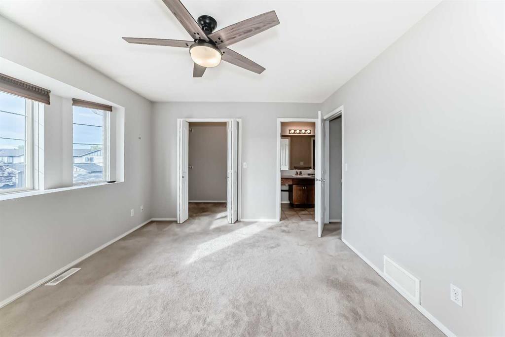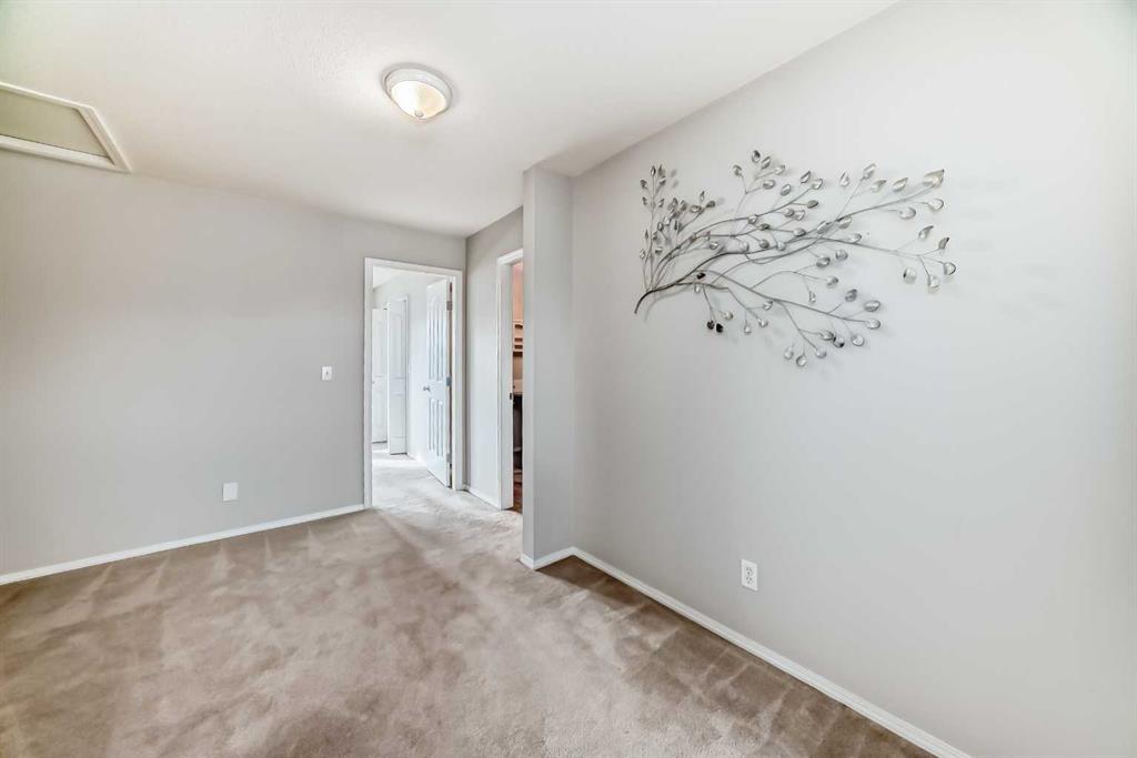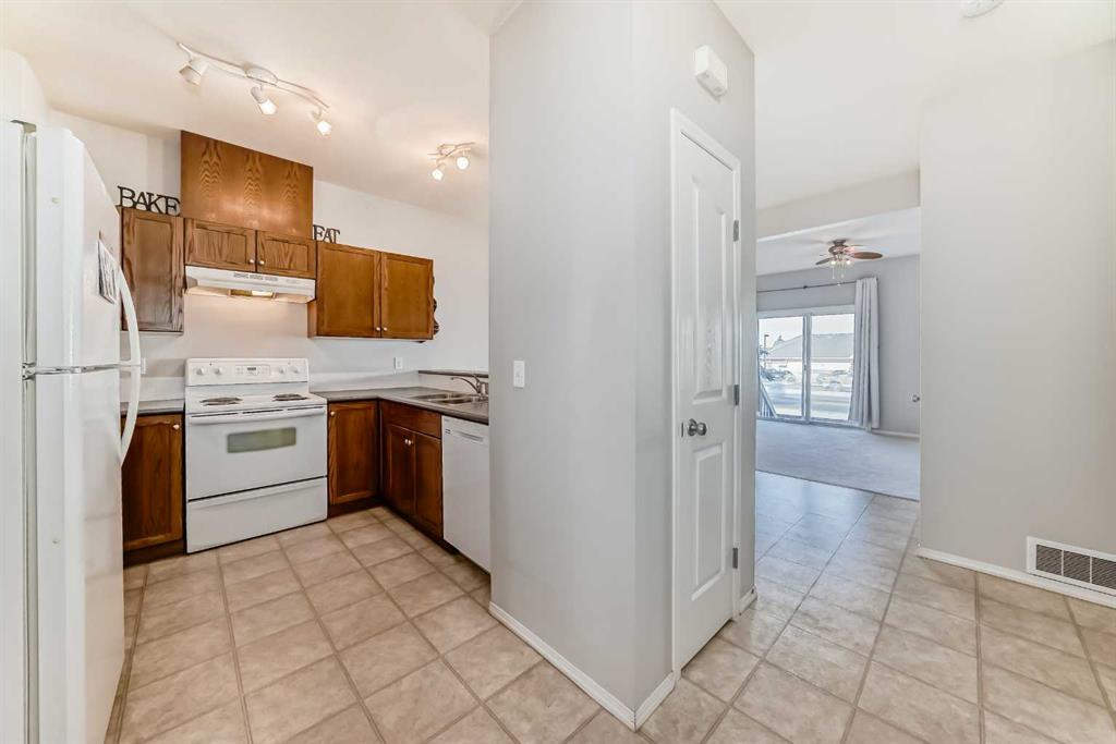 This beautifully maintained 2-storey townhouse offers over 1,200 sq ft of warm, inviting space at a price point that makes homeownership accessible—ideal for first-time buyers ready to stop renting or investors seeking solid value. Step inside to discover a bright, open layout flooded with natural light from large windows and PATIO DOORS that create an airy, welcoming atmosphere. The spacious living room features BRAND NEW CARPET underfoot, a cozy GAS FIREPLACE framed by a custom BUILT-IN WALL UNIT. The kitchen is designed for real life—AMPLE CABINETRY, full-sized appliances, and a breakfast bar that makes morning coffee or meal prep feel effortless. The separate dining area is perfect for family dinners, game nights, or those moments that matter most. Upstairs, three generously sized bedrooms await, including a bright primary suite with a walk-in closet that offers more space than you'd expect and convenient Jack-and-Jill access to the 4-piece bathroom. A versatile LOFT-STYLE NOOK adds flexibility—your home office, reading corner, or creative space. The unfinished basement is a blank canvas with laundry, WATER SOFTENER, rough-in plumbing for a future bathroom, and plenty of potential for an extra bedroom, recreation area, or storage to suit your lifestyle. With an ATTACHED SINGLE GARAGE and full driveway pad, parking is never a concern. Plus, you're steps from Airdrie's pathway system, Williamstown Nose Creek Nature Preserve, playgrounds, Airdrie BMX Park, Woodside Golf Course, shopping, and dining—everything you need, right at your doorstep. This is your opportunity to own an affordable, well-cared-for home in Willowbrook with room to make it your own.