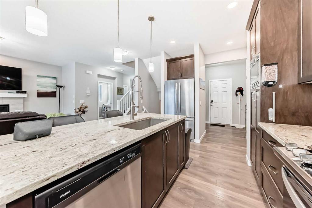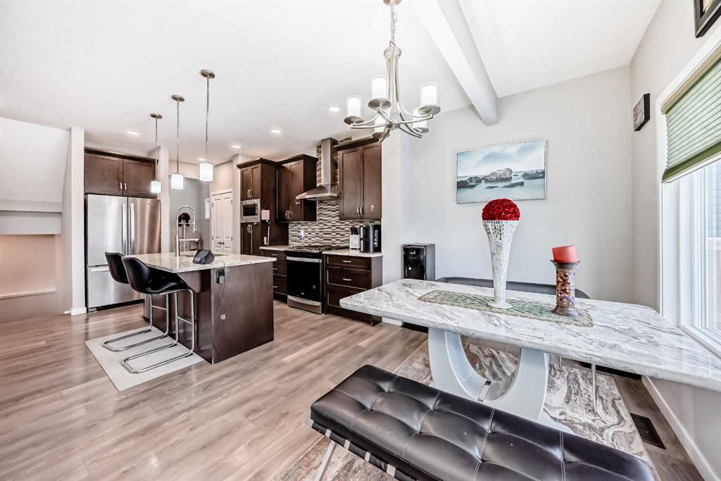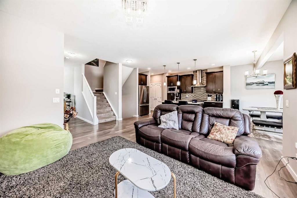 Welcome to this beautifully designed 2 story home with AC is located on a large corner lot in Midtown, Airdrie, offering spacious living and a functional layout perfect for growing families. The main level features an inviting open-concept design, complemented by stylish LVP flooring throughout. The kitchen is equipped with stainless steel appliances, ample cabinetry, and flows seamlessly into the dining area ideal for entertaining. Relax in the bright living room centered around a cozy gas fireplace, and enjoy the convenience of a 2-piece powder room and a large mudroom with plenty of storage. Completing the main level is a double attached garage for added comfort and practicality. Downstairs, the fully finished basement offers incredible versatility with a spacious bonus room, bedroom, an additional office/den, and a modern 3-piece bathroom perfect for guests, a home gym, or multi-generational living. Upstairs, you’ll find two generously sized bedrooms, a convenient laundry room, and an additional bonus room ideal for a play area or second living space. The primary suite is a true retreat featuring a walk-in closet and a luxurious 5-piece ensuite bathroom. Located in the family friendly community of Midtown, close to parks, pathways, schools, and shopping this home offers exceptional value, comfort, and space in one of Airdrie’s most desirable neighbourhoods.