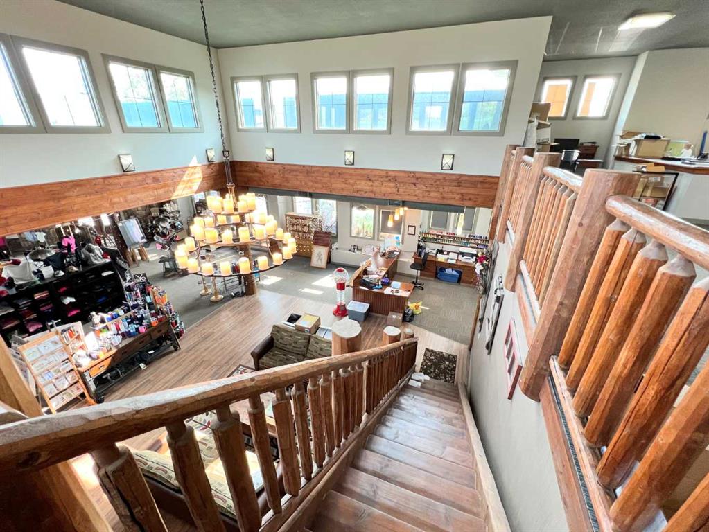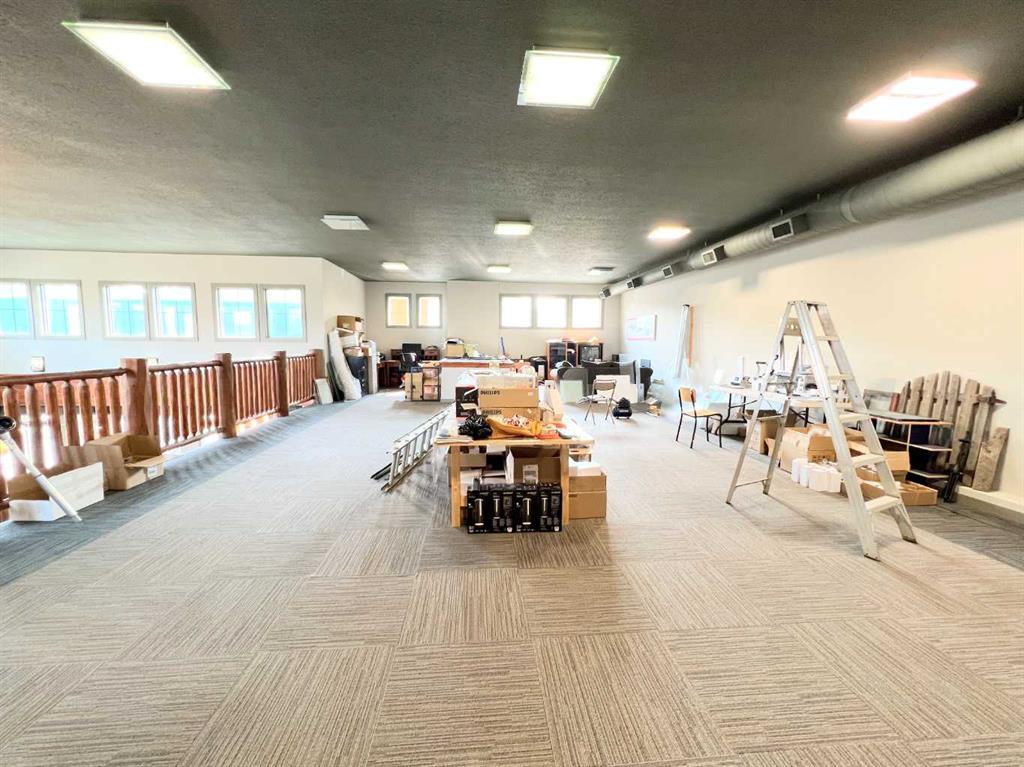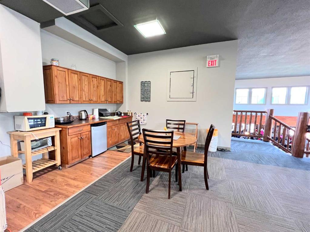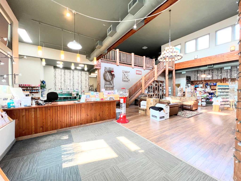 One of Athabasca's signature retail/office buildings on two corner lots with Highway 2 frontage. Offering an elevated customer experience, no expense was spared on the details of this development. 12 ft high ceilings throughout, plus additional vault in Unit A to the open second level. Unit A is just over 4700 sq ft on the main level with a 1400 sq ft mezzanine. Additional enclosed room with enhanced ventilation, currently used as a printing room. Mezzanine with kitchen is wide open to the main level, showcasing the custom built solid log staircase and railing. Both Units B and C are just under 1000 sq ft, fully open and customizable spaces, with self contained kitchen and bathroom. Prime location on main street, spacious side boardwalk. Low maintenance building has a metal roof and hardy board siding, with river rock trim. In-floor heat throughout.