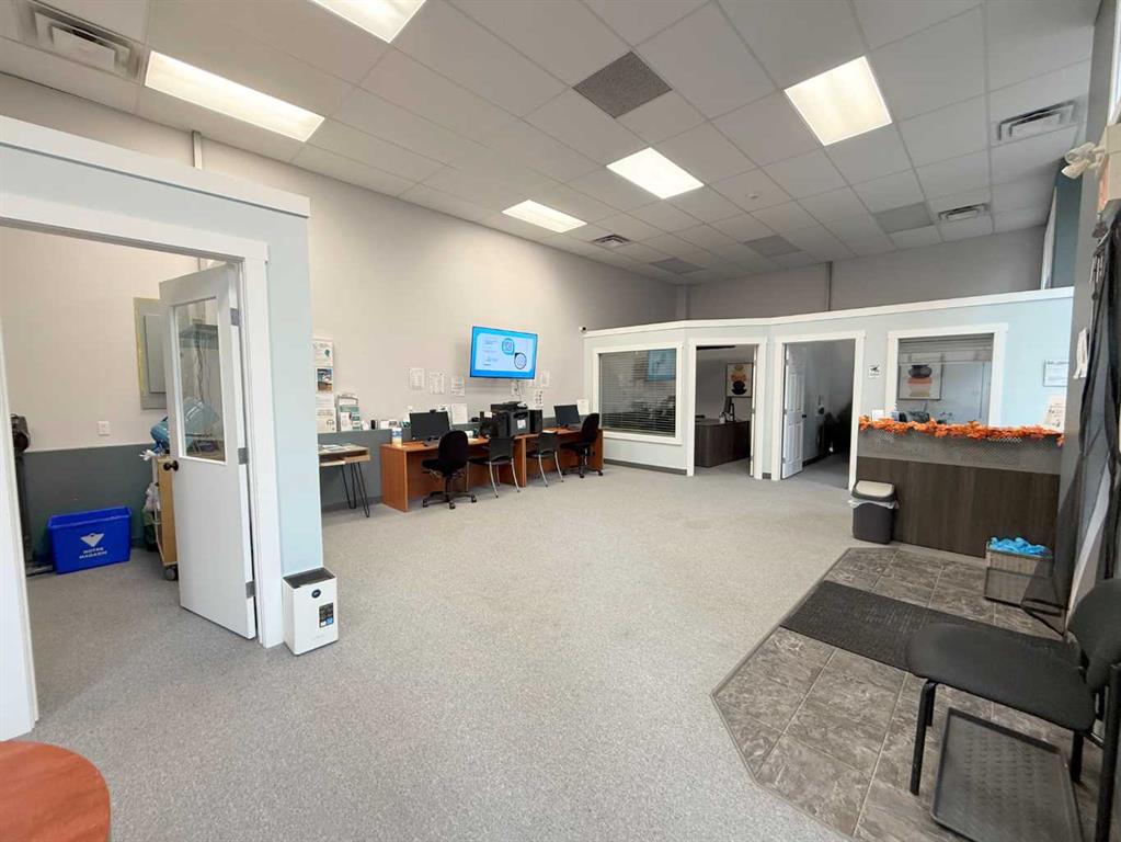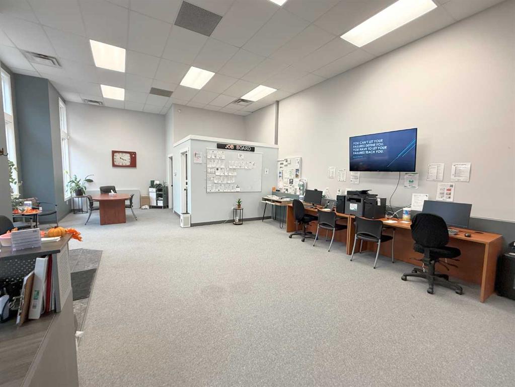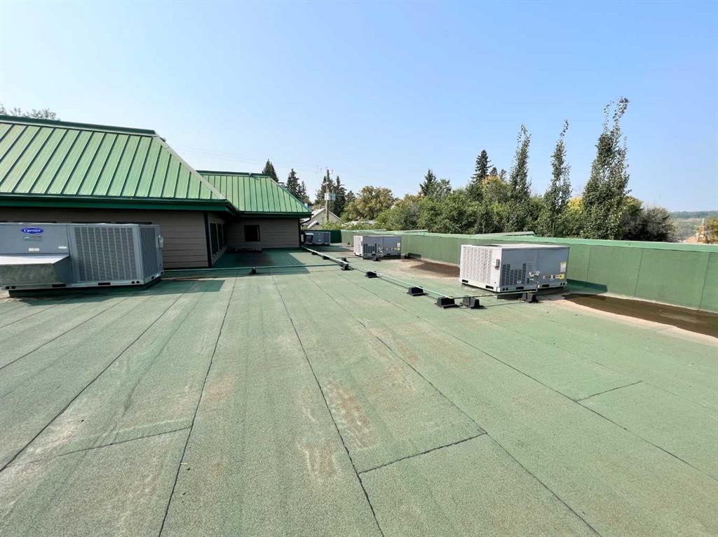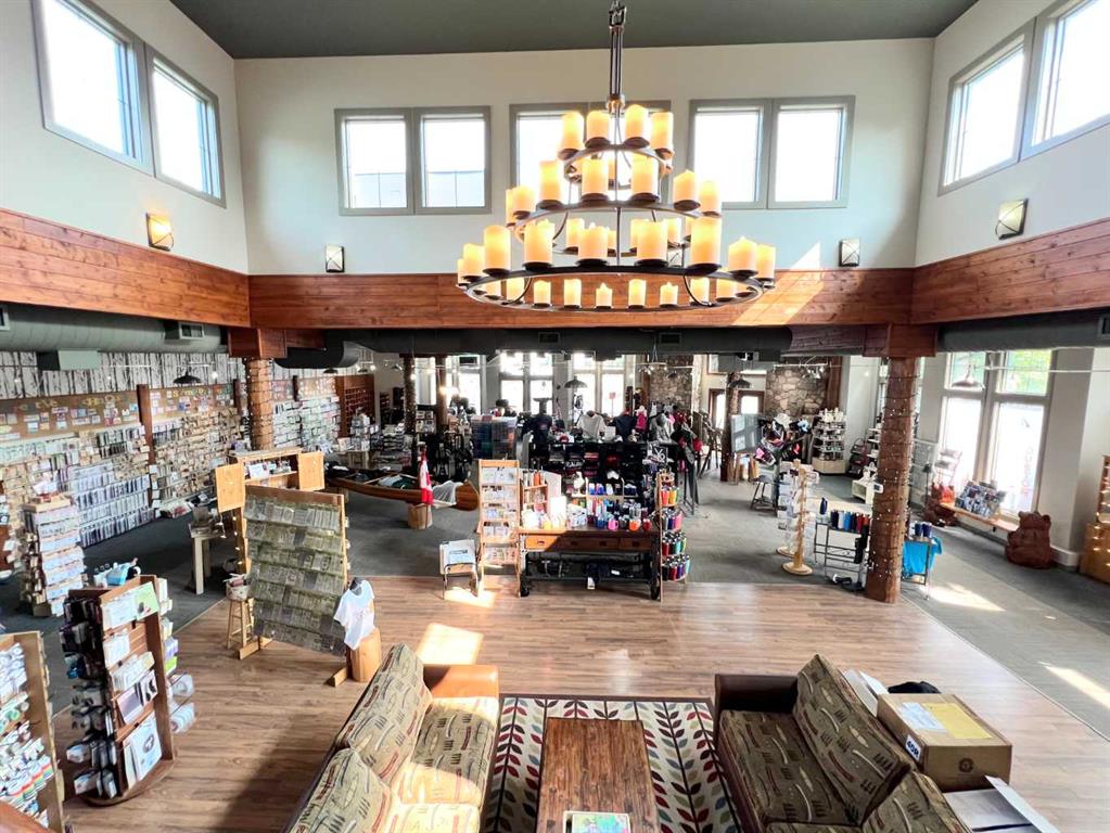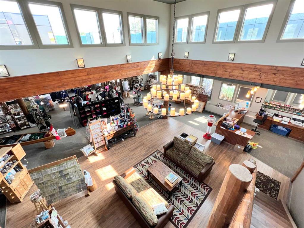 One of Athabasca's signature retail/office buildings on two corner lots with Highway 2 frontage. Offering an elevated customer experience, no expense was spared on the details of this development. 12 ft high ceilings throughout, plus additional vault in Unit A to the open second level. Unit A is just over 4700 sq ft on the main level with a 1400 sq ft mezzanine. Additional enclosed room with enhanced ventilation, currently used as a printing room. Mezzanine with kitchen is wide open to the main level, showcasing the custom built solid log staircase and railing. Both Units B and C are just under 1000 sq ft, fully open and customizable spaces, with self contained kitchen and bathroom. Prime location on main street, spacious side boardwalk. Low maintenance building has a metal roof and hardy board siding, with river rock trim. In-floor heat throughout.