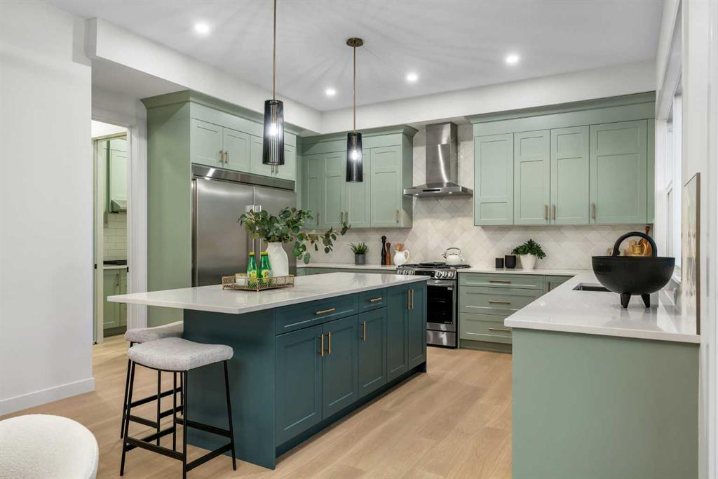 *Watch the Video* Open House: February 14th & 15th: 11am - 2pm. A luxury estate home that truly checks every box. This stunning showpiece by Aspen Creek Designer Homes, Alberta's one of Alberta's premier luxury builder showcases exceptional craftsmanship & stellar elevated finishings. Located in the growing estate community of Goldwyn, this home offers the charm of prairie estate living with breathtaking pond, downtown, & mountain views — Perfectly situated on a quiet cul-de-sac & no neighbours behind. This gorgeous home redefines what elevated high-end living should look like. Offering over 4,200 SQFT of functional living space, this residence is designed to impress at every turn. Triple Garage | 5 Bedrooms + Main floor den | 5 Full Bathrooms | South Backyard | Pond Views| Excellent Finishings | Stunning Chef's Kitchen | Spice Kitchen | Spacious Backyard | 3 Spacious Bedrooms up with Ensuites | Bonus Room with Private Balcony | Finished Walkup 2 Bedrooms Basement | Hardie Board Siding The expansive triple garage along with aggregate driveway create a striking first impression. Step through the grand double-door entrance into a soaring open-to-below foyer filled with natural light. The main floor features 10-foot ceilings, 9 Ft doors, oversized windows, & a spacious living room with an elegant tiled fireplace detailing. A magazine-worthy, state-of-the-art chef’s kitchen offering that aura your guests are going to love - timeless cabinetry with gold hardware, glossy backsplash, top-of-the-line appliances including an oversized refrigerator, gas cooktop, chimney hood fan, & built-in microwave. A massive centre island with blue cabinetry provides the perfect gathering space, while the fully equipped spice kitchen adds both style & function. A versatile main floor den with a French glass door sits beside an upgraded full bathroom— ideal for guests, multigenerational living, or a private home office. A generous mudroom offering ample space for a secondary home office. Walking upstairs along the grand wide staircase with designer railing, you'll notice the 9 FT ceilings & 8ft doors followed by a sun-filled central bonus room opens onto a private balcony overlooking the pond. Three spacious upstairs bedrooms each feature their own private ensuites — no compromises whatsoever. The primary suite is a true retreat, enhanced by extra windows, a huge walk-in closet, & a luxurious spa-like ensuite complete with a soaker tub, glass shower with upgraded tile surround, dual sinks, & a private toilet. The two additional south-facing bedrooms enjoy stunning pond views & upgraded attached bathrooms, offering comfort & privacy for family or guests. A massive laundry room with cabinets and tiles Step outside to a huge south-facing backyard that feels like a private summer retreat - ideal for entertaining & relaxing with your family. Dual Furnace Zoning & 72 Gal HWT adding to the efficiency. This home presents an extraordinary opportunity to own a modern home with astonishing views.