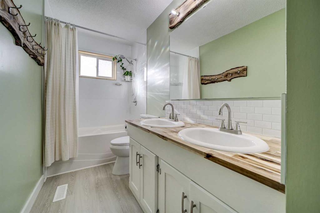 Four bedrooms under $500,000 in the Crowsnest Pass is genuinely hard to find, and this bi-level in Bellevue delivers exactly that. With 1,036 square feet on the main level and an additional 900 square feet below, there is real room here for a growing family to spread out, settle in, and make their own. The living room centres around a floor-to-ceiling stone wood-burning fireplace that gives the space an unmistakable warmth and character you simply cannot replicate. Three bedrooms sit on the main floor alongside a renovated five-piece bathroom that is one of the home's true highlights. The double vanity, live-edge wood countertop, and subway tile backsplash bring a thoughtful, finished feel to a space that gets used every single day. Downstairs, a fourth bedroom and a renovated three-piece bathroom with a corner shower add both function and privacy, making the lower level a natural fit for older kids, extended family, or overnight guests. A generous games room anchors the basement, and an additional flex space opens the door to a fifth bedroom, a home office, or whatever the next chapter of your life actually calls for. Outside, the fully fenced yard gives kids and pets room to run. A deck off the back of the home creates an easy outdoor living space, garden beds are ready for the growing season, and a storage shed keeps everything organized. Back lane access also leaves room for a future garage. Crowsnest Pass has seen steady growth over the past several years, with rising property values and increasing investment in the community reflecting strong demand from people who want to live differently. Bellevue sits quietly within that momentum, close to schools, parks, the local arena, and a community trail system that connects the entire Pass. Skiing at Pass Powderkeg, Castle Mountain, and Fernie are all within reach for families who live for the mountains as much as they live in them. This home has been loved by a young family and is ready for the next one.