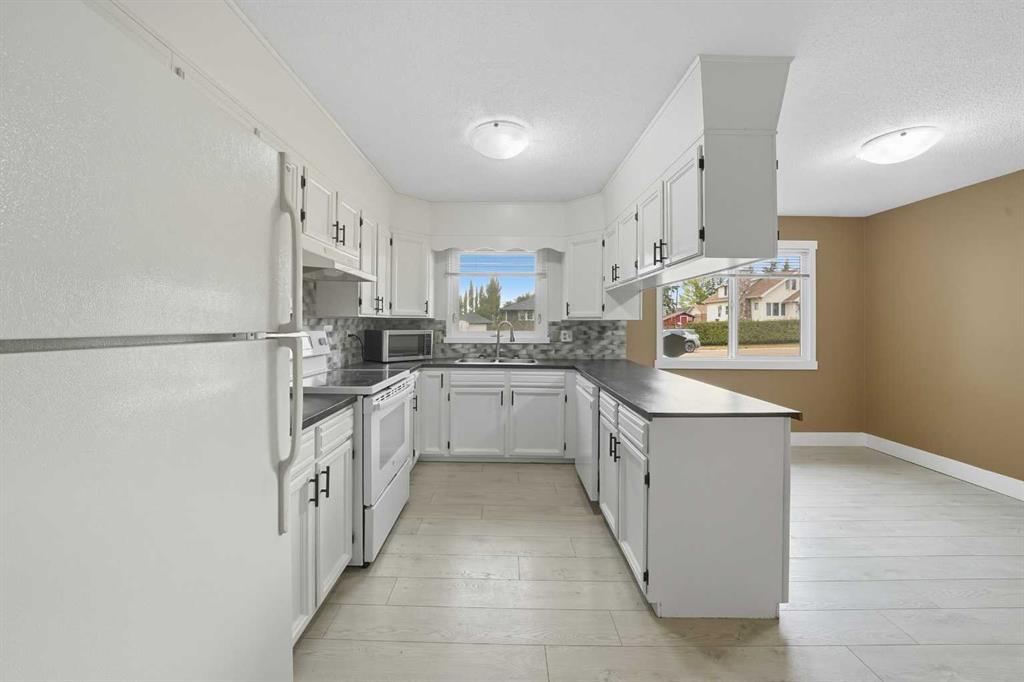 Close to Bentley School, Playground, Park, renowned Farmer’s Market, Boutique Shopping, Cafés, Fire Hall, Gull Lake & aw-inspiring views towards the local Ski Hill; open doors at your new home. Refreshed with updated trim, vinyl plank flooring and gas fireplace, the large living room brings coziness and function. Vinyl windows continue into the renovated kitchen & dining room space featuring newer appliances, ample cabinet storage and naturally lit counter space; perfect for prepping those delicious home cooked meals. Whether you’re searching for an affordable starter home or investment property, this sought after floor plan boasts primary bedroom with large closet, second bedroom, full 4 pc bathroom, storage and laundry all on the main floor. Downstairs compliments the character of the home with large rec room, two more bedrooms, 3 pc bathroom with walk in shower and utility room. Enjoy long term peace of mind as it checks all the boxes; brand new shingles, 100 amp service, copper plumbing, south facing backyard with garage - an overall well built bungalow in a friendly community awaiting its new owners!