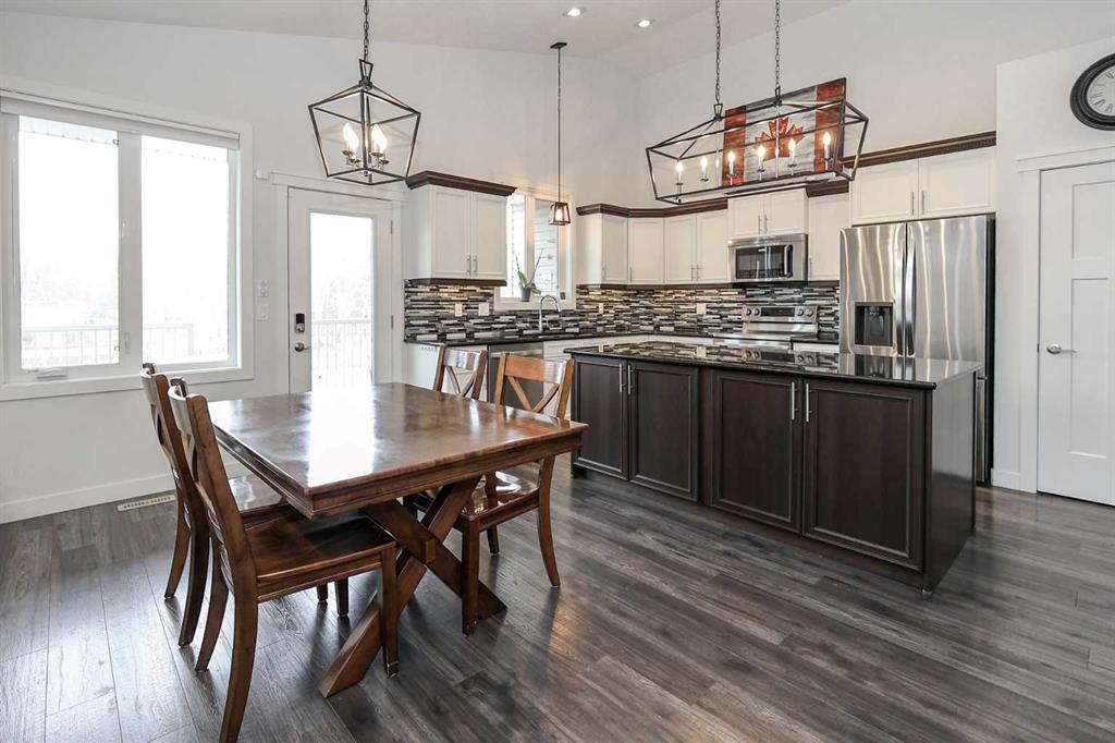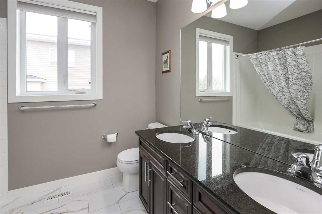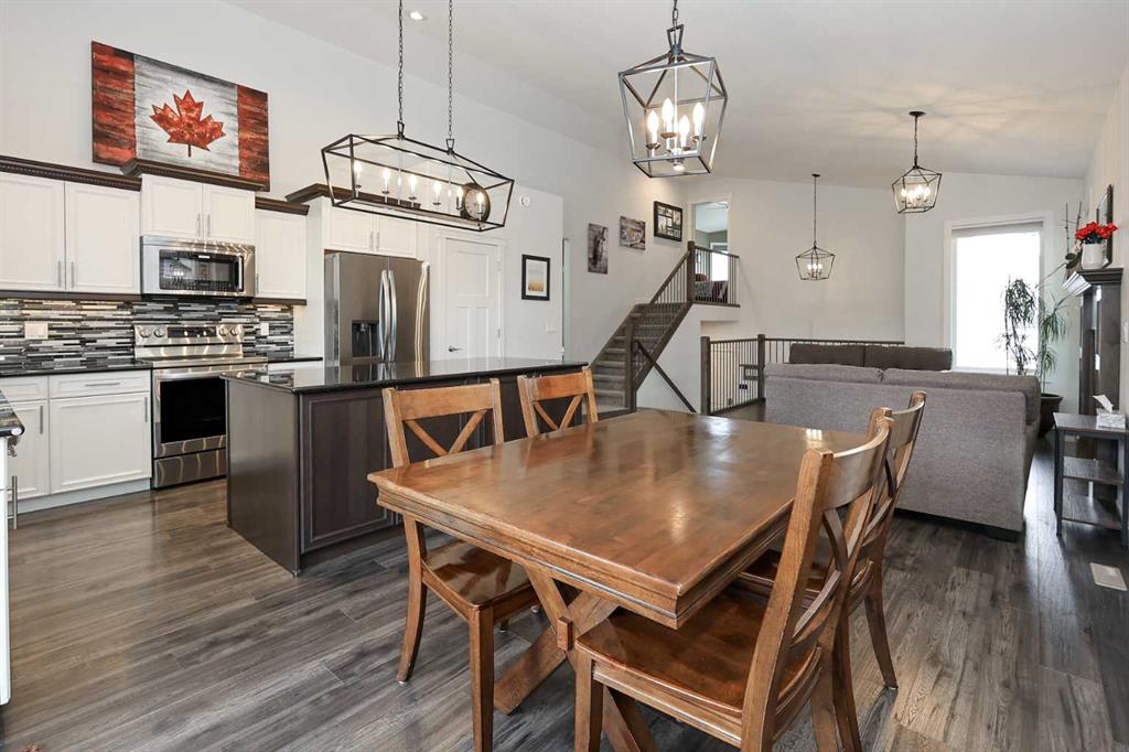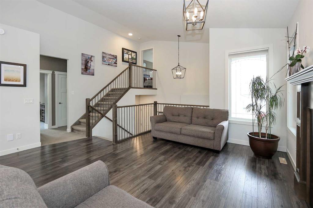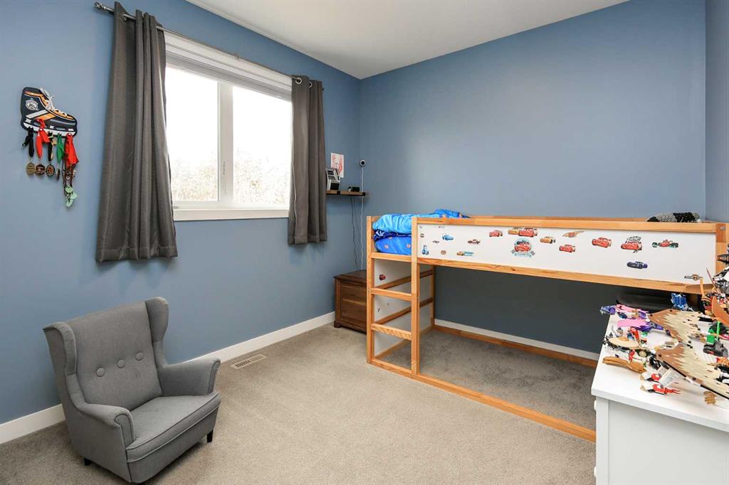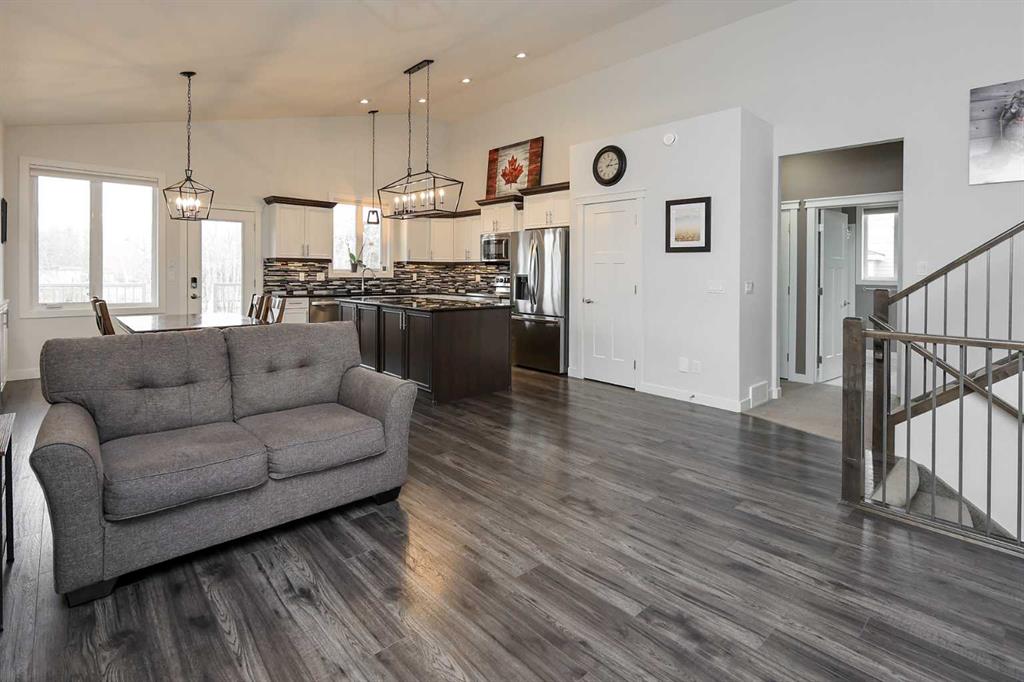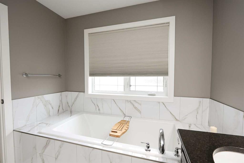FULLY DEVELOPED 5 BEDROOM (4 up, 1 down), 3 BATH MODIFIED BI-LEVEL ~ HEATED TRIPLE ATTACHED GARAGE ~ NO NEIGHBOURS BEHIND ~ Some upgrades include; Central air conditioning, central vacuum, 2 sets of laundry hook-ups ~ Covered front entry leads to a spacious tile foyer with a mirrored closet and high ceilings that open to the upper level ~ Open concept main floor layout is complemented by soaring vaulted ceilings and hardwood flooring ~ The living room is centred by a cozy gas fireplace with a mantle above ~ Host large gatherings with ease in the spacious dining room with built in cabinets plus garden door access to the covered deck with a BBQ gas line, duradek finish and enclosed storage space below ~ The kitchen offers an abundance of two toned cabinets with crown moulding and pull out drawers, endless quartz counter tops including an island with an eating bar, full tile backsplash, window above the sink, and a wall pantry ~ 3 main floor bedrooms are all a generous size with ample closet space ~ 5 piece main bathroom has tile floors and dual sinks with quartz countertops ~ Main floor laundry hook-ups just off the bedrooms doubles as an oversized linen closet ~ Open staircase overlooks the main floor below and leads to the private primary bedroom with plenty of space for a king size bed and sitting area, a huge walk-in closet and a spa-like 5 piece ensuite with a 6' soaker tub, walk-in shower, and dual sinks with quartz countertops ~ The fully finished basement has high ceilings, large above grade windows and operational in-floor heating ~ The spacious family room with rows of recessed lighting has tons of space ~ Sliding barn door leads to a flex space (currently being used as a home gym) ~ 5th bedroom can easily accommodate a king size bed plus multiple pieces of furniture ~ 3 piece bathroom has a walk-in shower with extensive tile ~ Laundry located in it's own room has built in cabinets, a sink, folding counter and storage closet ~ HEATED triple attached garage is insulated, finished with drywall, has two overhead doors and a convenient man door to the backyard ~ The backyard is fully fenced, with no neighbours behind, has tons of yard space and secure storage below the deck ~ Excellent location; tucked in a family friendly cul-de-sac with easy access to schools, parks, playgrounds, walking trails, and all other amenities close by ~ Pride of ownership is evident in this well cared for home!