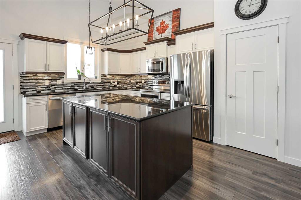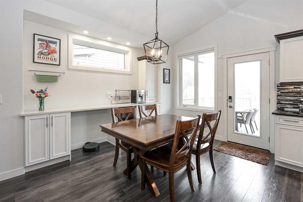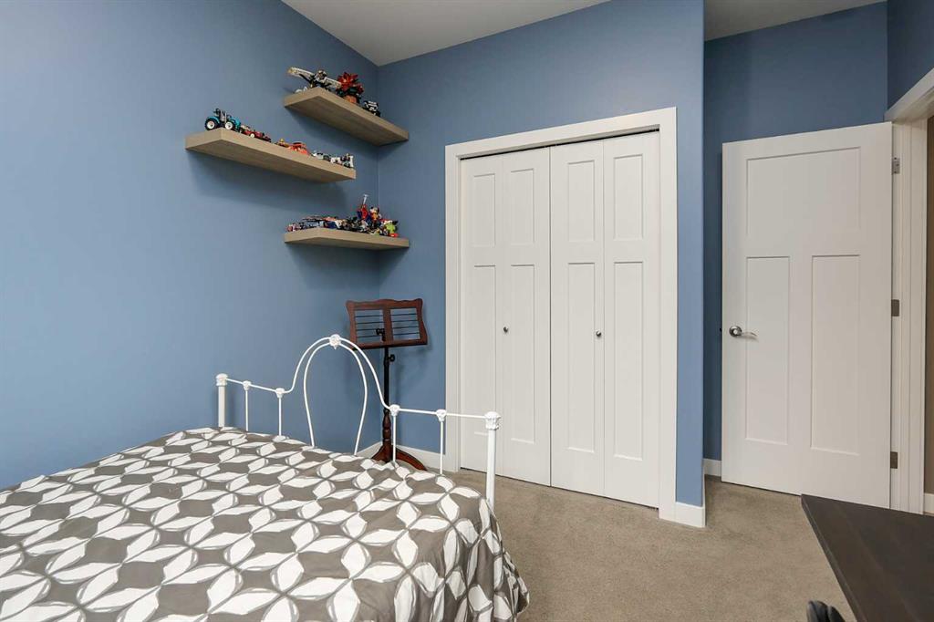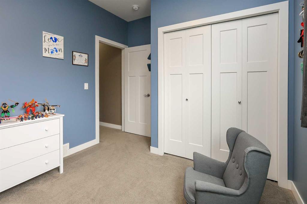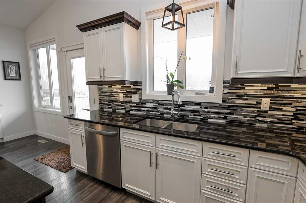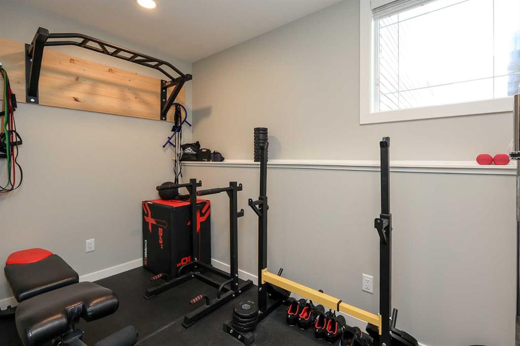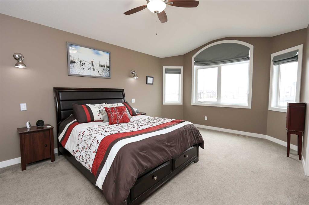 FULLY DEVELOPED 5 BEDROOM (4 up, 1 down), 3 BATH MODIFIED BI-LEVEL ~ HEATED TRIPLE ATTACHED GARAGE ~ NO NEIGHBOURS BEHIND ~ Some upgrades include; Central air conditioning, central vacuum, 2 sets of laundry hook-ups ~ Covered front entry leads to a spacious tile foyer with a mirrored closet and high ceilings that open to the upper level ~ Open concept main floor layout is complemented by soaring vaulted ceilings and hardwood flooring ~ The living room is centred by a cozy gas fireplace with a mantle above ~ Host large gatherings with ease in the spacious dining room with built in cabinets plus garden door access to the covered deck with a BBQ gas line, duradek finish and enclosed storage space below ~ The kitchen offers an abundance of two toned cabinets with crown moulding and pull out drawers, endless quartz counter tops including an island with an eating bar, full tile backsplash, window above the sink, and a wall pantry ~ 3 main floor bedrooms are all a generous size with ample closet space ~ 5 piece main bathroom has tile floors and dual sinks with quartz countertops ~ Main floor laundry hook-ups just off the bedrooms doubles as an oversized linen closet ~ Open staircase overlooks the main floor below and leads to the private primary bedroom with plenty of space for a king size bed and sitting area, a huge walk-in closet and a spa-like 5 piece ensuite with a 6' soaker tub, walk-in shower, and dual sinks with quartz countertops ~ The fully finished basement has high ceilings, large above grade windows and operational in-floor heating ~ The spacious family room with rows of recessed lighting has tons of space ~ Sliding barn door leads to a flex space (currently being used as a home gym) ~ 5th bedroom can easily accommodate a king size bed plus multiple pieces of furniture ~ 3 piece bathroom has a walk-in shower with extensive tile ~ Laundry located in it's own room has built in cabinets, a sink, folding counter and storage closet ~ HEATED triple attached garage is insulated, finished with drywall, has two overhead doors and a convenient man door to the backyard ~ The backyard is fully fenced, with no neighbours behind, has tons of yard space and secure storage below the deck ~ Excellent location; tucked in a family friendly cul-de-sac with easy access to schools, parks, playgrounds, walking trails, and all other amenities close by ~ Pride of ownership is evident in this well cared for home!