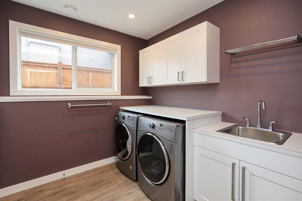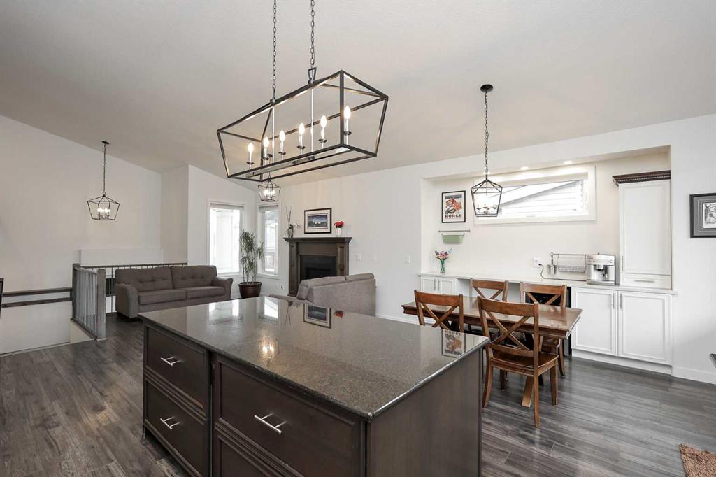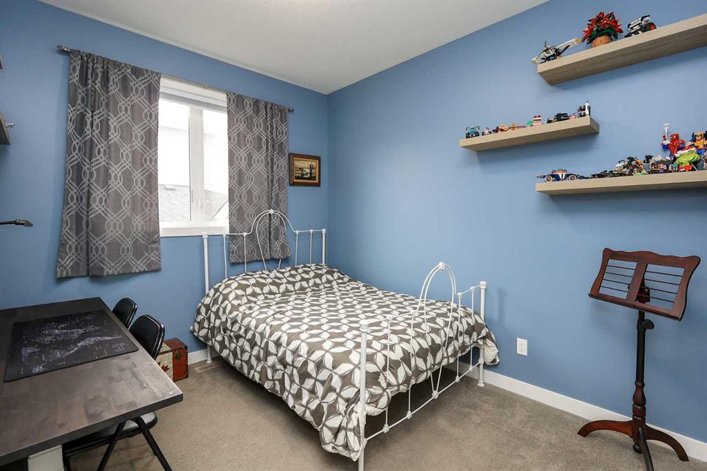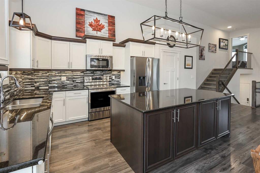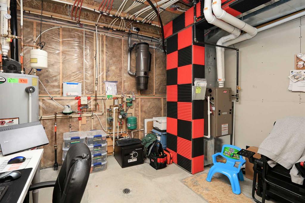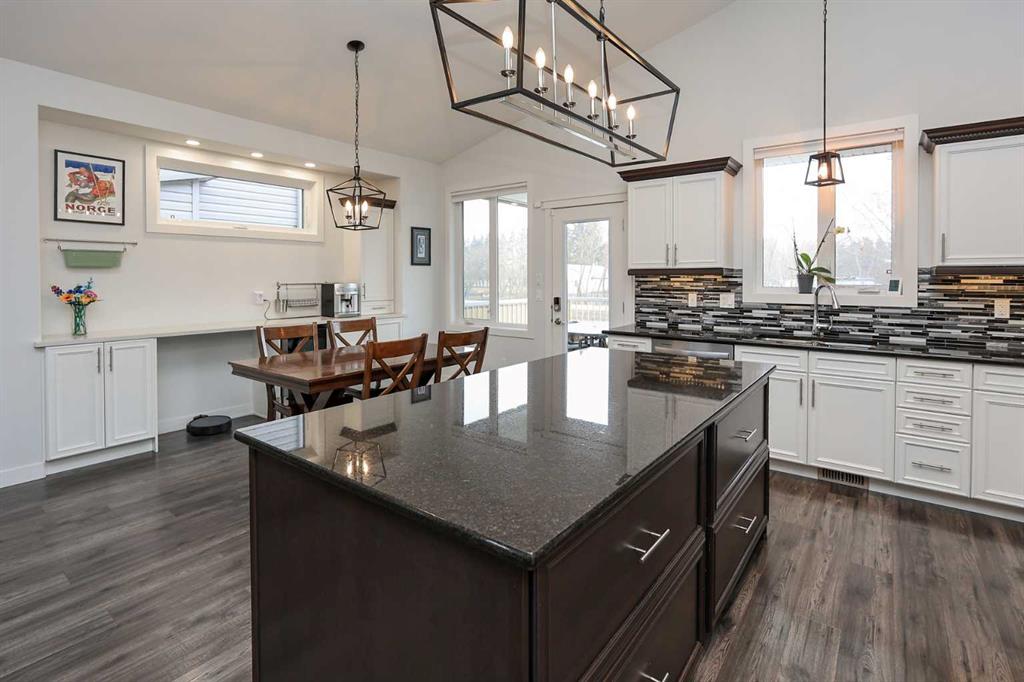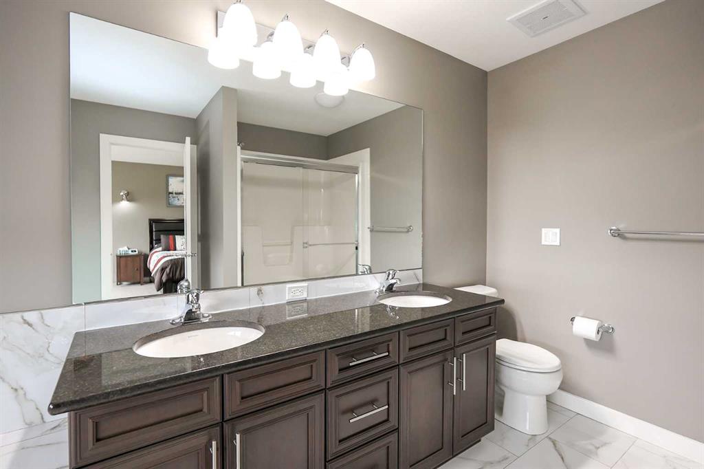 FULLY DEVELOPED 5 BEDROOM (4 up, 1 down), 3 BATH MODIFIED BI-LEVEL ~ HEATED TRIPLE ATTACHED GARAGE ~ NO NEIGHBOURS BEHIND ~ Some upgrades include; Central air conditioning, central vacuum, 2 sets of laundry hook-ups ~ Covered front entry leads to a spacious tile foyer with a mirrored closet and high ceilings that open to the upper level ~ Open concept main floor layout is complemented by soaring vaulted ceilings and hardwood flooring ~ The living room is centred by a cozy gas fireplace with a mantle above ~ Host large gatherings with ease in the spacious dining room with built in cabinets plus garden door access to the covered deck with a BBQ gas line, duradek finish and enclosed storage space below ~ The kitchen offers an abundance of two toned cabinets with crown moulding and pull out drawers, endless quartz counter tops including an island with an eating bar, full tile backsplash, window above the sink, and a wall pantry ~ 3 main floor bedrooms are all a generous size with ample closet space ~ 5 piece main bathroom has tile floors and dual sinks with quartz countertops ~ Main floor laundry hook-ups just off the bedrooms doubles as an oversized linen closet ~ Open staircase overlooks the main floor below and leads to the private primary bedroom with plenty of space for a king size bed and sitting area, a huge walk-in closet and a spa-like 5 piece ensuite with a 6' soaker tub, walk-in shower, and dual sinks with quartz countertops ~ The fully finished basement has high ceilings, large above grade windows and operational in-floor heating ~ The spacious family room with rows of recessed lighting has tons of space ~ Sliding barn door leads to a flex space (currently being used as a home gym) ~ 5th bedroom can easily accommodate a king size bed plus multiple pieces of furniture ~ 3 piece bathroom has a walk-in shower with extensive tile ~ Laundry located in it's own room has built in cabinets, a sink, folding counter and storage closet ~ HEATED triple attached garage is insulated, finished with drywall, has two overhead doors and a convenient man door to the backyard ~ The backyard is fully fenced, with no neighbours behind, has tons of yard space and secure storage below the deck ~ Excellent location; tucked in a family friendly cul-de-sac with easy access to schools, parks, playgrounds, walking trails, and all other amenities close by ~ Pride of ownership is evident in this well cared for home!
