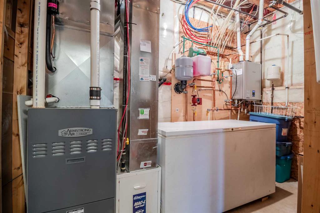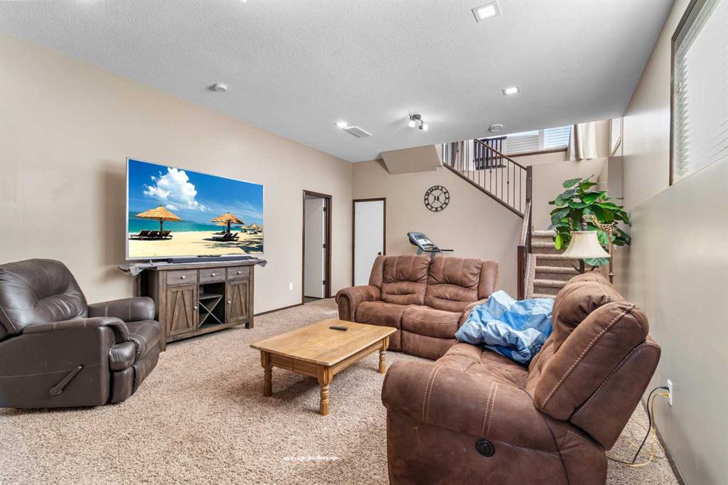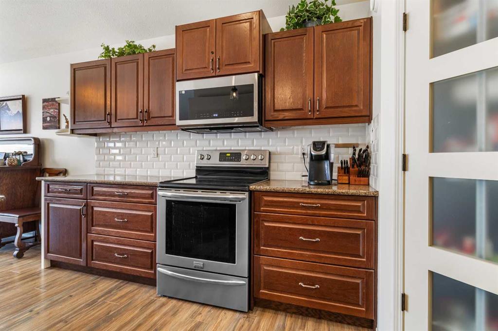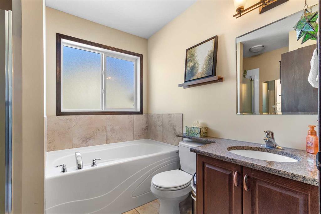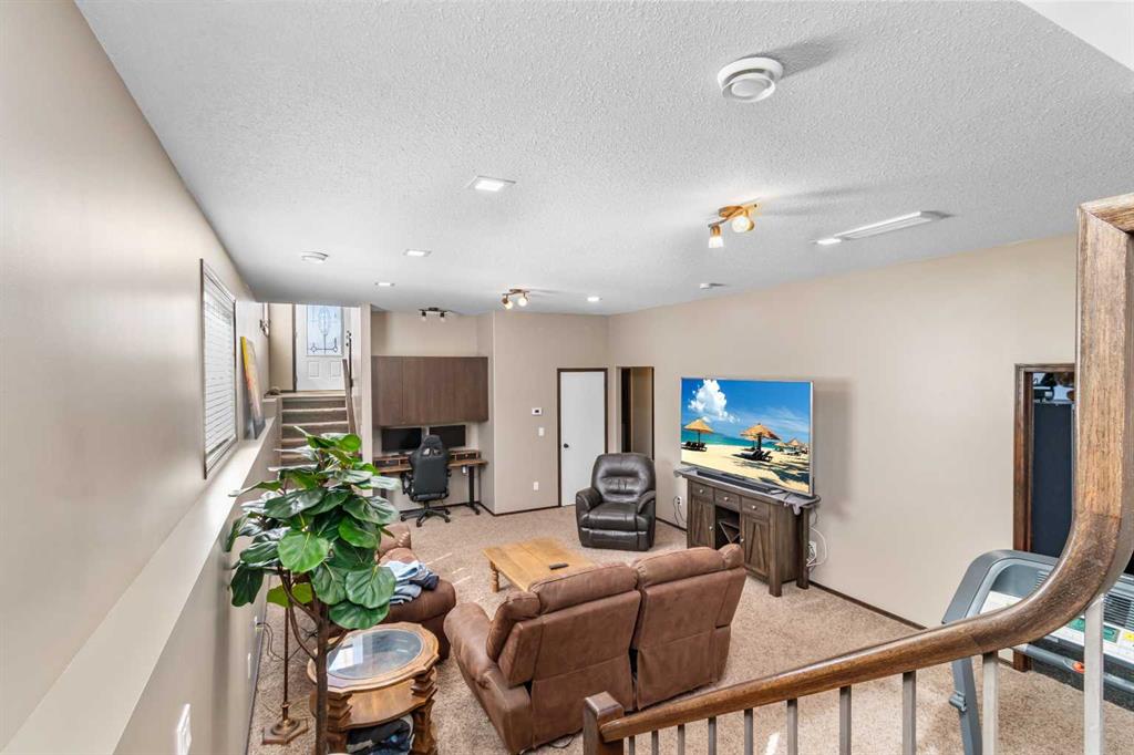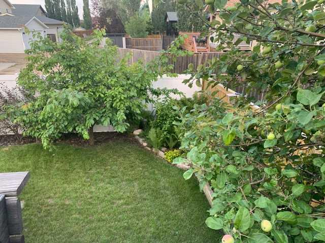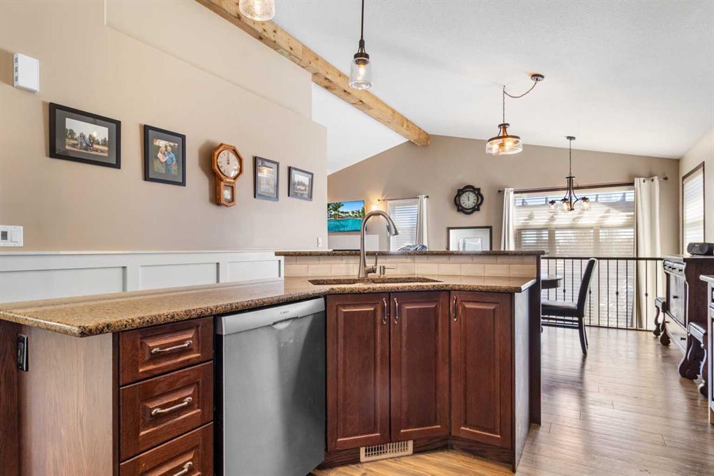 Welcome home to this stunning 5-bedroom, 3-bathroom residence with Triple car heated garage that perfectly blends elegant style with everyday comfort. The open-concept main floor is ideal for entertaining, while dual staircases provide convenient access throughout the home and thoughtful storage solutions. The gorgeous kitchen features granite countertops, soft-close cabinetry, and a massive oversized fridge—all bathed in neutral tones that feel both bright and cozy. Year-round comfort is ensured with in-floor heating and central air conditioning. The real showstopper? Your private backyard oasis. Relax under the covered patio with ambient wired-in lighting, then harvest fresh fruit from your mature plum tree, and two apple trees. This is the entertainers' dream home you've been waiting for. RV/Boat parking in front and back yard **Upgrades include: New garage heater in 2024, Central A/C in 2020, 220v in garage, Newer microwave and dishwasher, new heat exchanger in furnace, new hotwater on demand with separate glycol side for the infloor heat in 2025 & new vinyl fence in the backyard. * Furnace is 2010, roof is 2010