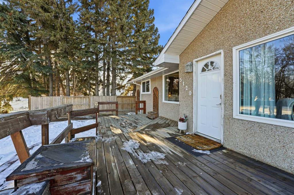 WELCOME TO 5120 WESTWOOD DRIVE! A CHARMING BLACKFALDS BUNGALOW ON A DOUBLE LOT, WITH A HEATED GARAGE & HOT TUB INCLUDED! Whether you’re stepping into homeownership for the first time, simplifying your lifestyle, or adding a solid property to your investment portfolio, this one checks all the boxes. The bright front entry opens into a sunny open-concept living and dining space, where large southeast-facing windows flood the home with natural light. Stylish vinyl plank flooring runs throughout, making everyday living (and cleaning!) a breeze. The galley kitchen offers plenty of cabinet and counter space, a modern tile backsplash, a window over the sink, and sliding patio doors that lead straight to the backyard, perfect for summer BBQs or evening hot-tub soaks. Upstairs, you’ll find two bedrooms and a full 4-piece bathroom, including a spacious primary bedroom with dual closets. A convenient side entrance off the kitchen leads to the fully developed basement, offering great space for a cozy family room, home office, or teenage hangout, plus laundry and utility area. Outside is where this home really shines. Enjoy your morning coffee on the front deck with built-in seating, or unwind in the private, fully fenced backyard complete with a hot tub and outdoor speakers — your own little oasis. Parking is a dream here with a 16’ x 24’ heated garage (220V power), plus RV parking and back-alley access. All of this sits on a fully landscaped lot in a convenient location close to the arena, library, parks, and schools — making it as practical as it is appealing. Recent updates include: • High-efficiency hot water tank (2022) • Furnace (2020) • Vinyl windows in living & dining room (2022) • Primary bedroom window & patio door (2019) A move-in-ready home with lifestyle perks, strong value, and investment potential — this one is easy to love.