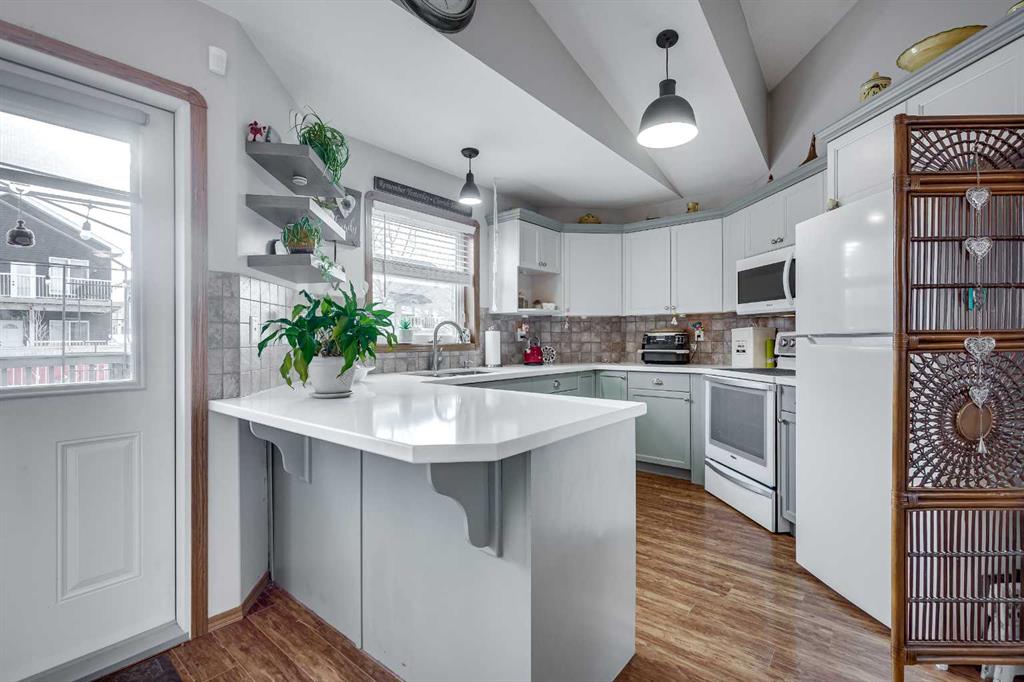 Welcome to this beautifully maintained and thoughtfully updated bungalow in desirable Panorama Estates—an established community offering convenient access to schools, shopping, parks, and scenic walking trails. Inside, the spacious great room impresses with soaring vaulted ceilings, fresh paint, and an abundance of natural light. The fully renovated kitchen is a chef’s delight, featuring upgraded appliances, modern cabinetry, full tile backsplash, quartz countertops, and a functional eating bar. The adjoining dining area connects seamlessly to both kitchen and living spaces, making hosting and everyday living effortless. The primary bedroom serves as a relaxing retreat, complete with a 3-piece ensuite and generous walk-in closet. A second bedroom and a full 4-piece bathroom complete the main level. Downstairs, the bright and inviting basement is ideal for entertaining family and friends with its 8ft ceilings, large windows, expansive family room, oversized bedroom, and an additional 4-piece bathroom. Step outside and enjoy the large south-facing backyard, showcasing a huge deck with a gazebo, meticulous landscaping, a ground-level concrete patio, and a storage shed—perfect for summer gatherings or quiet evenings at home. Additional features include a two-car front parking pad and central air conditioning for year-round comfort.