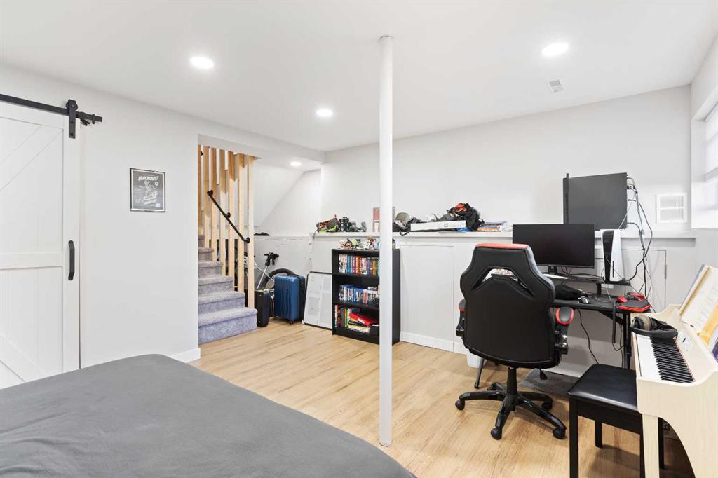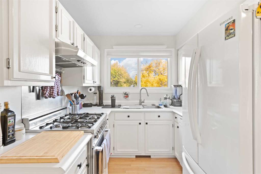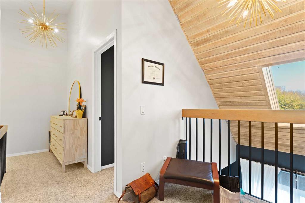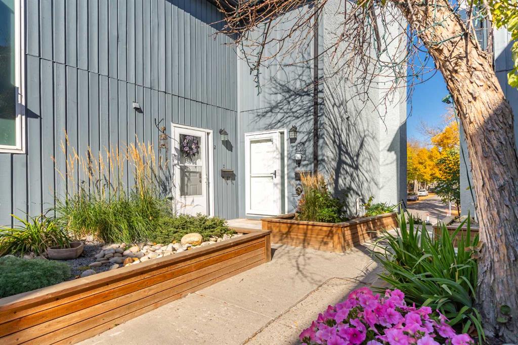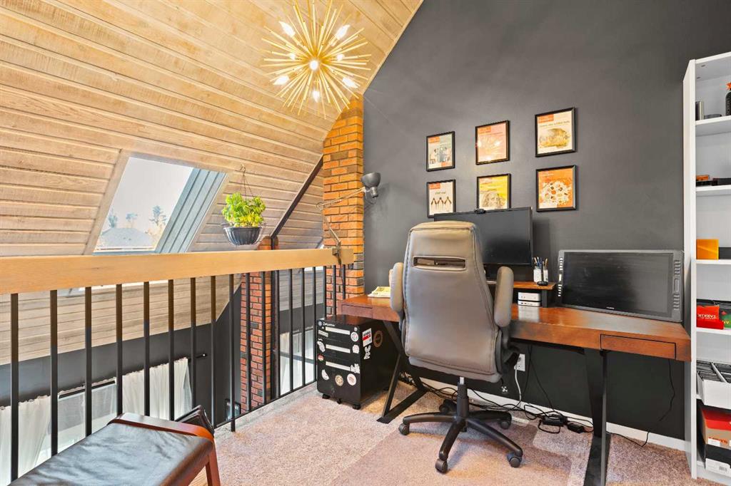 Stylish Inner-City Townhome in Crescent Heights | Vaulted Ceilings | Gas Fireplace | Live in Crescent Heights, one of Calgary’s most desirable inner-city neighbourhoods, just minutes from downtown, the Bow River pathways, and an incredible variety of cafés, restaurants, and local amenities. This architecturally distinctive multi-level townhome is a rare find, with no shared walls in the primary living spaces and no neighbours above or below. Inside, you're greeted by soaring vaulted ceilings, natural light throughout, and a warm mid-century aesthetic with exposed brick, wood detailing, and a striking feature fireplace. The inviting living room opens onto a private balcony framed by mature trees—ideal for morning coffee or an evening glass of wine. The bright white kitchen offers a Bertazzoni gas range, ample cabinetry, and sightlines through the dining area for easy entertaining. Upstairs, the lofted office, complete with skylight, overlooks the living space below, creating a perfect work-from-home environment. The spacious primary bedroom enjoys large windows, vaulted ceilings, and easy access to the updated 4-piece bath. Downstairs, a fully finished lower level offers a large bedroom, generous storage, and laundry area. Additional highlights include assigned parking, modern lighting, and a well-managed, freshly painted complex with low condo fees and a peaceful courtyard setting. As a bonus, enjoy optional use of a garden bed with south sun exposure. Experience the best of urban living with a quiet residential feel on a traffic-calmed street—just steps from Centre Street transit, Rotary Park, and schools, with quick access to downtown and major routes.