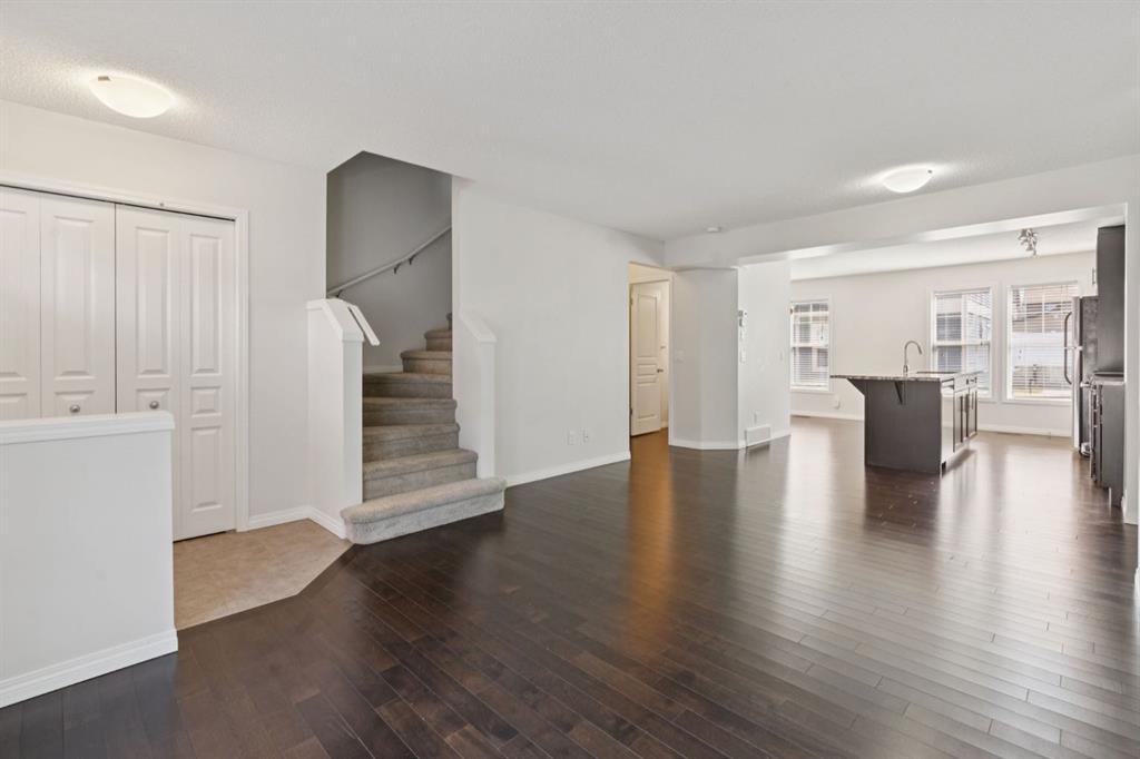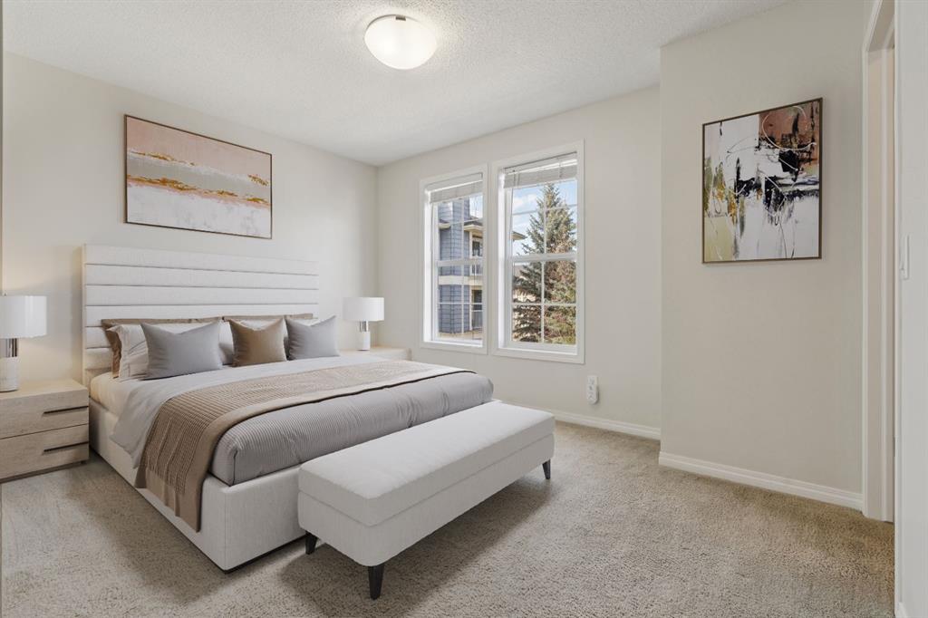 Modern, beautifully designed townhome featuring a sought-after dual primary layout and a private yard backing onto a peaceful treed green space. Ideally located within walking distance to the lake and schools, with every amenity nearby in Auburn Bay and neighbouring Cranston, Seton, and Mahogany. Enter through your double detached garage or the fenced and gated front yard, perfect for pets. The main floor is filled with natural light and finished in a neutral palette that highlights the rich hardwood flooring. The open-concept layout creates a seamless flow between the inviting living room, spacious dining area, and well-appointed kitchen, making it ideal for both everyday living and entertaining. The kitchen is as functional as it is stylish, featuring quartz countertops, full-height cabinetry, a pantry, stainless steel appliances, and a bayed breakfast nook for casual meals. A tucked-away powder room and upper-level laundry add to the thoughtful design. Upstairs, two generously sized primary bedrooms each offer their own walk-in closet and private 4-piece ensuite, providing comfort and privacy with no need to share. The recently finished basement adds valuable additional living space, perfect for a home office, gym, or flex area to suit your needs. Step outside to enjoy morning coffee or summer evenings in your private fenced backyard, complete with a large patio and serene views of mature trees and green space. This prime location within the complex offers close proximity to visitor parking on either side, mailboxes, and the main entrance for added convenience. Auburn Bay is a vibrant, family-friendly lake community offering year-round activities including swimming, skating, tennis courts, a gym, and Auburn House. Residents also enjoy extensive pathways, parks, green spaces, and an off-leash dog park, along with easy access to shopping, restaurants, and everyday amenities. Just minutes away are Fish Creek Park, the Seton YMCA, and South Health Campus. An exceptional opportunity to enjoy lake living in one of Calgary’s most desirable communities.