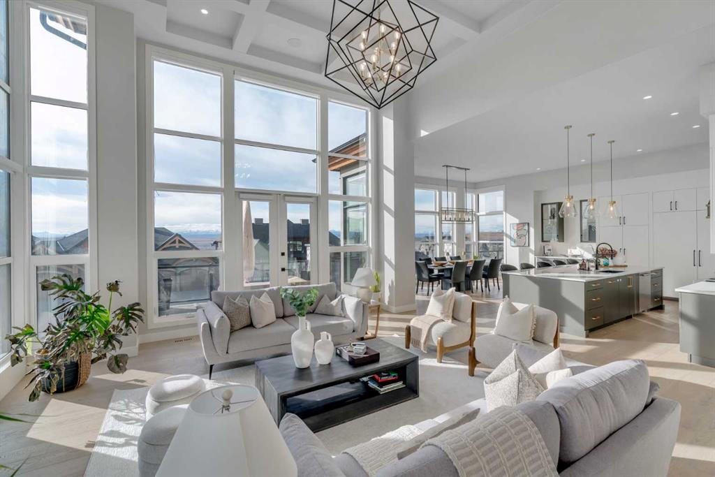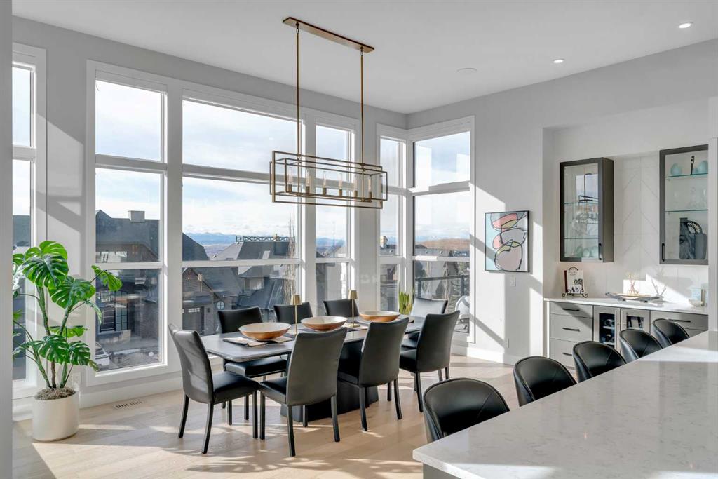 Welcome to 100 Elkton Close SW, a spectacular luxury walk-out bungalow with loft by Winchester Builders, ideally situated on one of Springbank Hill’s most exclusive crescents. Offering 6,160 total square feet of impeccably finished living space plus a heated quadruple garage, this home delivers exceptional craftsmanship, thoughtful design, and everyday livability at the highest level. From the moment you enter, soaring ceilings, abundant natural light, and designer finishes create an immediate sense of understated elegance. The heart of the home is a stunning gourmet kitchen, anchored by an 11.5’ quartz sit-up island with added storage, top-of-the-line Thermador appliances, custom Hammersmith hood fan, beverage centre, and soft-close custom cabinetry with maple-lined, dovetail drawers. A fully equipped butler’s pantry adds a second sink, dishwasher, beverage fridge, Bosch speed oven, and generous storage. The kitchen flows seamlessly into the dining and great room, highlighted by a dramatic fireplace and coffered ceiling. A versatile flex room provides the option for a home office or formal dining space. The main-floor primary retreat is a true sanctuary, featuring a private deck, spa-inspired ensuite with heated floors, soaker tub, glassed shower, double vanity, private water closet, and a show-stopping walk-in closet with custom built-ins and dual laundry chutes. A second main-floor bedroom with its own heated-floor ensuite, a beautiful powder room, a dream laundry room, and a large mudroom complete this level. The upper loft offers a quiet retreat with a dual tech desk, TV lounge, private 4-piece bath, linen storage, and a third bedroom. The expansive walk-out lower level is designed for entertaining, featuring a custom wet bar with large island, third dishwasher, and illuminated glass wine storage for 144 bottles. A second fireplace anchors the lounge area, alongside space for a full-size pool table, seating areas, a glass-enclosed home gym, fourth bedroom, full bathroom with heated floors, and a flex space easily converted to a fifth bedroom. A full-width deck with privacy panels and future hot tub wiring extends outdoor living. Additional highlights include flat ceilings, solid core doors, custom lighting, CAT5 wiring, Ecobee thermostats, air conditioning, built-in speakers, Ring security, and a 900+ sq. ft. heated quadruple garage with 10’ doors, epoxy flooring, EV charging, hot/cold taps, floor drains, and lift-ready ceilings. The professionally landscaped yard features xeriscaping and irrigation. Ideally located near top public and private schools, parks, pathways, Westhills, Aspen Landing, Westside Rec Centre, and major roadways, this is an exceptional Springbank Hill residence where luxury meets effortless living.