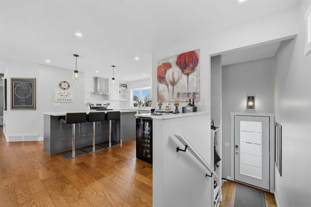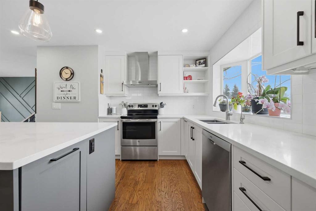 Nestled in the sought-after golf course community of Maple Ridge, this home offers a balance of suburban quiet and convenient city access. Families will appreciate being within walking distance to Maple Ridge Elementary School and R. T. Alderman Junior High School. Commuters benefit from quick connections to Deerfoot Trail and Stoney Trail, making travel to downtown or around the city straightforward. Welcome to 1015 Maplecroft Road, a thoughtfully updated 4-bedroom, 3-bath bi-level offering a great balance of style, comfort, and functionality. The welcoming front entrance features a wood-enhanced feature wall, setting the tone for the home’s modern updates. The main floor has been reconfigured into a bright open-concept layout suited to both everyday living and entertaining. At the centre of the home is the updated kitchen with quartz countertops, a large island with a built-in microwave, and abundant cabinetry with practical storage solutions, including a spice rack pullout and lazy Susan pantry. A dedicated beverage centre adds convenience, and a reverse osmosis system under the sink provides filtered drinking water. The redesigned back staircase creates an easy transition to outdoor living, leading to a covered deck ideal for relaxing or hosting friends. The main level has two bedrooms, including a primary suite with a California Closets walk-in and an ensuite featuring a large shower. The second bedroom also includes a custom closet and works well as a guest room or home office. A full 4-piece bathroom completes this level. The fully finished lower level expands the living space with two large bedrooms, a third bathroom with a custom shower, and a spacious family room centred around a second gas fireplace. Outside, the landscaped yard with mature trees offers space to gather around the fire pit, along with a large shed and double detached garage. Established perennial gardens add colour throughout the spring and summer. Recent upgrades include engineered hardwood flooring on the main floor, stairs and landings, updated lighting, a high-efficiency furnace with humidifier, a high-efficiency hot water tank, an upgraded electrical panel and wiring, and renovated bathrooms. A well-maintained, thoughtfully updated home ready for its next owners.