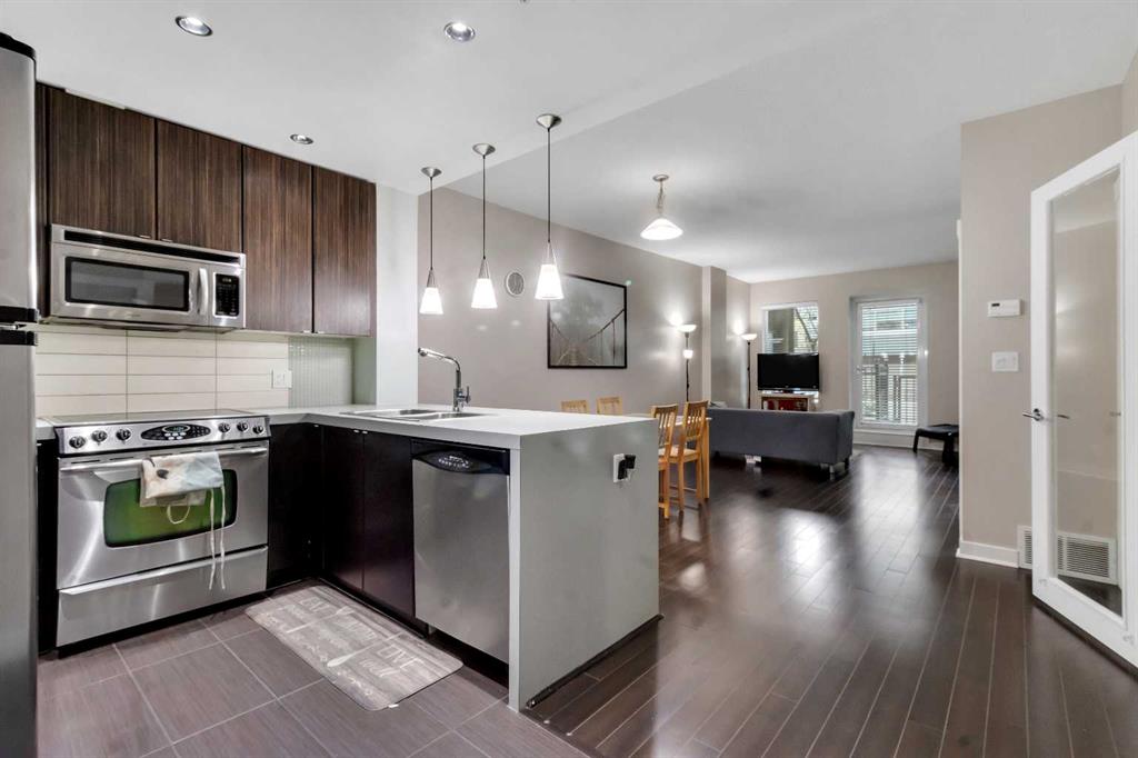 BEST PRICE for CONDO 2 BEDS 1 BATH 767 sf | TITLED UNDERGROUND PARKING | SEPARATE ENTRANCE from STREET | THIS IS A LIVE and WORK UNIT | . Stylish Urban Living with Street-Level Access in the Heart of Beltline. Experience the best of inner-city living in this rare and versatile 2 bedrooms, 1-bathroom ground-floor condo located in the highly sought-after Xenex on 12th building. Step inside to an open-concept floor plan filled with natural light from floor-to-ceiling windows. The modern kitchen is equipped with stainless steel appliances and ample cabinetry — ideal for cooking and entertaining. The unit comes with a spacious primary bedroom features a 4-piece bathroom, plus a good size interior bedroom. Enjoy the convenience of in-suite laundry, underground titled parking, and a separate storage locker. With a Walk Score of 99, you're just steps from cafes, restaurants, shops, Safeway, parks, transit, and everything downtown Calgary has to offer. Whether you're a professional, investor, or entrepreneur, this unit delivers unmatched flexibility and style in one of the city's most vibrant communities. Strong Reserved Funds and Very Well-Managed Building. Don't miss the opportunity to own this exceptional property in one of the best community in Calgary downtown. This unit has a separate entrance from street with its own balcony providing extra privacy and convenience. Listing Price under City Calgary assessment, call your favorite agent and book the showing !