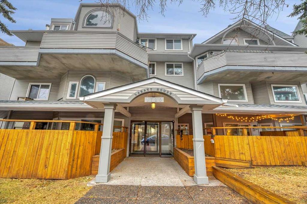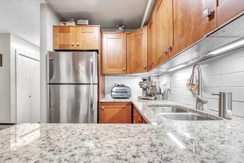 This is a standout spacious and upgraded unit with must-have features. Starting with the ideal CENTRAL LOCATION on a quiet street in Lower Mount Royal with easy access to restaurants, shops, downtown, and main roads. Everything you need is close by, including Mount Royal School, trendy 17th Avenue district, major transit routes, the Bow River Valley and more. This suite has modern finishes and functional layout with big separate living spaces allowing for many options to fit your lifestyle. The welcoming entrance gives access to a closet, half bathroom, upper level, and big dining space with a pantry to the side. The functional kitchen is complete with stainless-steel appliances, stone counter tops, soft close cabinets, and serving counter to a flex space. The grand living room features a two-story ceiling, fireplace, multiple west windows, and walkout to the patio. On the upper level the bonus space loft gives more options for living, work at home, gym, or a studio. The two bedrooms are big enough for a king bed and have great closet space. The main bathroom includes stylish finishes and shelving. Completing this full package is the laundry space with a top-end combination washer/dryer (non-venting). The 200+ sq ft private patio with evening sun is roofed, enclosed with fencing maintained by the condo, and finished with artificial turf. All spaces are bright, open, sunny, and easy keep. Most recent upgrades include the high-tech efficiency wash/dryer (no venting needed), microwave hood fan, and various light fixtures. The fireplace is cleaned and inspected annually. Parking spot is covered, closest to back entrance, and easy access drive-through. This is a quiet and solid concrete frame building. It is well-maintained and funded. Common rooms include bike storage, recycling, and a laundry room. This MOVE-IN READY home truly is a must-see.