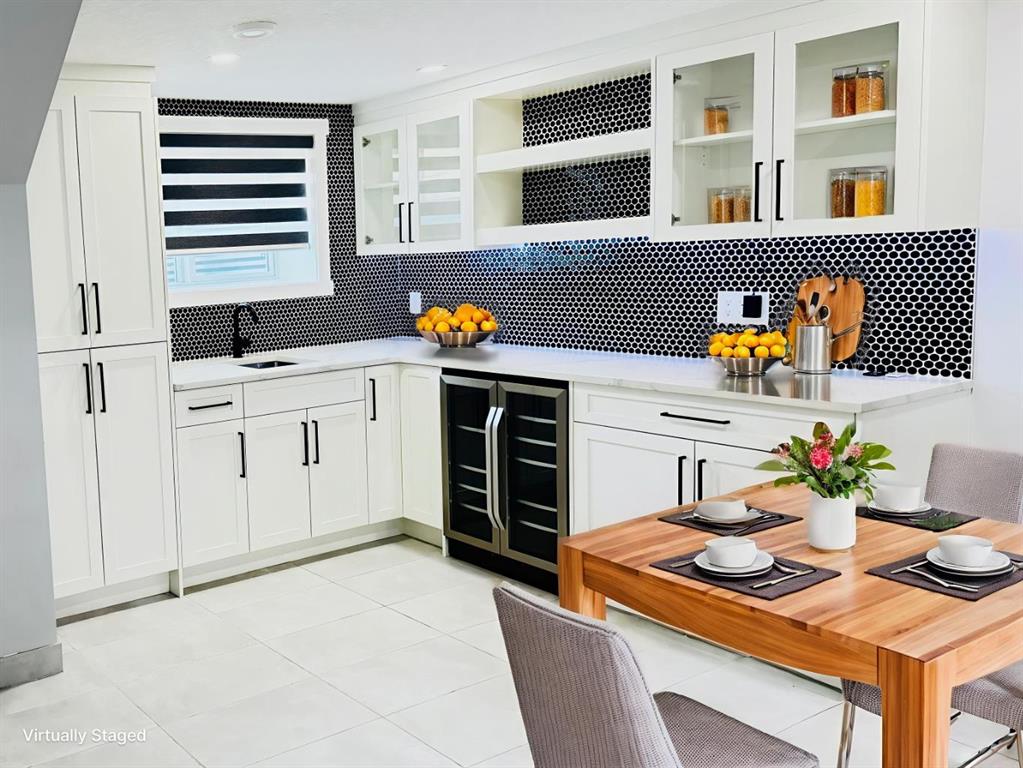 This extensively renovated, 4 bedroom, 3 bathroom home in the highly desirable community of Southwood offers the modern feel and function of a brand-new build. The 2021 transformation included major upgrades like new insulation, roof, drywall, a high-efficiency furnace and water tank, and large, bright windows installed in both the home and garage, ensuring the space is always flooded with natural light. Designer Interiors and Premium Finishes The main level showcases stunning engineered hardwood flooring throughout the principal living areas. The living room is expansive and bright, anchored by a massive 10-foot window, a stylish in-wall gas fireplace with chic brick surround, and a ceiling-mounted smart TV. The gourmet kitchen is a true chef’s delight, featuring sleek, shaker-painted cabinets. It is equipped with premium Whirlpool stainless black series appliances, including a built-in oven and microwave, a gas cooktop, and a 36-inch French door refrigerator. A functional island with its own LED lighting completes this beautiful, practical space. The primary suite is a private retreat, distinguished by a unique feature wall and an impressive walk-through closet with custom shelving and a dressing table. The luxurious 4-piece master ensuite will spoil you with black tiling, a semi-recessed double vanity, a decadent rain shower with six added jets and black penny round accents over black granite. For year-round comfort, the ensuite also includes heated floors! A separate main-floor laundry closet with a washer/dryer adds convenience. Fully Developed Lower Level The basement (easily suited—subject to municipal approval) is a fantastic extension of the living space, featuring a convenient kitchenette and a huge recreation area perfect for entertaining, games, or simply relaxing. The lower level also includes two generously sized bedrooms and a well-appointed 4-piece bathroom. Unbeatable Location and Convenience Location is paramount, and this property truly delivers! Situated on Elbow Drive, you benefit from the ultimate convenience of a large plaza directly across the street, featuring a grocery store, doctor’s office, dentist, pet store, fast food, gas stations, and more. Commuting is effortless, as you are just minutes to downtown, the Ring Road, and have easy access to all amenities in Southwest Calgary. The home is also close to both elementary and middle schools, ideal for families. The property boasts a huge fully fenced backyard, a single-car, insulated, drywalled, and painted garage, and a triple parking pad in the back. Don't miss out on this incredible value! Call or message to view this great property today. Please note that the photos used have been staged virtually with furniture and accessories. Public Open House Scheduled for Wednesday November 19th 3:30 - 6:30PM.