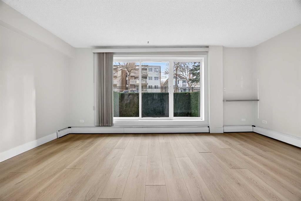 Bright and spacious south-facing corner unit located on a quiet, tree-lined street in the heart of Sunalta. This updated two-bedroom condo features quartz countertops, high-gloss cabinetry, new appliances, matte black fixtures and a stylish honeycomb backsplash in the kitchen. Luxury vinyl plank flooring (updated in 2023) runs through the living room, kitchen, and hallway, adding a modern touch. The primary bedroom offers ample closet space, while the second bedroom is ideal for a home office, guest room, or gym. Enjoy the convenience of in-suite laundry, plus additional building laundry on the same floor. Situated in a quiet concrete building with a private parking stall and in-suite storage. Just steps from the Calgary Tennis Club, C-Train station, parks, boutique shops, and some of the best breweries and dining the city has to offer. Exceptional value in one of Calgary’s most walkable inner-city neighbourhoods!