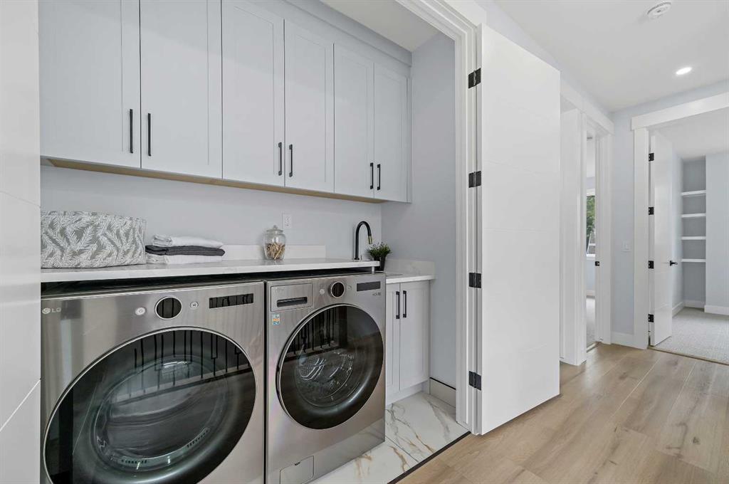 Welcome to 107 Hartford Road NW – a stunning brand-new executive home offering over 2,800 sq ft of beautifully designed living space in the heart of Highwood. Set on a quiet, tree-lined street, this two-storey modern masterpiece boasts exceptional curb appeal with stone, Hardie siding, and Smartboard accents. Step inside to discover a very bright and open floorplan with extensive upgrades throughout—a home that truly must be seen to fully appreciate the quality craftsmanship and detailed finishes that went into this custom build. The main level features 10’ ceilings, a dedicated study/work desk, a spacious dining area, and a dream kitchen with a quartz waterfall island, KitchenAid built-in appliances, a 36” gas cooktop, and designer finishes throughout. The cozy living area includes a dramatic tiled fireplace wall and opens via a sliding patio door to your fully landscaped yard—perfect for summer entertaining. The upper level showcases a gorgeous primary retreat with a sun-tunnel-lit walk-in closet, spa-inspired ensuite with freestanding tub, floating double vanity, and custom tiled shower. Two additional bedrooms each come with their own walk-in closets, along with a 3-piece bathroom and a full laundry room with sink. Downstairs, the fully developed basement features 9’ ceilings, large windows, a spacious recreation area, wet bar, a fourth bedroom with walk-in closet, and a 4-piece bathroom—perfect for guests or multi-generational living. Additional highlights include rough-ins for central A/C, security system, built-in speakers, central vac, basement hydronic in-floor heating, and a projector setup. The insulated double garage offers rear lane access. Ideally located minutes from McKnight Blvd, Deerfoot Trail, downtown, schools, parks, and amenities. This home includes a 1-year new home warranty plus a 10-year Progressive Warranty for ultimate peace of mind.