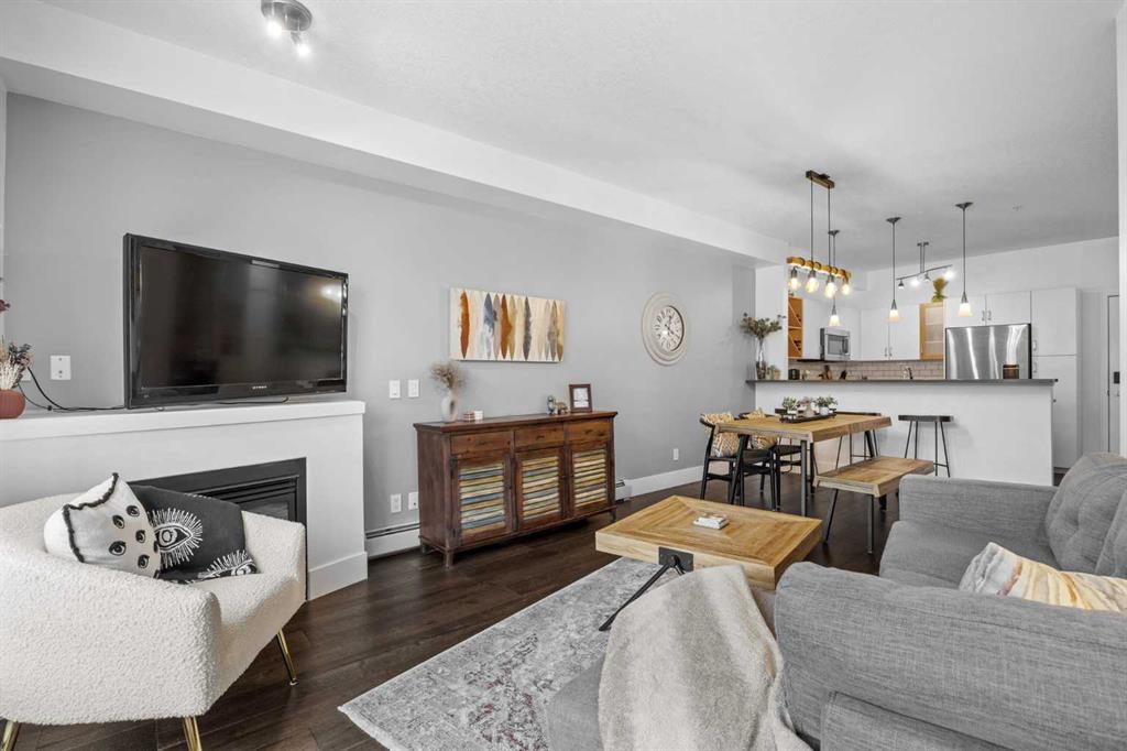 Welcome to KABO — ALTADORE’S DESIRED CONDO located in the HEART of MARDA LOOP!!! This HIGHLY DESIRED 3-STOREY BUILDING is just 5 MINUTES TO DOWNTOWN and steps to EVERYTHING you love about inner-city living! This MOVE-IN READY 1 BEDROOM, 1 BATHROOM CORNER UNIT offers a BRIGHT + OPEN CONCEPT LAYOUT with 9’ CEILINGS and NEW HARDWOOD FLOORS throughout the entire unit — a rare upgrade you’ll LOVE!! The UPDATED KITCHEN is designed to impress with QUARTZ COUNTERTOPS, a raised breakfast bar, HIGH-END STAINLESS STEEL APPLIANCES, and a built in wine rack — perfect for entertaining or unwinding after a long day. The SPACIOUS living + dining area features a COZY NATURAL GAS FIREPLACE, creating the perfect atmosphere year-round. The primary bedroom flows seamlessly into a WALK-THRU CLOSET leading to your 4-PIECE bathroom, conveniently located next to IN-SUITE LAUNDRY for everyday ease. And here’s where this one REALLY stands out… You’ll love the HEATED UNDERGROUND PARKING with an OVERSIZED STALL that can FIT A TRUCK, located right next to your LARGE STORAGE UNIT — a RARE and highly sought-after feature! Additional perks include BIKE STORAGE and a BRAND NEW A/C UNIT to keep you comfortable all summer long. Step outside and you’re instantly connected to one of Calgary’s BEST communities. Located in MARDA LOOP, you’re within WALKING DISTANCE to 17TH AVE, PARKS, TENNIS COURTS, POOLS, CAFÉS, RESTAURANTS, BARS, SHOPPING and MORE!!! Whether you’re a FIRST-TIME BUYER, STUDENT, YOUNG PROFESSIONAL, or INVESTOR, this home offers the PERFECT BLEND of LIFESTYLE, LOCATION, and VALUE. CONDOS WITH THIS MANY UPGRADES + THIS LOCATION DON’T COME UP OFTEN — BOOK YOUR PRIVATE SHOWING TODAY!!!