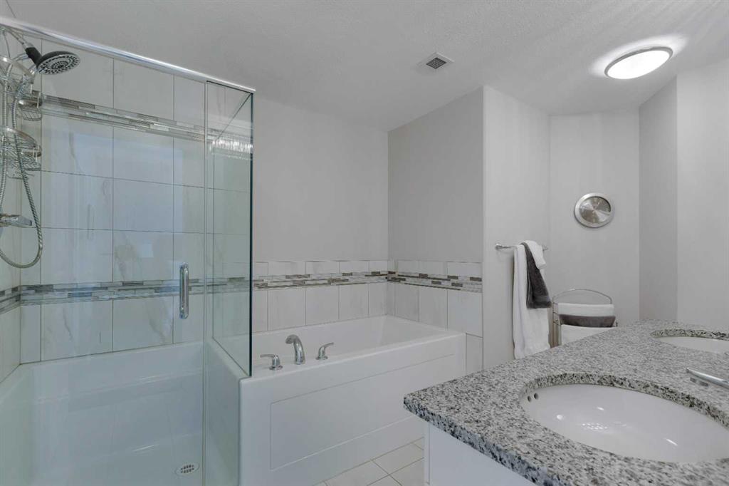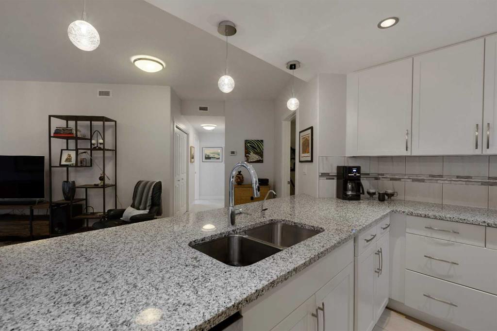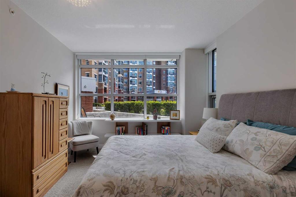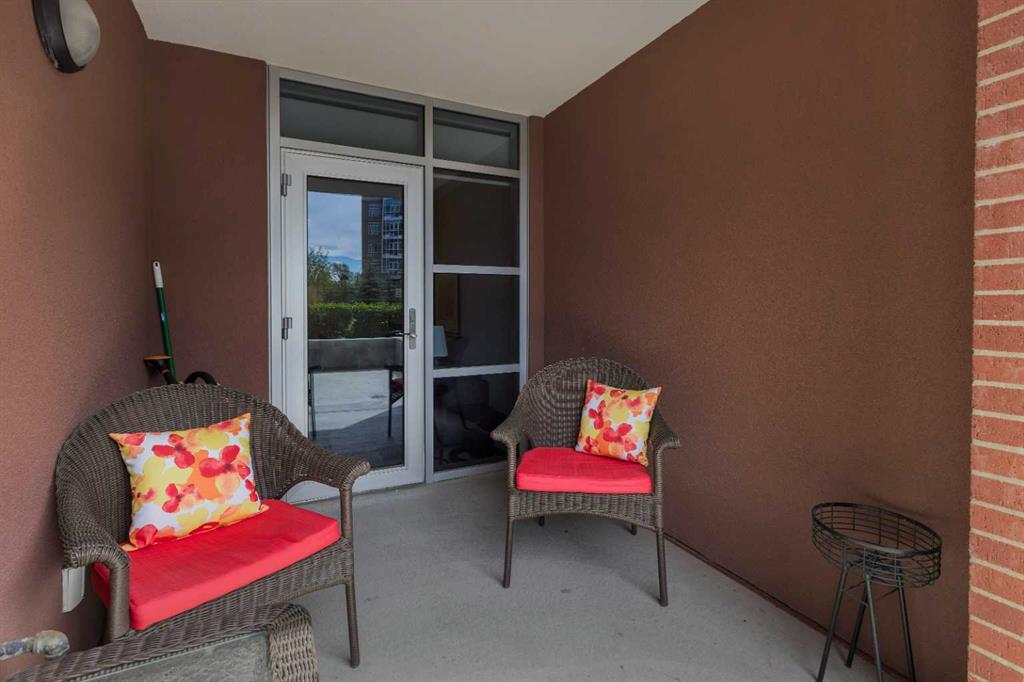 Welcome to stylish condo living in the highly sought-after community of Varsity Estates. This beautifully upgraded 2-bedroom, 2-bathroom main floor unit offers the perfect combination of style, comfort, and unbeatable convenience. Originally a former show suite, this home is loaded with upgrades including granite countertops, upgraded maple cabinetry, and beautiful flooring that create a modern feel throughout. The kitchen flows seamlessly into the bright living area, creating an inviting space for both everyday living and entertaining. Gorgeous laminate flooring enhances the main living area while the well-planned layout offers excellent separation from bedrooms for added privacy. The primary bedroom is a true retreat, featuring large south-facing windows that fill the room with natural light, a walk-in closet and a 5-piece bathroom, featuring dual sinks, a soaker tub and a separate shower. A second bedroom and full bathroom provide flexibility for guests, family or a home office. Step outside to enjoy the large patio space, offering covered and uncovered areas, perfect for morning coffee and summer evenings. Additional highlights include in-suite laundry, pantry, titled underground parking and a separate storage locker. Residents of the Groves of Varsity enjoy outstanding year-round amenities including a fully equipped fitness centre, steam rooms, meeting and party spaces and a spectacular roof-top terrace with mountain views. Located steps from coffee shops, parks, medical offices and shopping, this location truly offers everything at your doorstep.