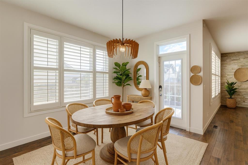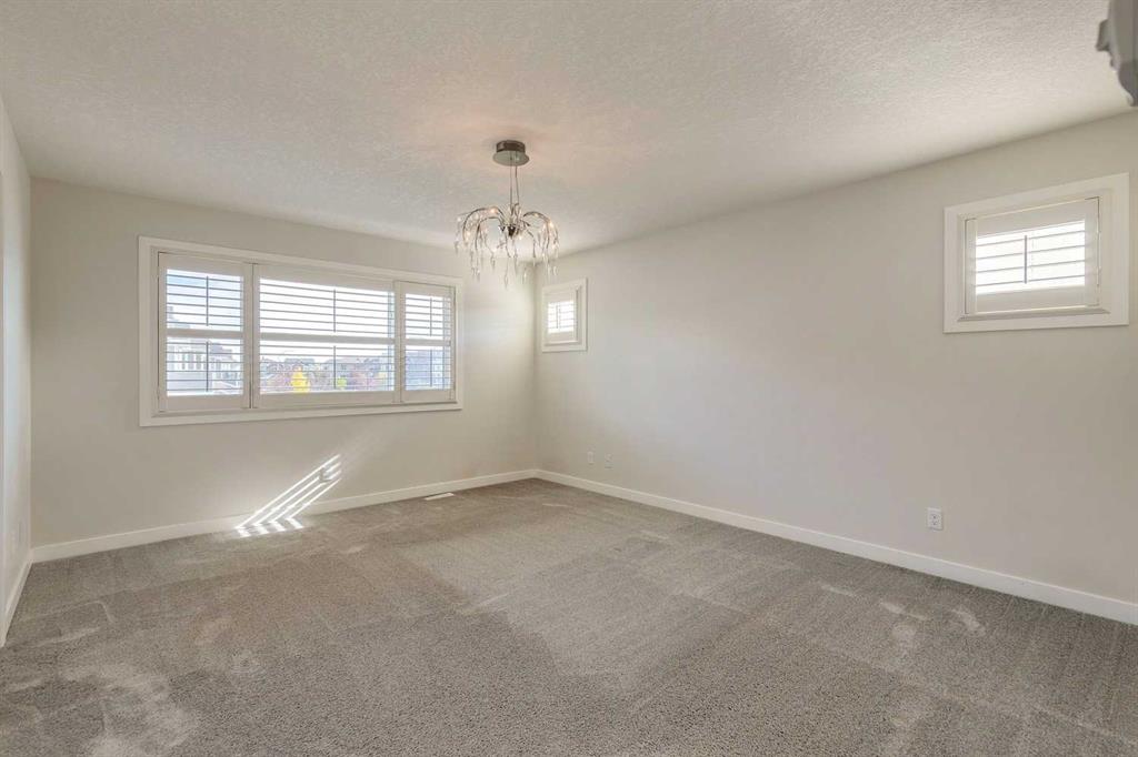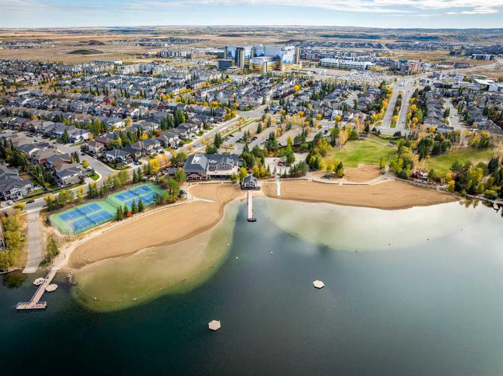 Tucked away on a quiet street with a short walk to the lake gates, this stunning corner-lot home is sure to impress. Offering over 3,000 sq. ft. of beautifully designed living space, this upstairs 4-bedroom, 2.5-bathroom residence blends comfort, style, and functionality. Feel the charm as you step inside to your sun beaming home & notice the custom window shutters and high ceilings. Setting a warm and elegant tone that carries through the home. The secured garage opens into a custom built-in bench foyer. The open-concept main level showcases a versatile den or formal dining area, a chef-inspired kitchen with newer premium appliances, granite countertops, and an oversized island. This space flows effortlessly into the family room, anchored by a sophisticated stone feature wall and fireplace, creating a perfect ambiance for intimate gatherings or entertaining. Upstairs, the bright and inviting primary suite includes a luxurious 5-piece ensuite with double vanities, dual shower heads and a dreamy walk-in closet finished with custom shelving. The upper level also offers a large recreation room—perfect for family gatherings—a convenient upper laundry room with additional storage space, a full bathroom with quartz countertops, plus 3 additional bedrooms! This home is equipped with two furnaces, two air conditioners, air purification system for year-round comfort. Retreat & unwind outside in your private yard featuring gemstone lighting, a stamped concrete patio, underground sprinkler system and two gas hookups perfect for entertaining. The basement is partially finished with a quiet office room and the rest awaiting your final touches. Nestled in the highly desirable Auburn Bay community, you’ll enjoy proximity to schools, scenic bike paths, South Health Campus Hospital, YMCA, shopping, lake amenities, and easy access to Deerfoot Trail. Come experience the perfect blend of comfort and lifestyle—your dream home awaits.