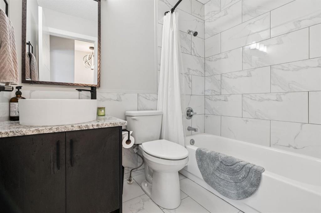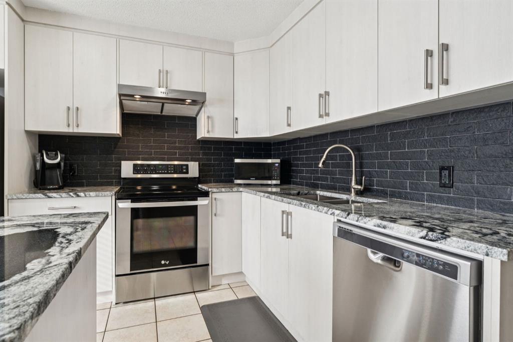 Welcome to Bedford Manor, where it’s rare for townhomes to become available. Even more rare for one to be this tastefully renovated! You can see the designer touches in this professionally renovated home. This is no DIY job! Unit 11 is fully move-in ready, all you have to do is unpack! When you walk in, you will immediately take note of the tasteful renovations which include updates to all the doors, trim, paint, and light fixtures. The open design main floor is perfect for entertaining, with its refinished hardwood floors that flow from the bay window in the living room through to the spacious dining room. Don’t forget about the beautifully designed powder room with custom finishes and basin sink. The fully renovated custom kitchen is sure to be the show stopper on this floor! Featuring exquisite black and white granite, stainless appliances, designer Italian stone backsplash, and a massive island that offers storage, counter space, and room for bar stools. A massive double door Pantry adds function and convenience to this truly gourmet kitchen. Another Bay window looks out from the kitchen to the fully fenced back yard, complete with a composite deck. Oh, and you don’t even have to mow the lawn, it's included in your low condo fee of only $320.77. The upper floor has 3 Bedrooms with two fully renovated bathrooms. The extremely large primary suite houses a huge closet that spans the entire length of the wall, with custom built in shelves and racks. One of the bedrooms is currently being used as a massage studio and features designer built in cabinetry! The lower level offers an additional 549 SF of space that is currently being used as a home gym and laundry room. There are endless possibilities to develop it into additional living space, whether you are wanting another bedroom and bathroom, large rec room, or even a home theatre! The community of Beddington Heights packs a lot of convenience in its location. The Beddington Town Square shopping area offers everything from restaurants, banks, fast food, a gym, pet store, and a Timmies! Don’t forget the staples like Safeway, Dollarama, London Drugs, and only 5 mins to the T&T Supermarket! There’s also a major transit hub located nearby. But most convenient of all is the proximity to Deerfoot, Downtown, and the Airport. Main vehicle arteries like 14th St, Beddington Trail, Centre St and 64 Ave, offer a plethora of ways to enter and exit the community, making commuting a breeze, especially in the winter! This property is an excellent choice for small families, working professionals, or first time home buyers as it offers everything you would get in a starter home, but packed into a manageable size. Add in the convenience of a low maintenance condo lifestyle with no sidewalks to shovel or leaves to rake, Bedford Gardens is your answer to getting into the housing market without having to settle. This move-in ready home offers tremendous value with its updated design finishes.