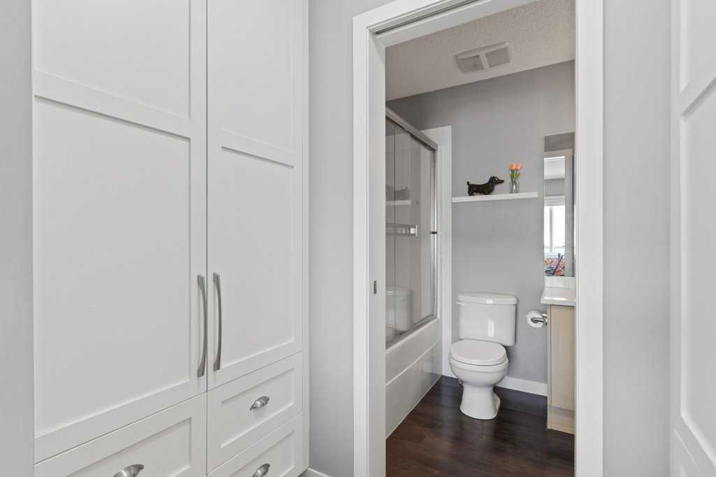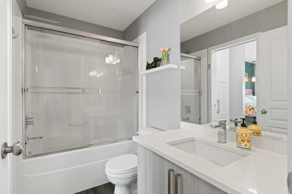This thoughtfully designed, pet friendly, end-unit townhome offers upgrades and features not always found in other units within the complex. You'll appreciate quartz countertops in the kitchen and 4-piece bathroom, a built-in central vacuum system with toe kicks at the kitchen island and upper bathroom, custom walk-through closet built-ins and a garage that can accommodate a small truck. Upon entry, you’re welcomed by a functional foyer with access to the single attached garage. Upstairs, the open-concept kitchen, dining, and living area is filled with natural light from the southwest-facing windows and features vinyl plank flooring throughout. The kitchen is finished with trendy cabinetry, stainless steel appliances and a spacious corner pantry. The dining area sits beside the balcony, making it perfect for both hosting and BBQing, while also benefiting from an extra window as one of the many perks of being an end unit. The bright and inviting living room is the perfect place to relax, especially for those who love houseplants and natural light. Both main floor windows are also enhanced with upgraded shutters. The second level is complete with a convenient stacked laundry area and a 2-piece bathroom. On the upper floor, you’ll find a spacious primary bedroom featuring a Juliette balcony, bedside pendant lighting, and a walk-through closet with high-end built-in cabinetry leading to the 4-piece bathroom. The bathroom includes a tub with a glass sliding panel, a rain-head style shower attachment, and an additional central vacuum toe kick at the vanity. The second bedroom is also generously sized and offers a large closet. This well-managed complex is known for its excellent neighbours and strong sense of community. Whether you’re looking for a place where your kids can enjoy the complex bike rides or somewhere peaceful to unwind, this home offers both. Residents can also enjoy the recently updated landscaping throughout the complex. Ideally situated close to every amenity you could need, including Costco, Walmart, parks, walking paths, and with easy access to major roadways throughout the city. Check out the 3D Virtual Tour and book your showing today!