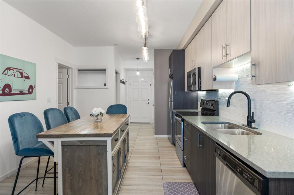 *OPEN HOUSE SAT APRIL 25 11:00-1:00PM* SUPERB VALUE for this immaculate 2 bedroom, 2 bathroom home! Move in ready and waiting for you! Conveniently located on the main floor with a bright and functional floor plan, boasting 9 FT CEILINGS and West facing windows. The kitchen features GRANITE COUNTERTOPS, stainless steel appliances, under cabinet lighting and a kitchen island. Spacious primary bedroom has a large walk-thru closet and 3-pc ensuite with walk-in shower. The second bedroom is perfectly suited for guests or a home office. Enjoy the sunshine from your sunny, WEST FACING PATIO with BBQ gas line. And don't forget about the UNDERGROUND TITLED PARKING and additional STORAGE LOCKER. Other bonuses include: NEWER WASHER & DRYER and reasonable condo fees that include heat and water. This is a PET FRIENDLY and well managed complex, right across the road from a kids play park. Sturdy brick and Hardie board construction. Easy access to schools, tons of shopping and Stoney Trail. You will love living in Legacy, surrounded by beautiful walking paths and a 300 acre environmental reserve. This property has everything you want, for the price you need! Check out our 3D TOUR and book a showing before it's too late.
