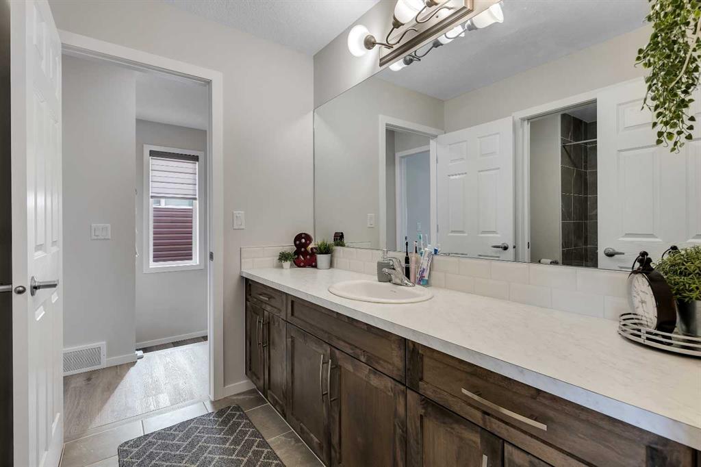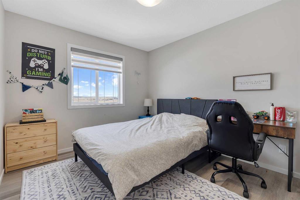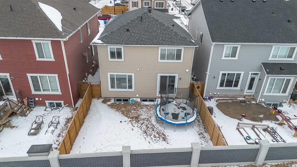 Beautifully upgraded two-storey in the desirable community of Citiscape! Ideally located close to schools, public transportation, and all amenities, this stunning home offers exceptional value and thoughtful design throughout. The main floor features a bright and open layout with 9-foot ceilings, large windows, and luxury vinyl plank flooring extending through both the main and upper levels. The spacious living room is highlighted by a central fireplace, creating a warm and inviting atmosphere. The kitchen is both stylish and functional, showcasing maple cabinetry, quartz countertops, a large centre island, stainless steel appliances, and a generous pantry. Just off the kitchen is the dining nook with patio doors leading to the fully fenced and landscaped backyard — perfect for entertaining or relaxing outdoors. Upstairs, you’ll find a well-designed floor plan complete with a bonus room, a spacious primary bedroom featuring a walk-in closet and full ensuite, plus two additional bedrooms, a full bathroom, and a convenient upper-level laundry room. The unfinished basement includes a separate side entrance, offering excellent potential for future development or a possible suite (subject to city approval). Additional features include central air conditioning, a double attached garage, a large driveway, great curb appeal, and a quiet street location. This home shows beautifully and is truly a must-see!